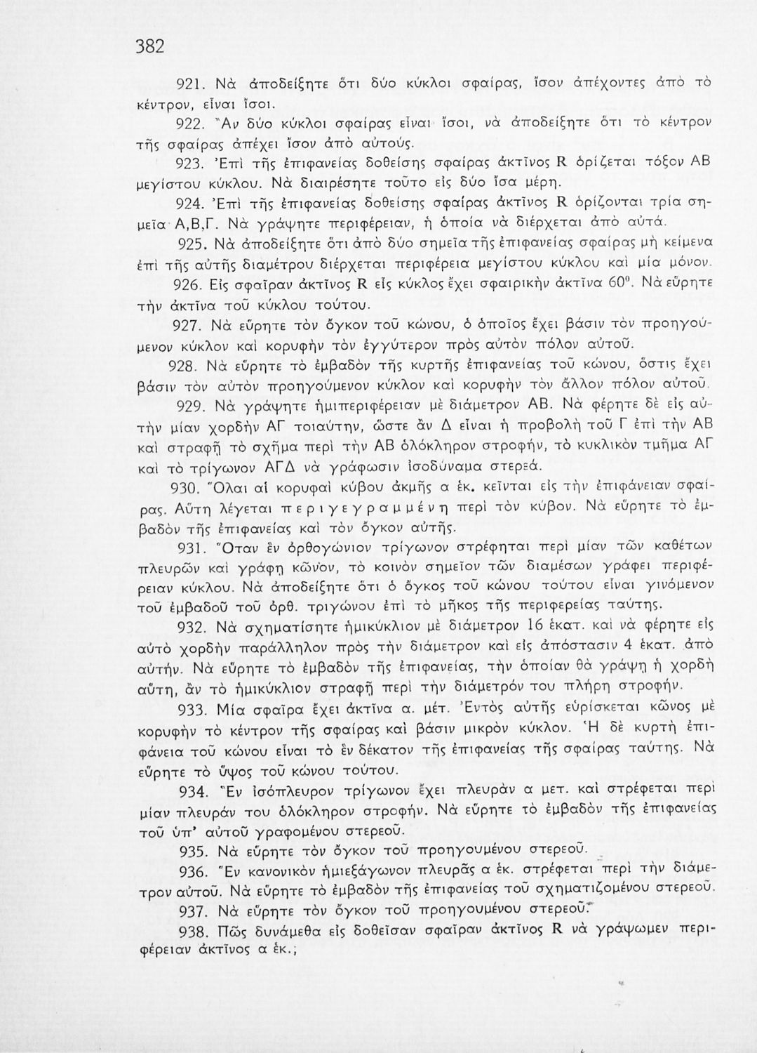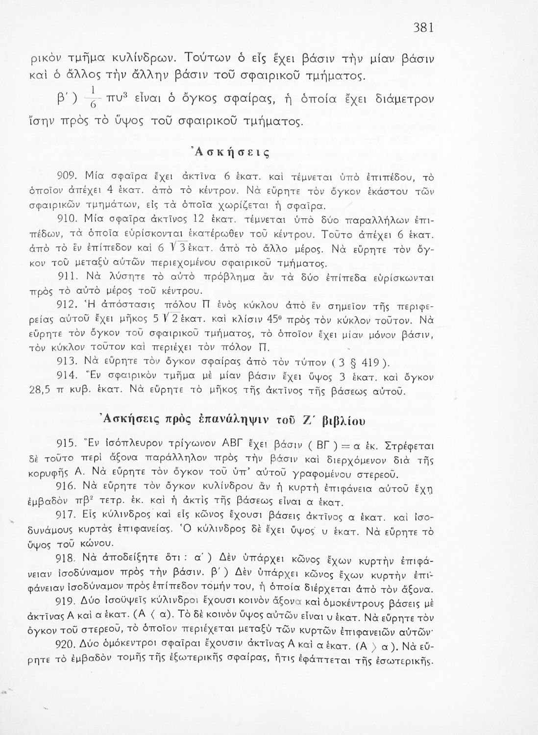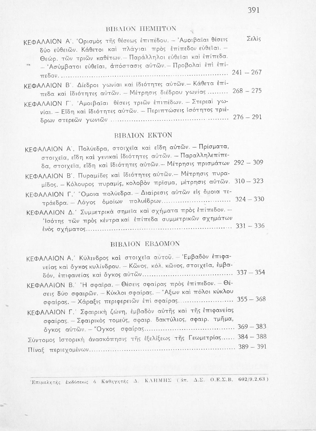 Σχολικό εγχειρίδιο Γεωμετρίας Γυμνασίου που περιλαμβάνει θεωρία και ασκήσεις και είναι χωρισμένο σε Επιπεδομετρία και Στερεομετρία.