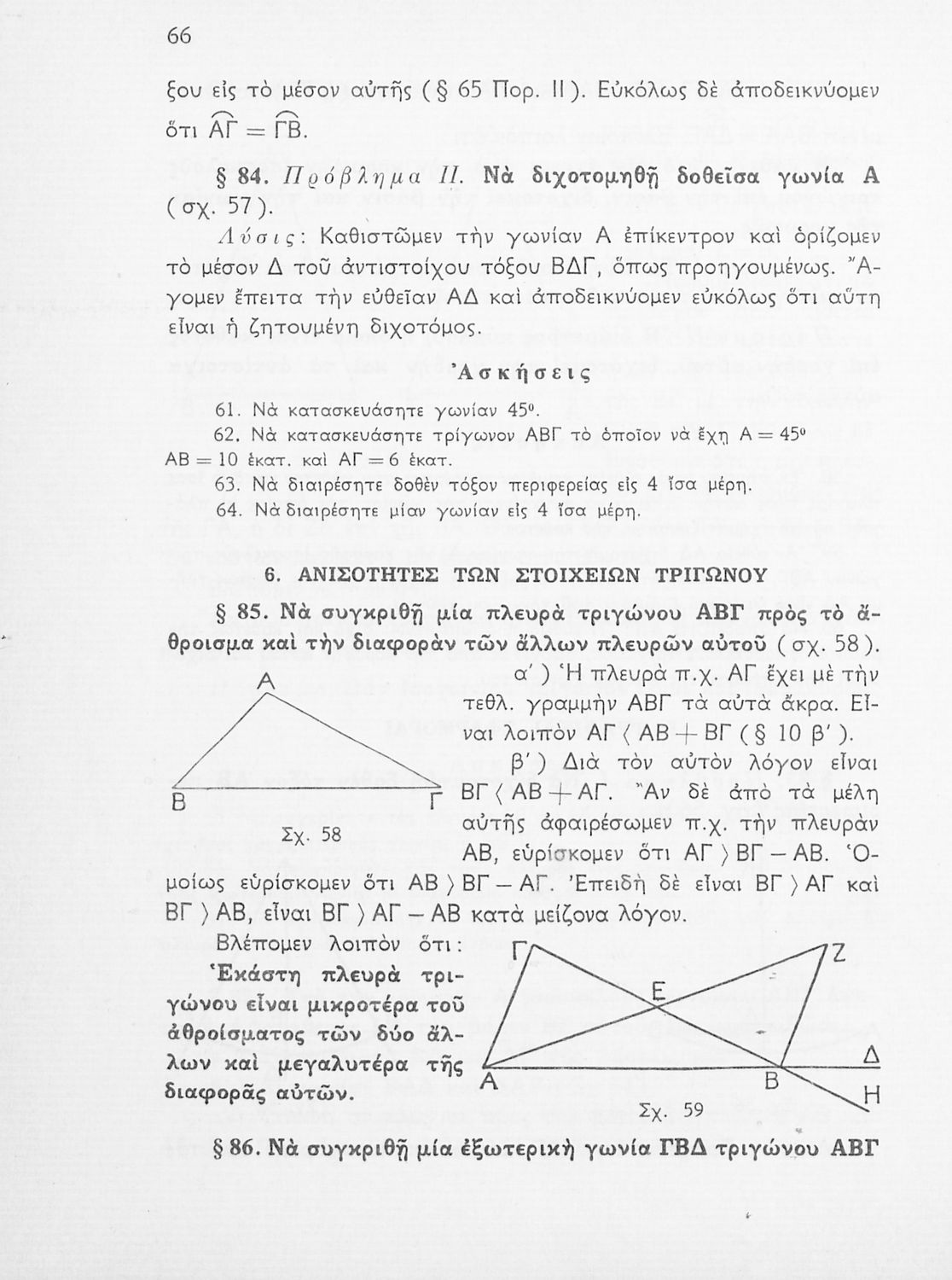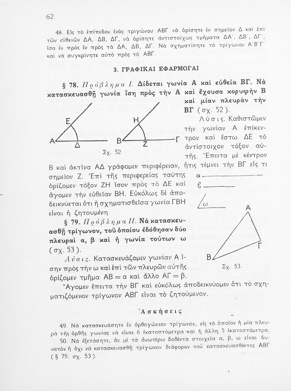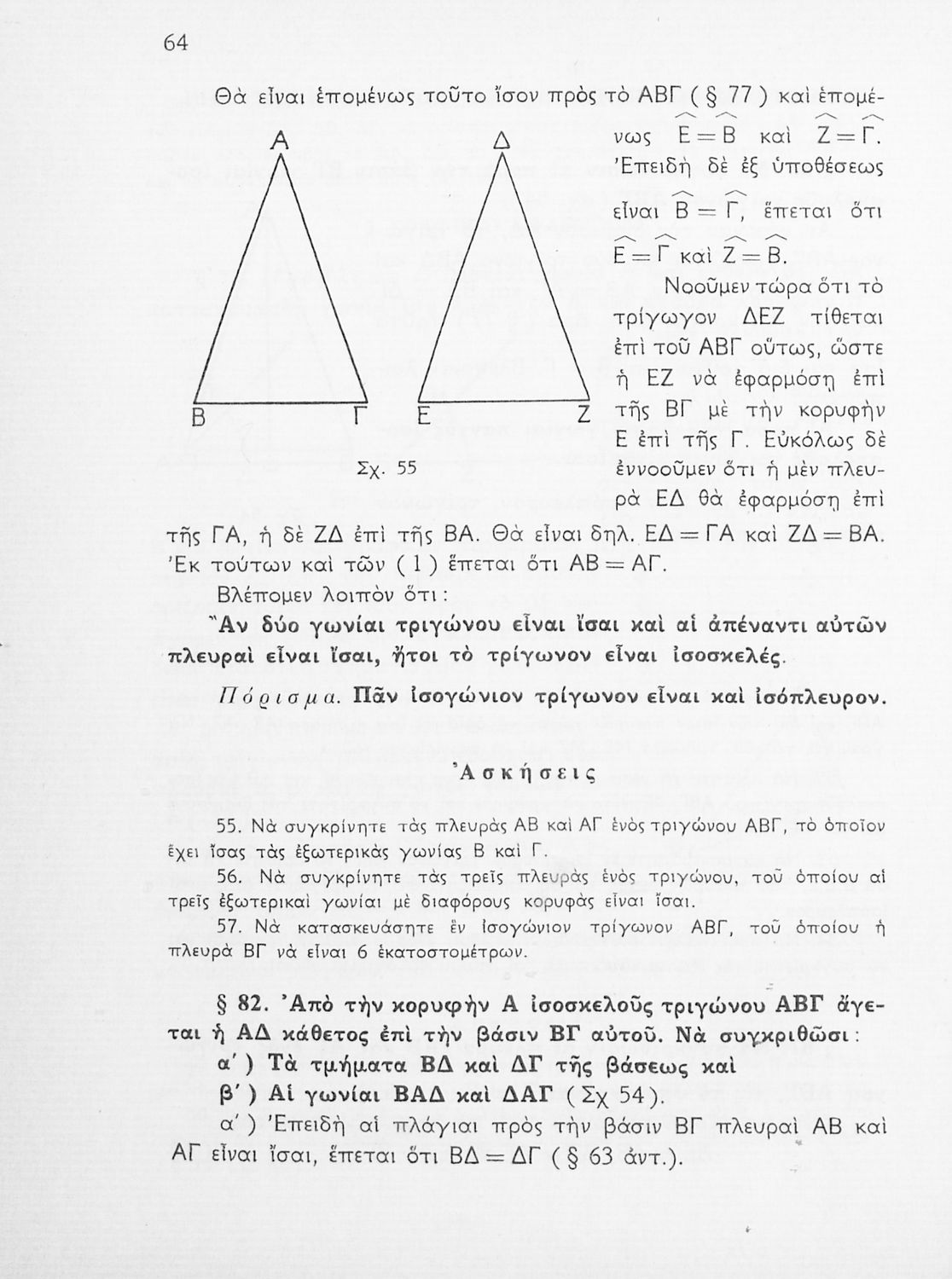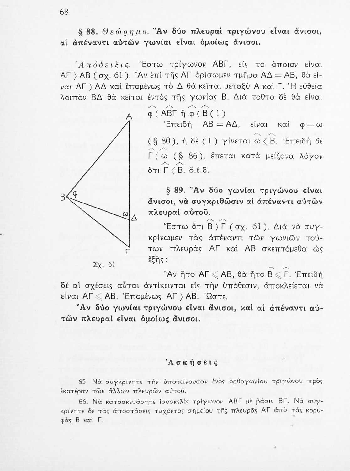 Σχολικό εγχειρίδιο Γεωμετρίας Γυμνασίου που είναι χωρισμένο σε θεωρήματα και ασκήσεις και εστιάζει στα βασικά θεωρήματα και ιδιότητες των γεωμετρικών σχημάτων. .