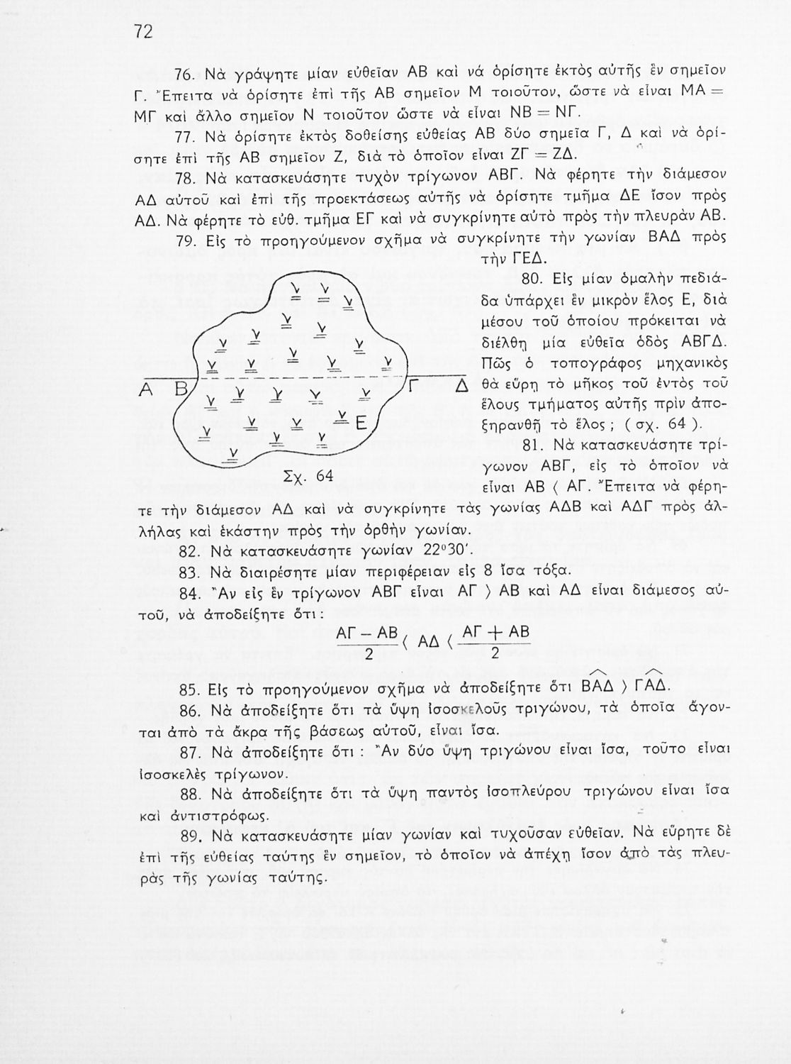 Σχολικό εγχειρίδιο Γεωμετρίας Γυμνασίου που περιλαμβάνει θεωρία και ασκήσεις και είναι χωρισμένο σε Επιπεδομετρία και Στερεομετρία.