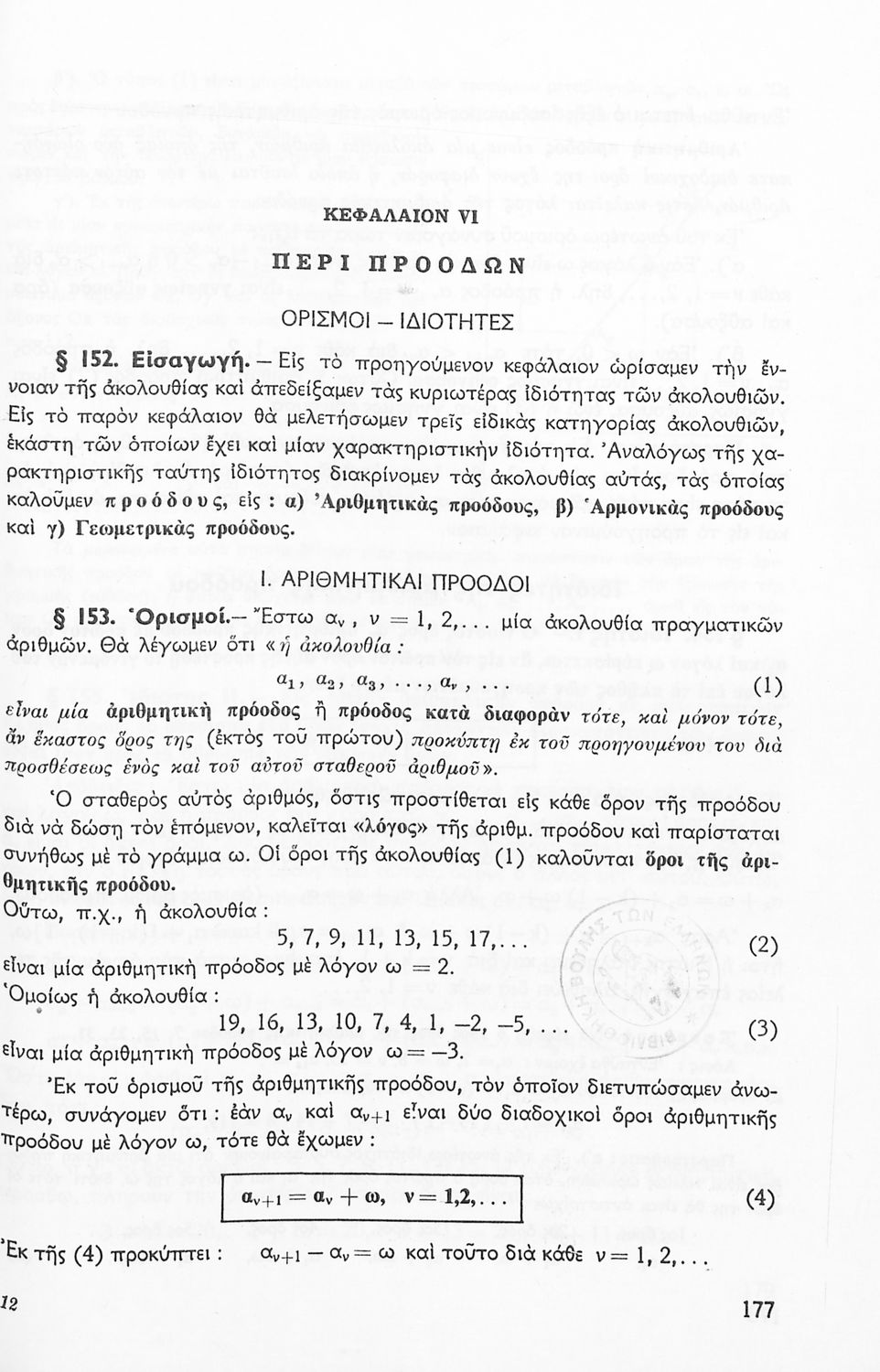 Σχολικό εγχειρίδιο Μαθηματικών Δ΄ και Ε΄ Γυμνασίου που είναι χωρισμένο σε θεωρήματα και ασκήσεις και εστιάζει στη Γεωμετρία. Φέρει το σύμβολο της δικτατορίας.
