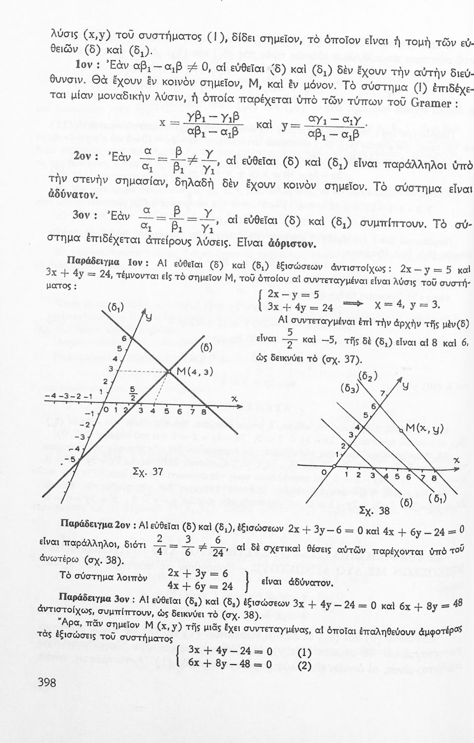 Σχολικό εγχειρίδιο Μαθηματικών Δ΄ και Ε΄ Γυμνασίου που είναι χωρισμένο σε θεωρήματα και ασκήσεις και εστιάζει στη Γεωμετρία. Φέρει το σύμβολο της δικτατορίας.