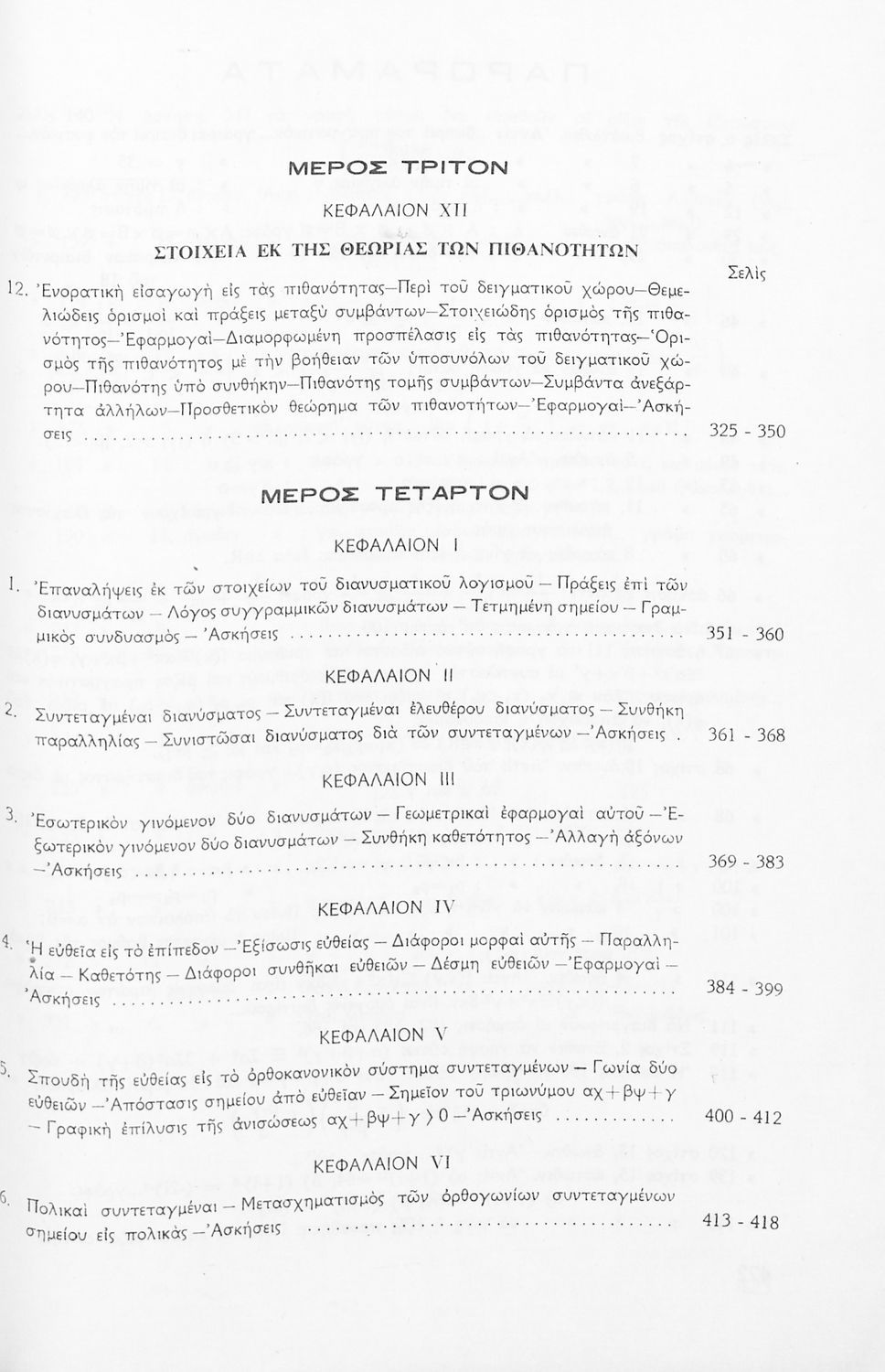Σχολικό εγχειρίδιο Μαθηματικών Δ΄ Γυμνασίου χωρισμένο σε ορισμούς, παραδείγματα και ασκήσεις. Περιέχει στοιχεία Περιγραφικής Στατιστικής και Τριγωνομετρίας. Φέρει το σύμβολο της δικτατορίας.