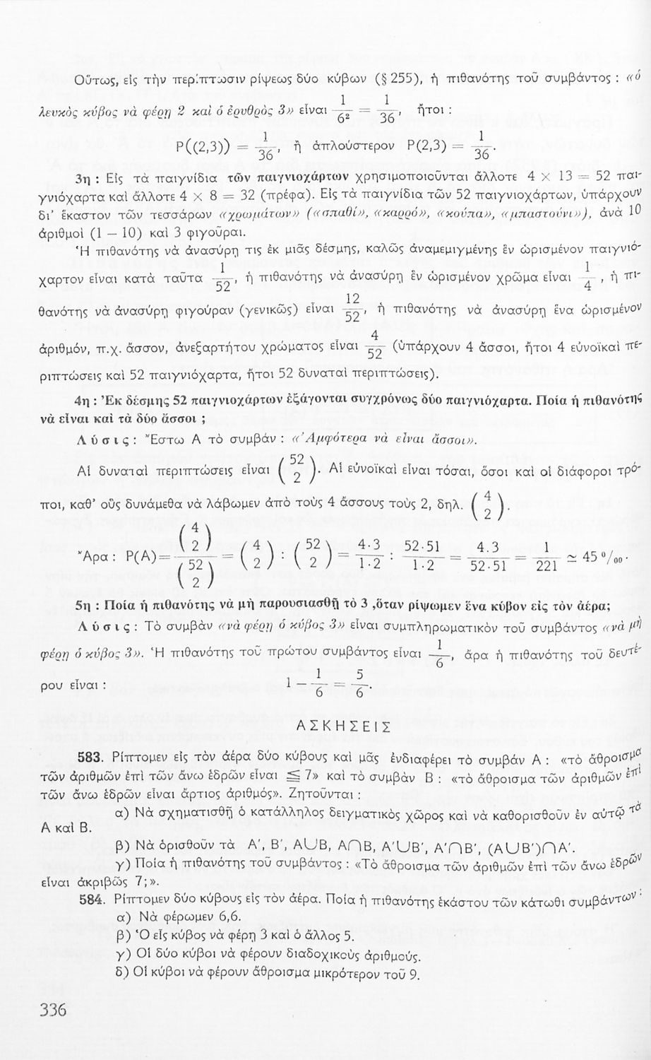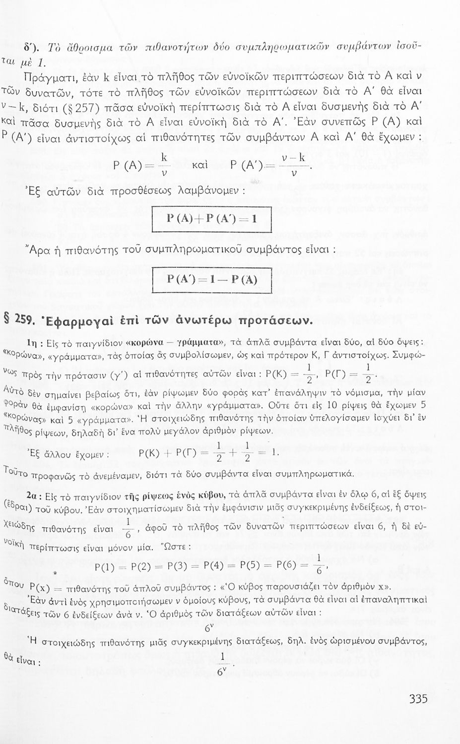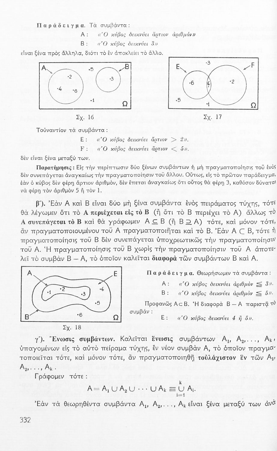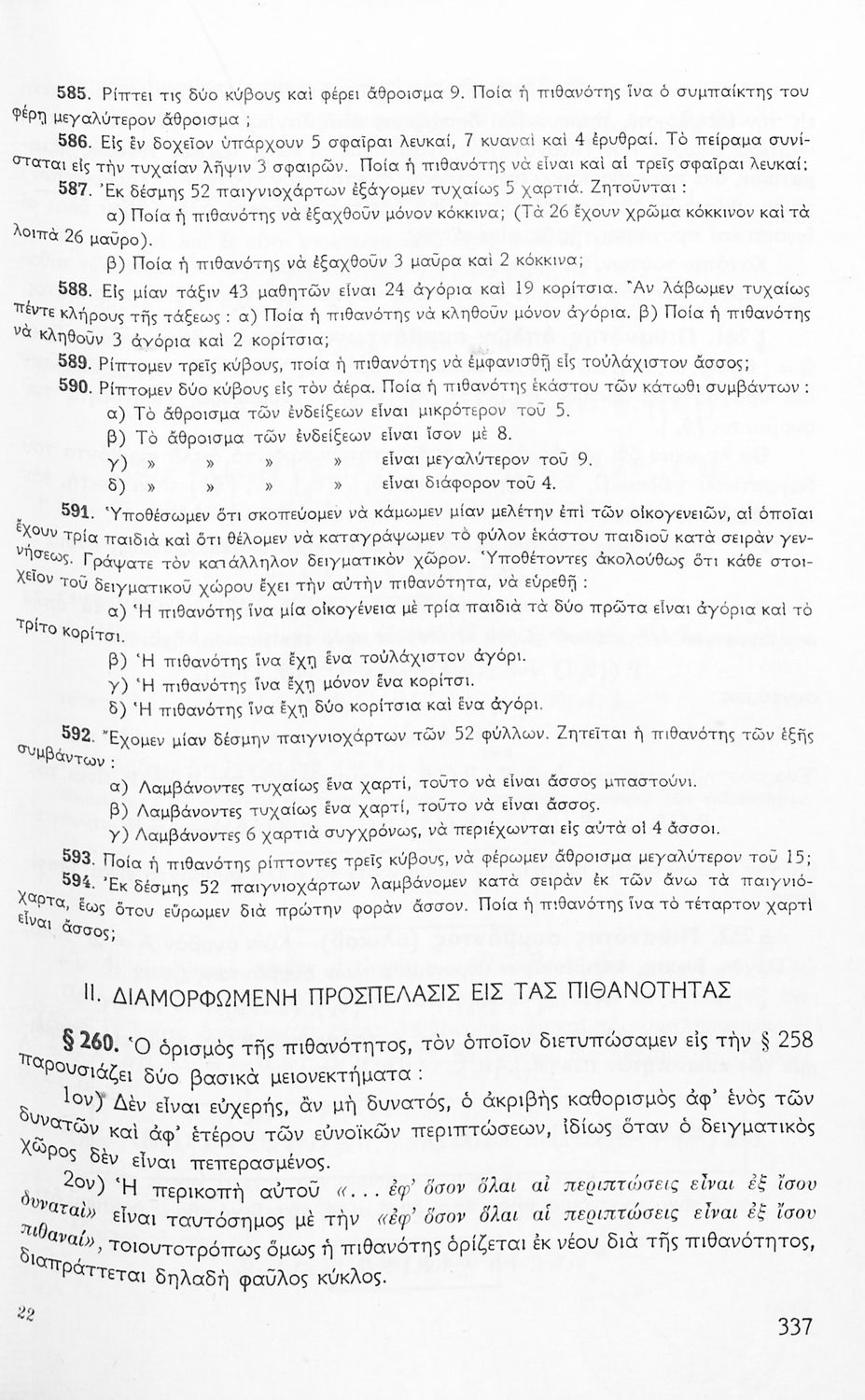 Σχολικό εγχειρίδιο Μαθηματικών Ε' Γυμνασίου που εστιάζει στη θεωρίας των συνόλων, τα ακέραια πολυώνυμα, τους πραγματικούς αριθμούς και τις πιθανότητες. Φέρει το σύμβολο της δικτατορίας.