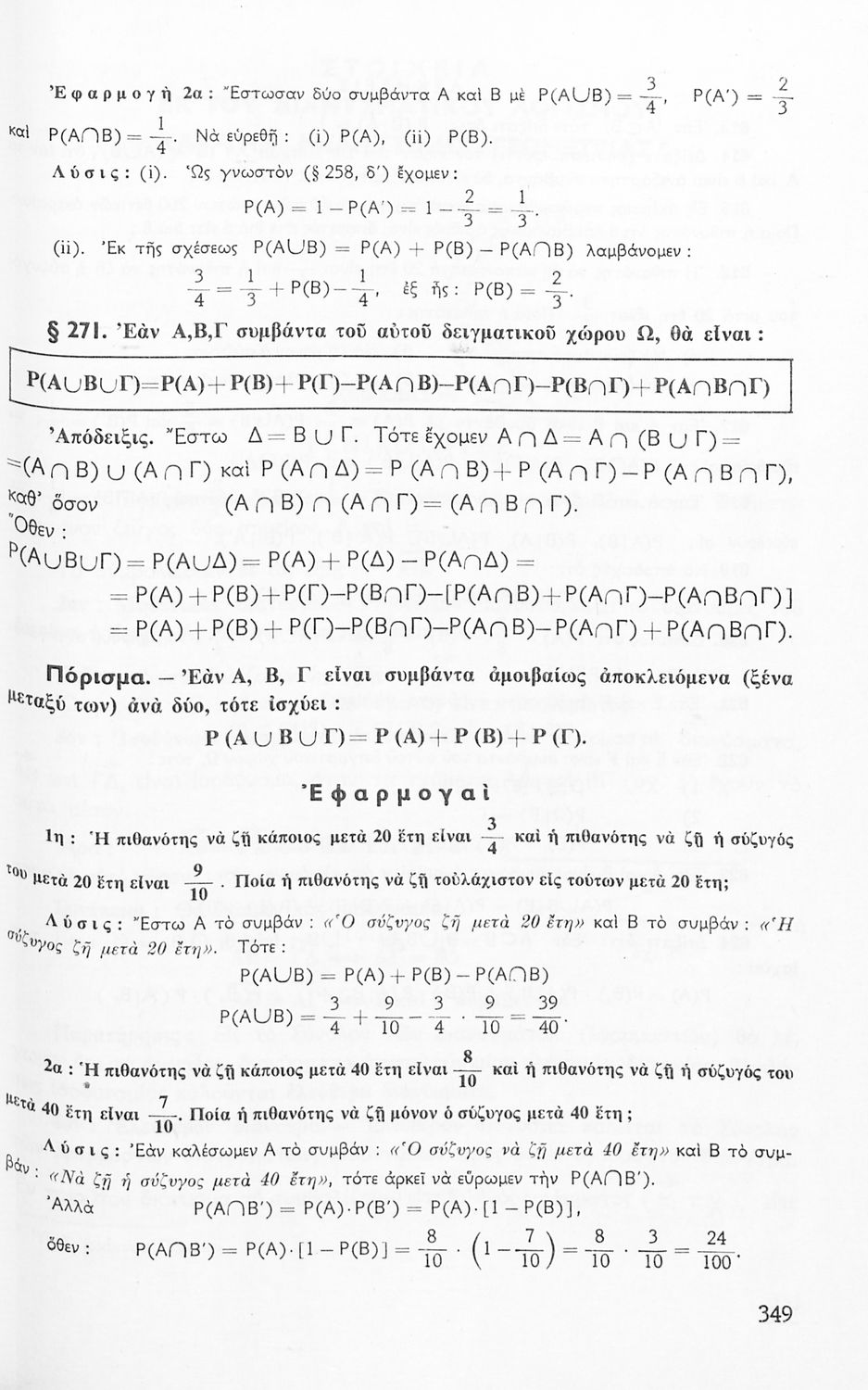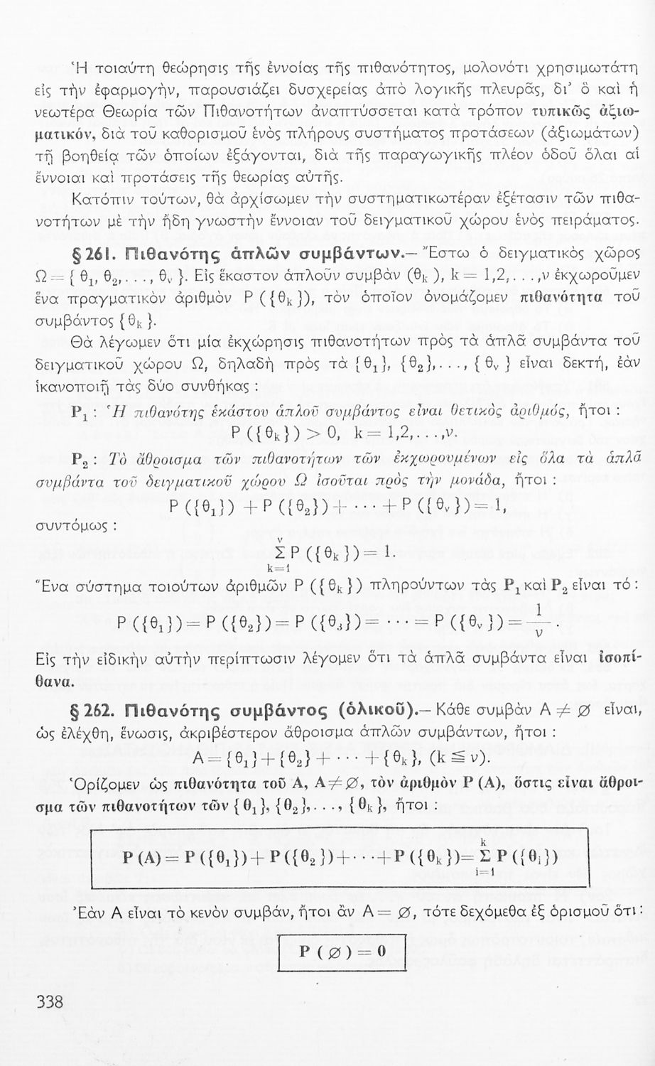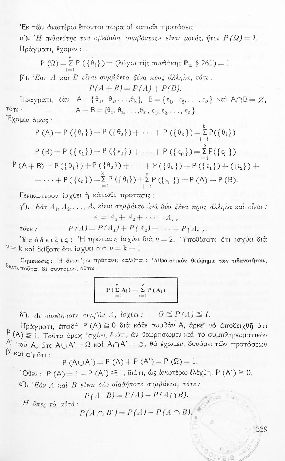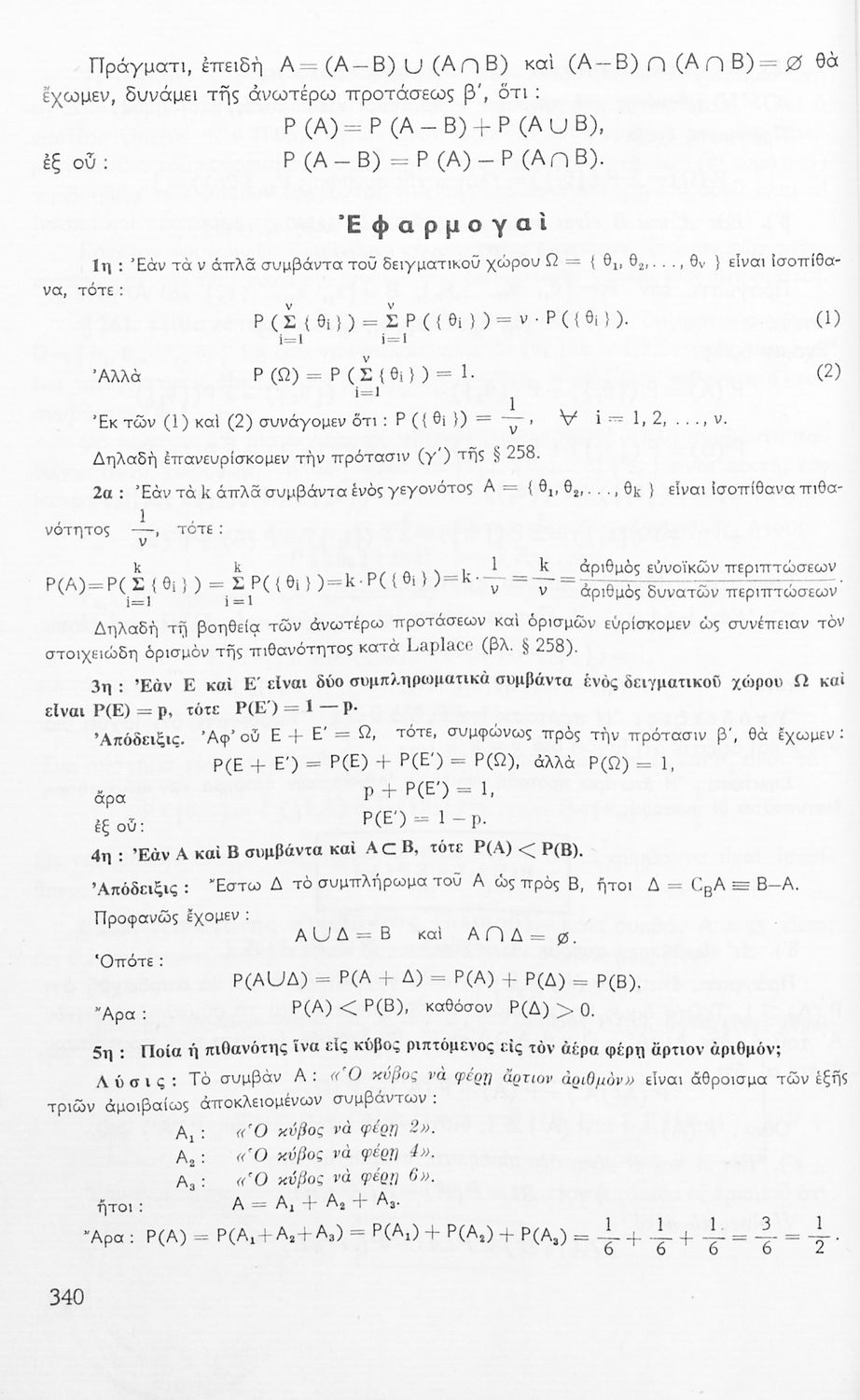 Σχολικό εγχειρίδιο Μαθηματικών Ε' Γυμνασίου που εστιάζει στη θεωρίας των συνόλων, τα ακέραια πολυώνυμα, τους πραγματικούς αριθμούς και τις πιθανότητες. Φέρει το σύμβολο της δικτατορίας.