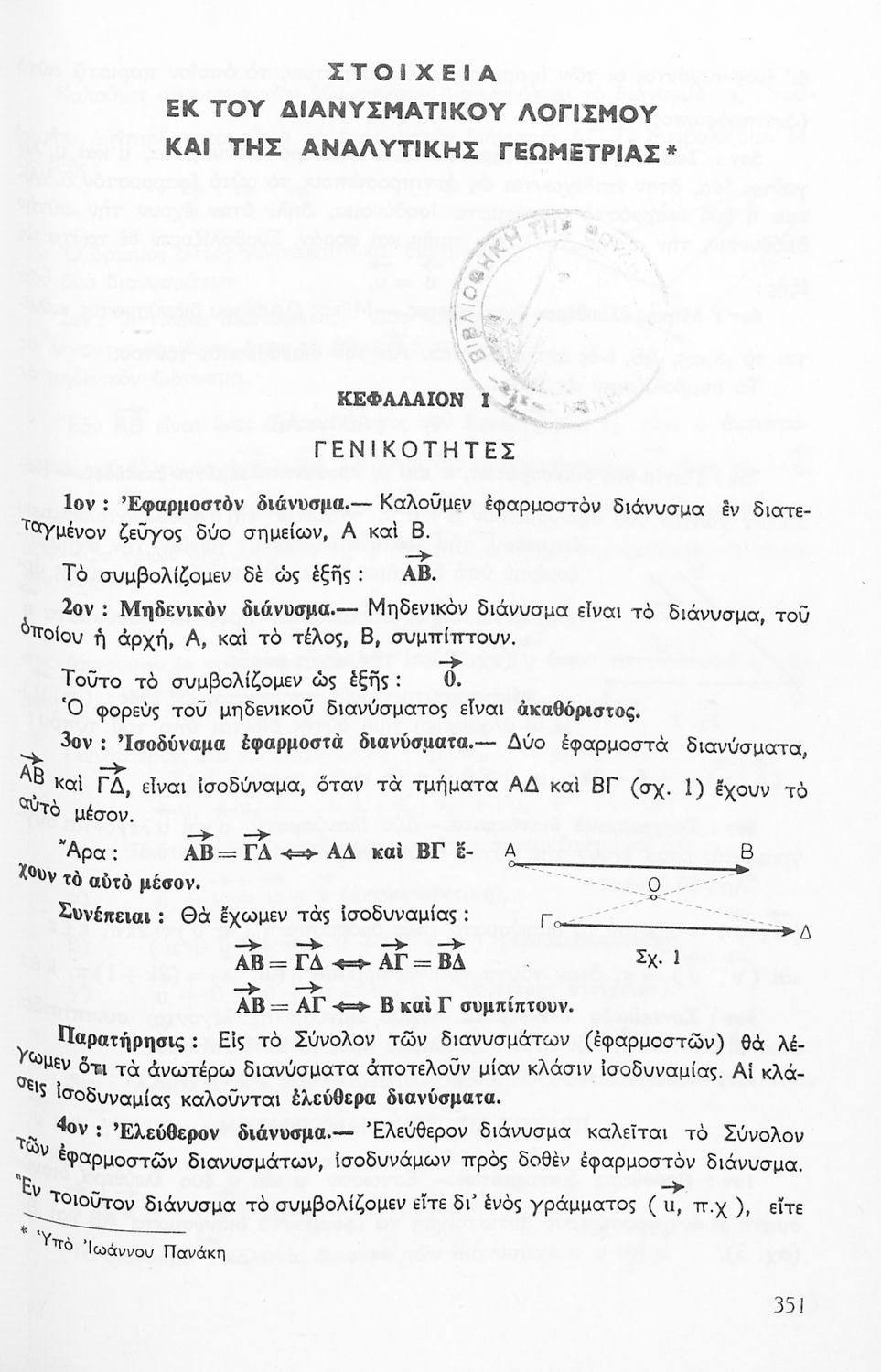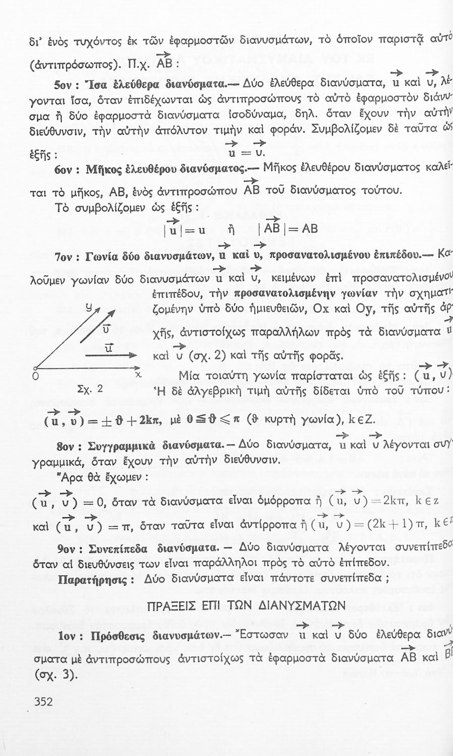 Σχολικό εγχειρίδιο Μαθηματικών Δ΄ και Ε΄ Γυμνασίου που είναι χωρισμένο σε θεωρήματα και ασκήσεις και εστιάζει στη Γεωμετρία. Φέρει το σύμβολο της δικτατορίας.