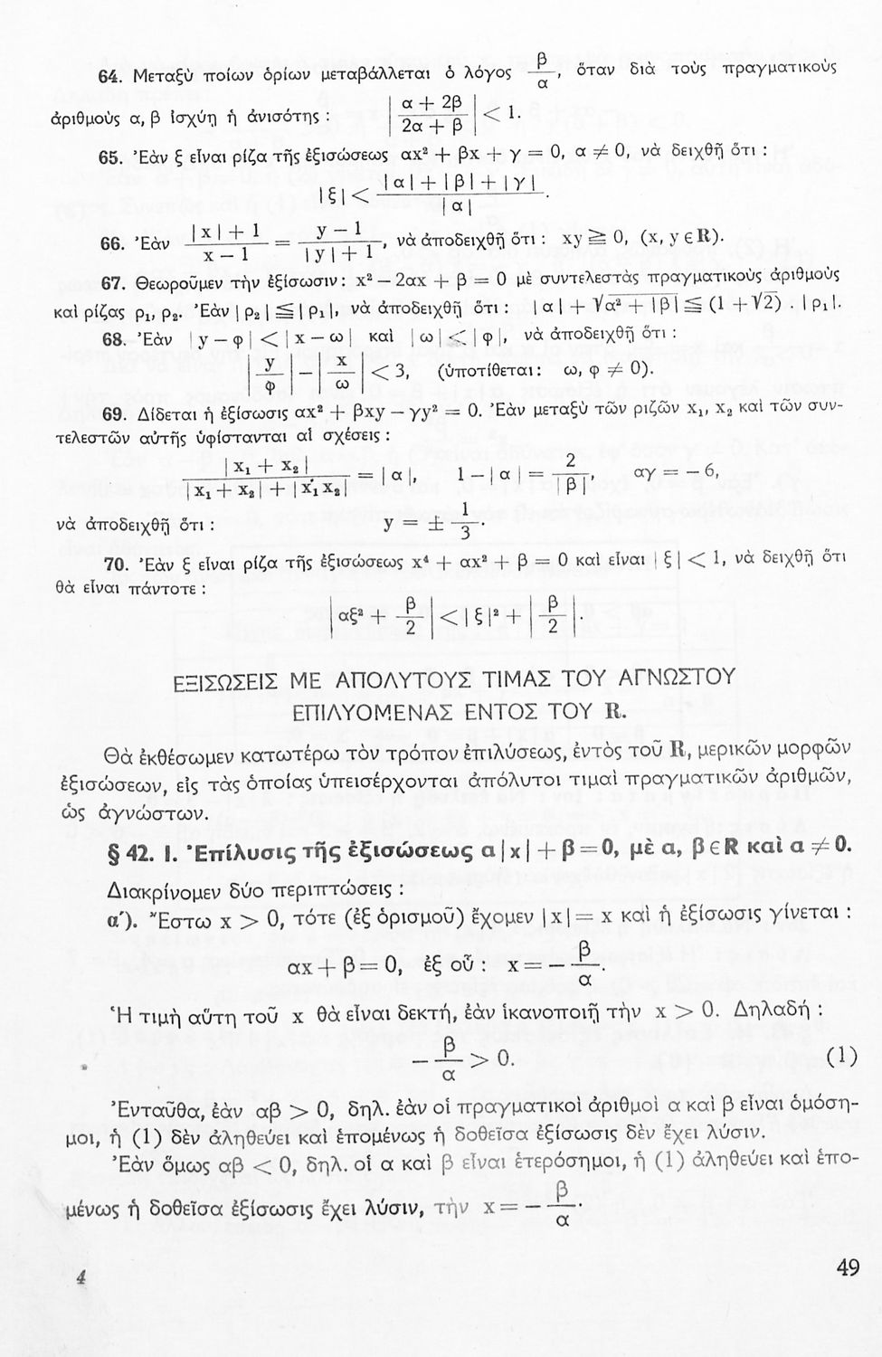Σχολικό εγχειρίδιο Μαθηματικών Δ΄ και Ε΄ Γυμνασίου που είναι χωρισμένο σε θεωρήματα και ασκήσεις και εστιάζει στη Γεωμετρία. Φέρει το σύμβολο της δικτατορίας.