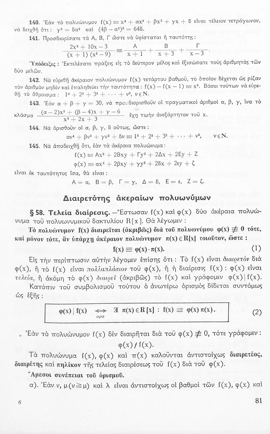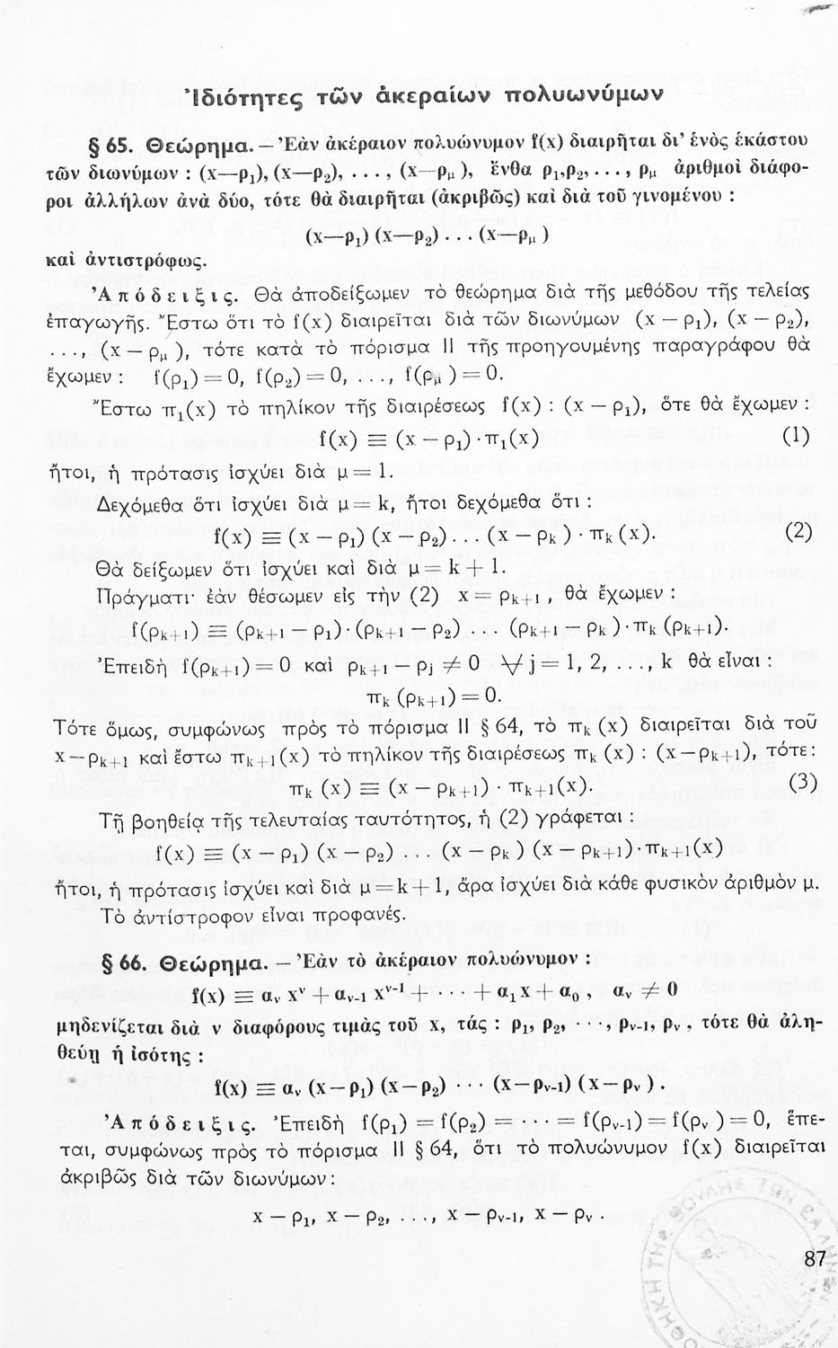 Σχολικό εγχειρίδιο Μαθηματικών Δ΄ και Ε΄ Γυμνασίου που είναι χωρισμένο σε θεωρήματα και ασκήσεις και εστιάζει στη Γεωμετρία. Φέρει το σύμβολο της δικτατορίας.