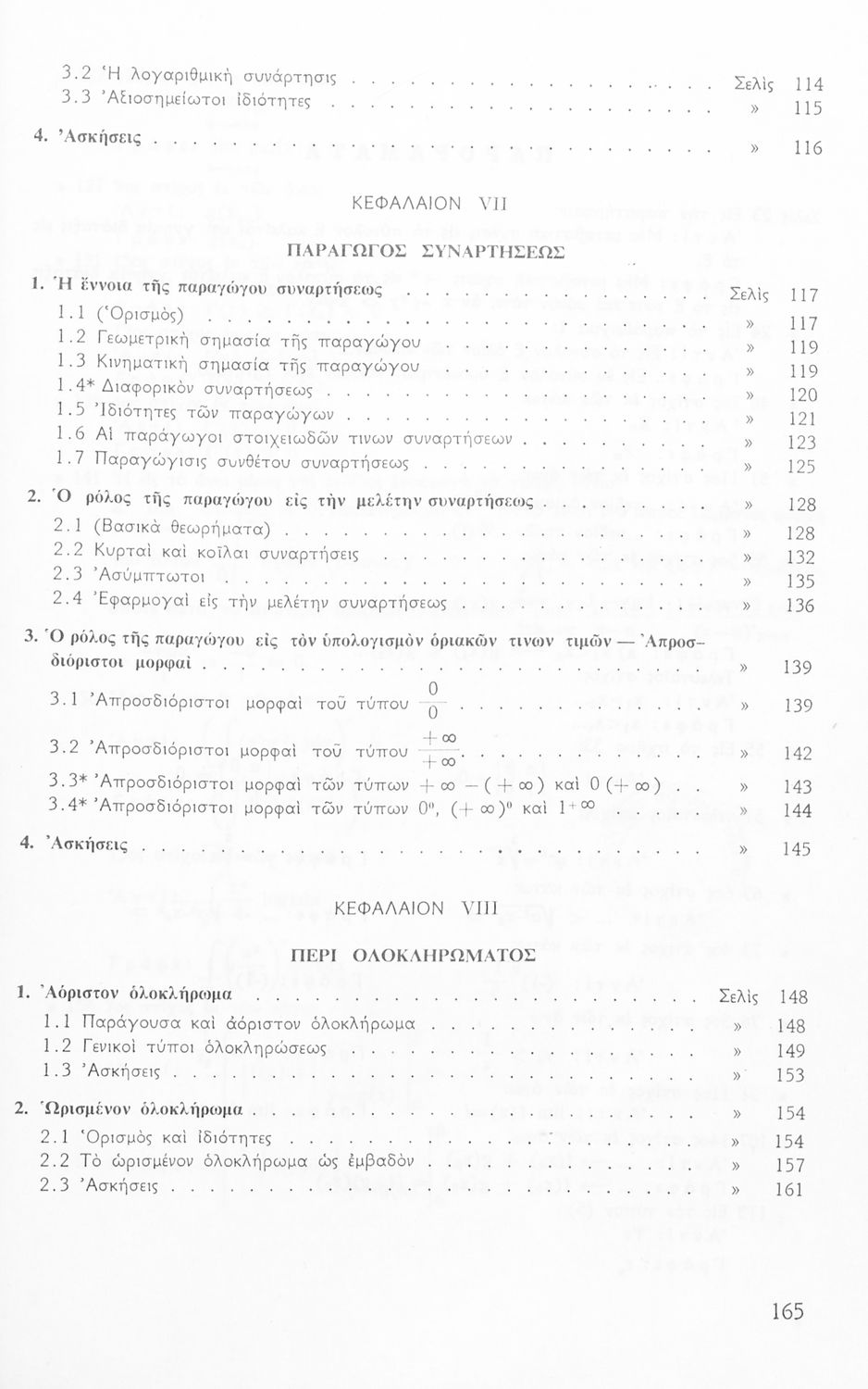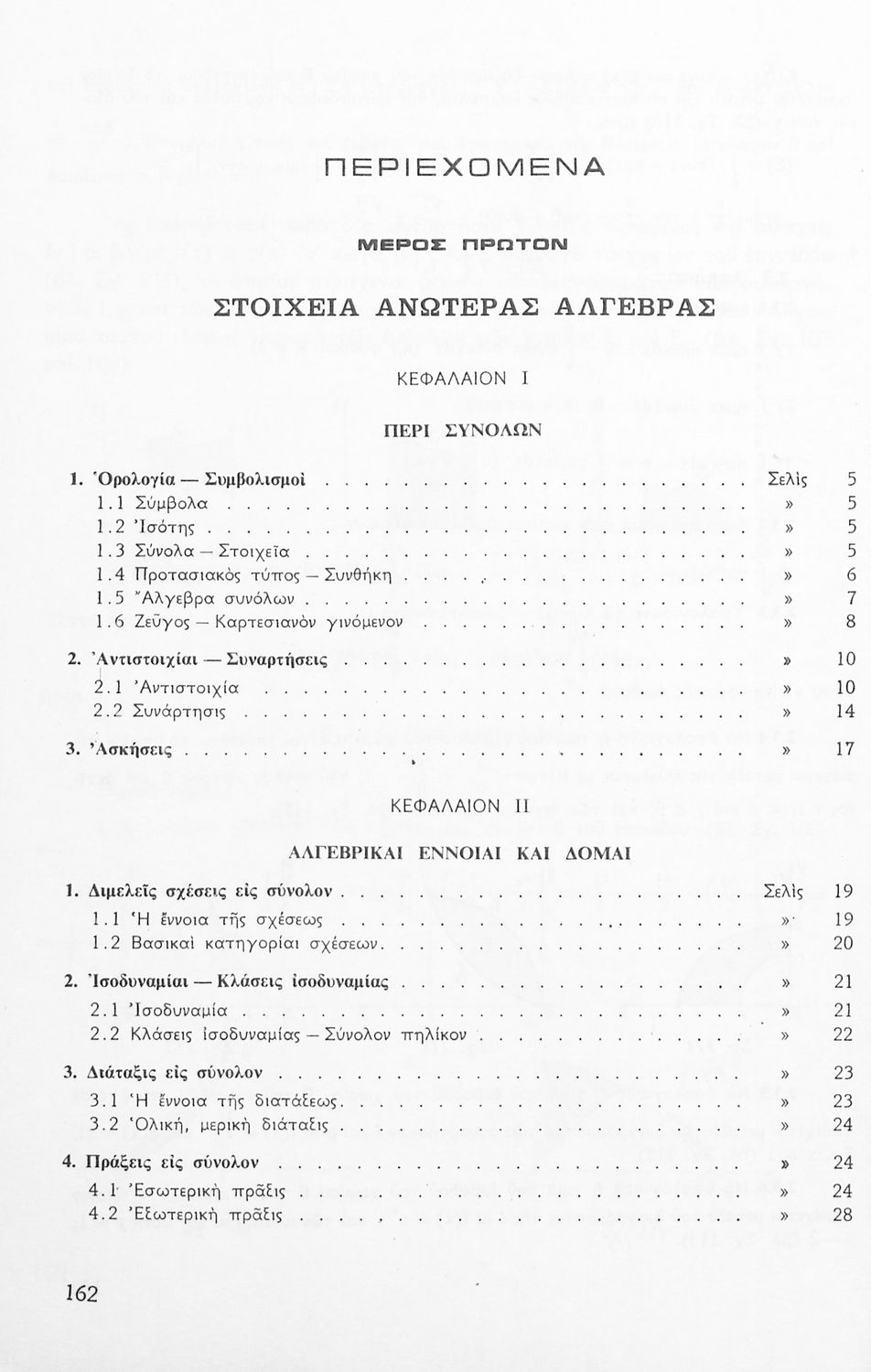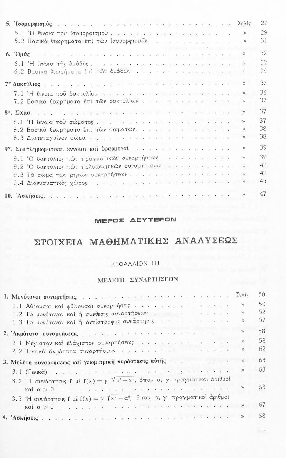 Το σύγγραμμα ήταν σχολικό εγχειρίδιο για το μάθημα των Μαθηματικών στο Γυμνάσιο. Περιέχει βασικές γνώσεις 'Άλγεβρας, σύνολα, συναρτήσεις, ολοκληρώματα, λογάριθμους, παραγώγους συναρτήσεων. Εκτός από τη θεωρία το βιβλίο περιέχει και ασκήσεις.