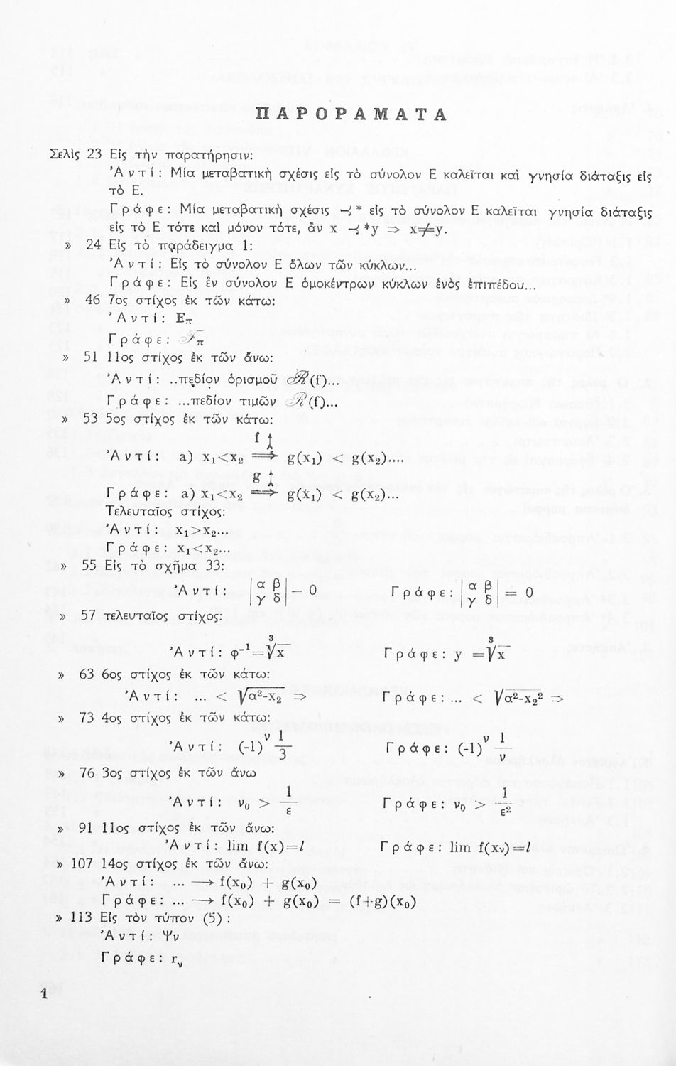 Βαθμίδα εκπαίδευσης: Δευτεροβάθμια Τάξη: ΣΤ' Γυμνασίου Μάθημα: Μαθηματικά Γλώσσα: Απλή καθαρεύουσα Παρουσίαση περιεχομένου: Το σύγγραμμα ήταν σχολικό εγχειρίδιο για το μάθημα των Μαθηματικών στο Γυμνάσιο. Περιέχει βασικές γνώσεις 'Άλγεβρας, σύνολα, συναρτήσεις, ολοκληρώματα, λογάριθμους, παραγώγους συναρτήσεων. Εκτός από τη θεωρία το βιβλίο περιέχει και ασκήσεις. |