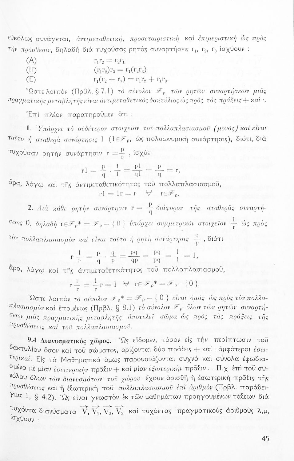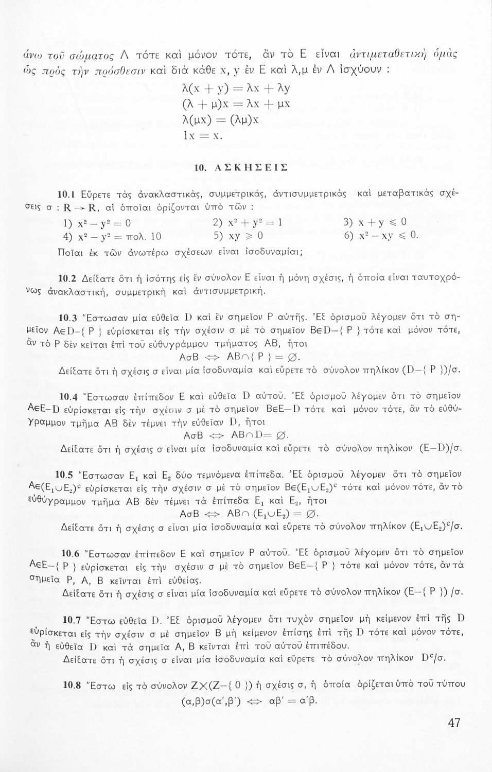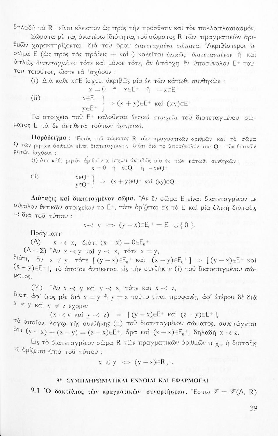 Σχολικό εγχειρίδιο Μαθηματικών Γυμνασίου που είναι χωρισμένο σε θεωρήματα, παραδείγματα και ασκήσεις και περιλαμβάνει στοιχεία Ανώτερης Άλγεβρας και Μαθηματικής Ανάλυσης.