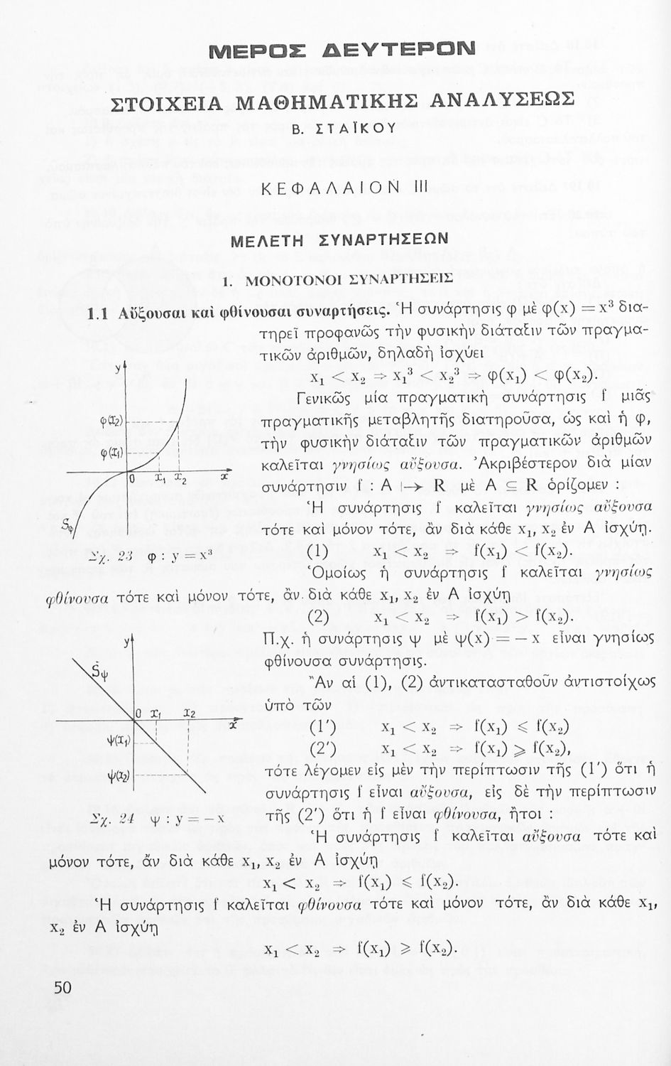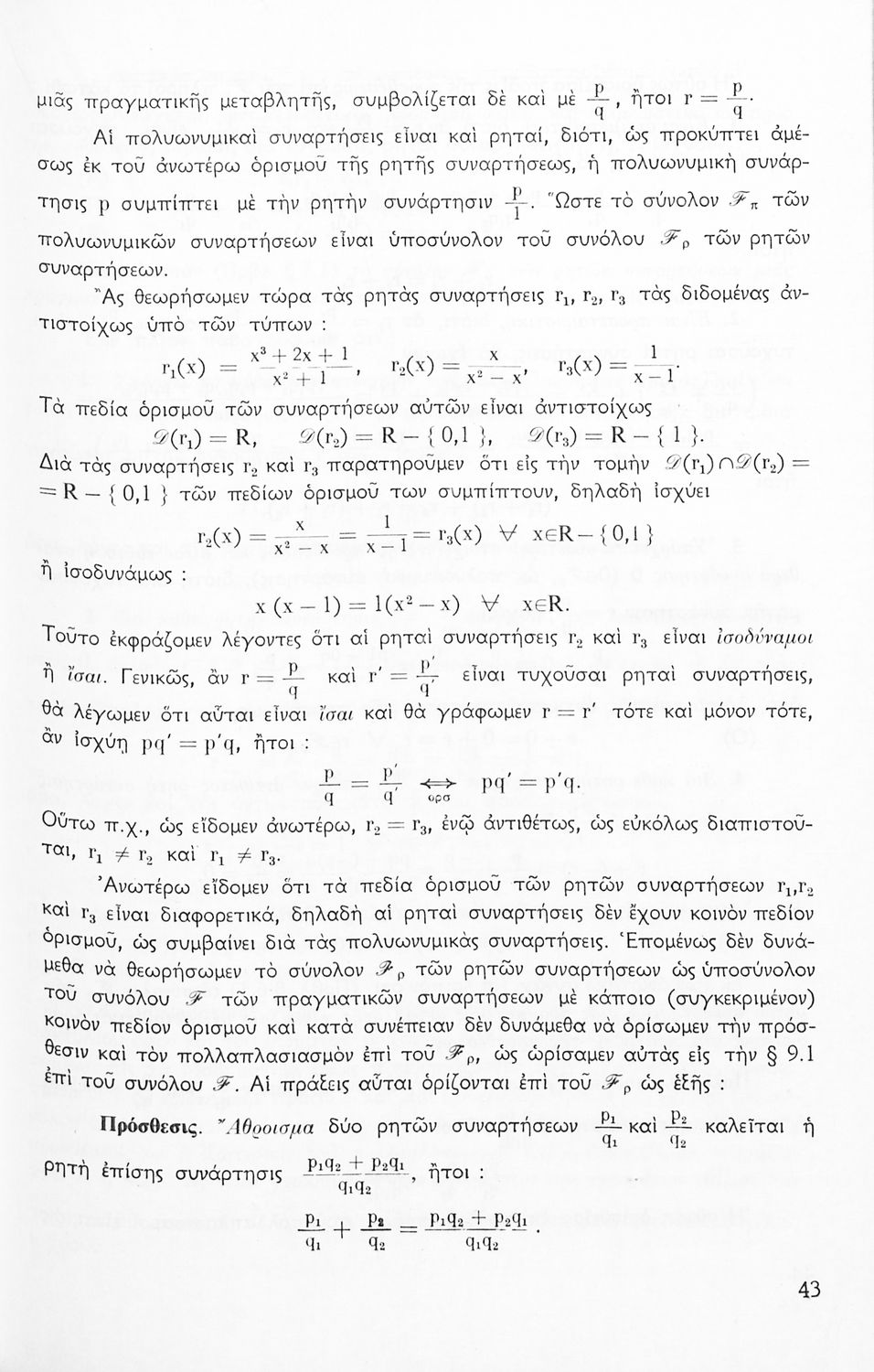 Παρουσίαση περιεχομένου: Το σύγγραμμα ήταν σχολικό εγχειρίδιο για το μάθημα των Μαθηματικών στο Γυμνάσιο. Περιέχει βασικές γνώσεις 'Άλγεβρας, σύνολα, συναρτήσεις, ολοκληρώματα, λογάριθμους, παραγώγους συναρτήσεων. Εκτός από τη θεωρία το βιβλίο περιέχει και ασκήσεις.