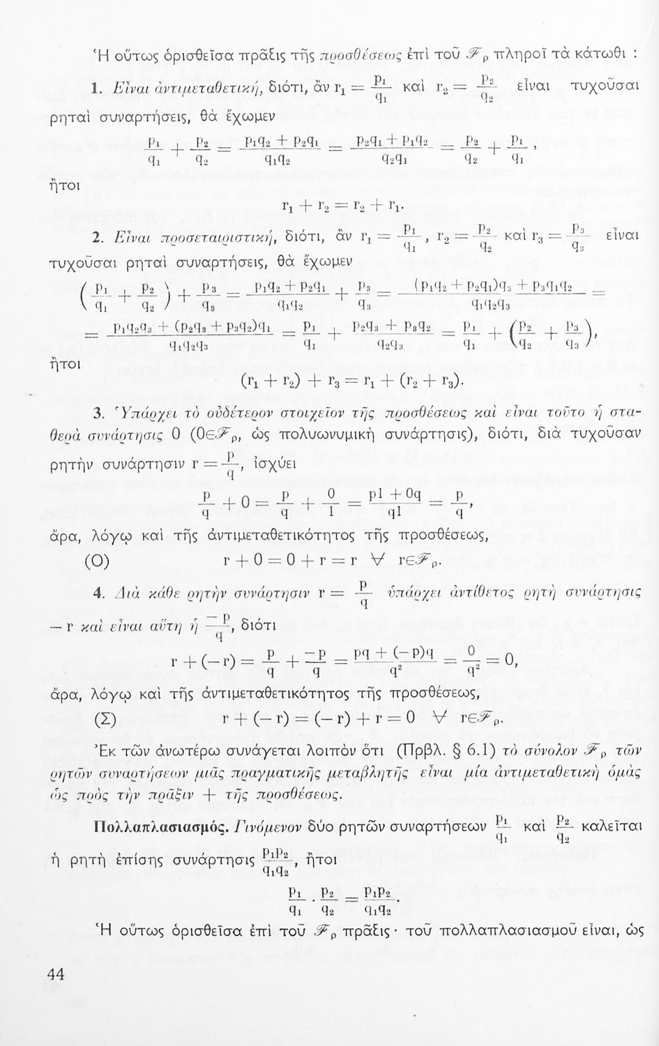 Το σύγγραμμα ήταν σχολικό εγχειρίδιο για το μάθημα των Μαθηματικών στο Γυμνάσιο. Περιέχει βασικές γνώσεις 'Άλγεβρας, σύνολα, συναρτήσεις, ολοκληρώματα, λογάριθμους, παραγώγους συναρτήσεων. Εκτός από τη θεωρία ...