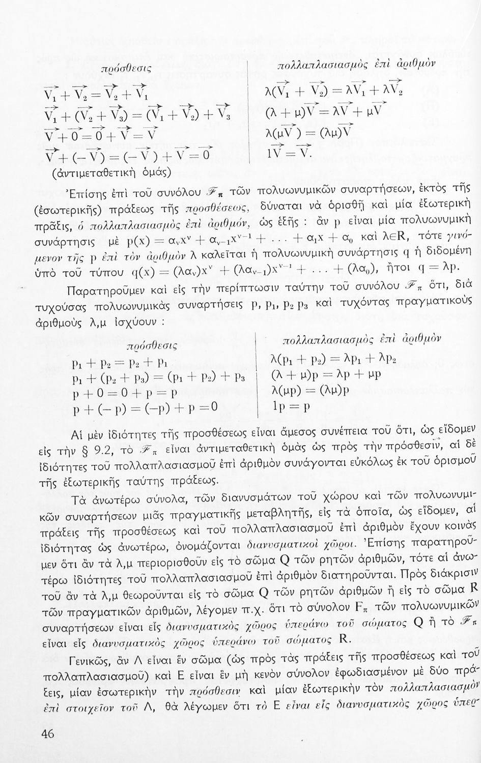 Σχολικό εγχειρίδιο Μαθηματικών ΣΤ΄ Γυμνασίου που είναι χωρισμένο σε θεωρήματα, παραδείγματα και ασκήσεις και περιλαμβάνει στοιχεία Ανώτερης Άλγεβρας και Μαθηματικής Ανάλυσης.
