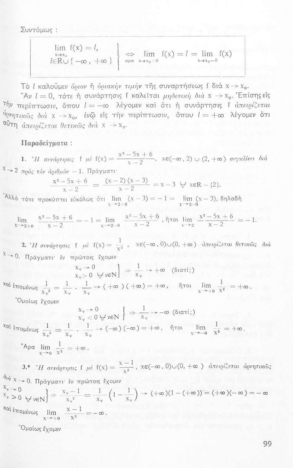 Το σύγγραμμα ήταν σχολικό εγχειρίδιο για το μάθημα των Μαθηματικών στο Γυμνάσιο. Περιέχει βασικές γνώσεις 'Άλγεβρας, σύνολα, συναρτήσεις, ολοκληρώματα, λογάριθμους, παραγώγους συναρτήσεων. Εκτός από τη θεωρία ...
