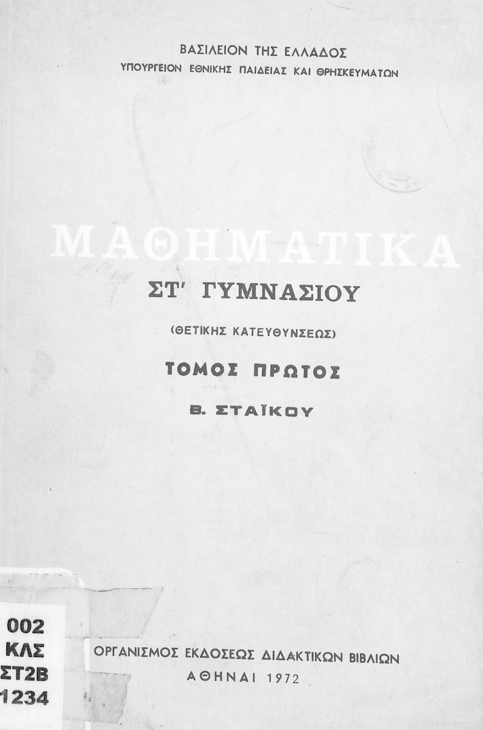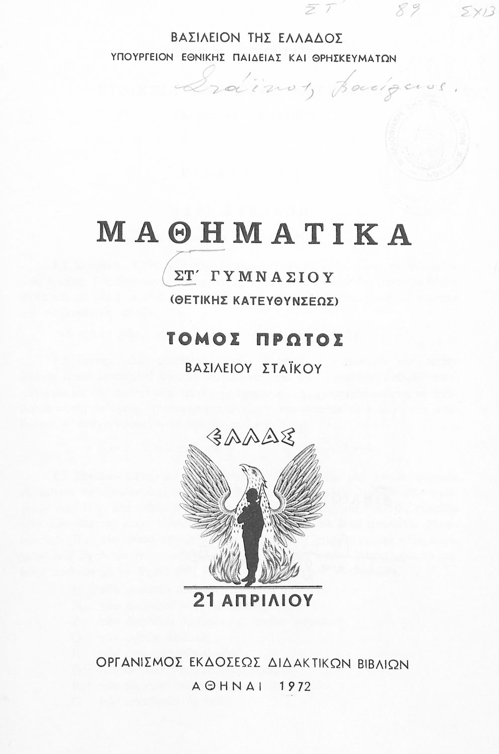 Εκδότης: Οργανισμός Εκδόσεως Διδακτικών Βιβλίων Έτος έκδοσης: 1972 Τόπος έκδοσης: Αθήνα Έκδοση: 4η Υπουργική απόφαση / Σύμβαση: 2057/18-4-1972 Έτος έγκρισης: 1972 |