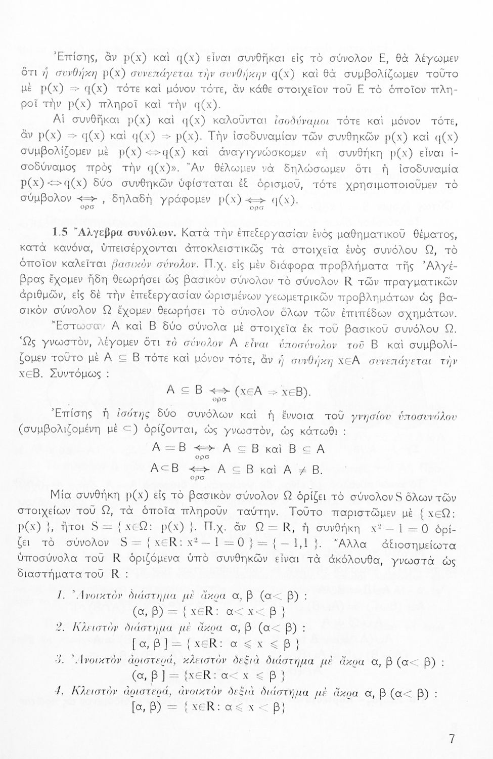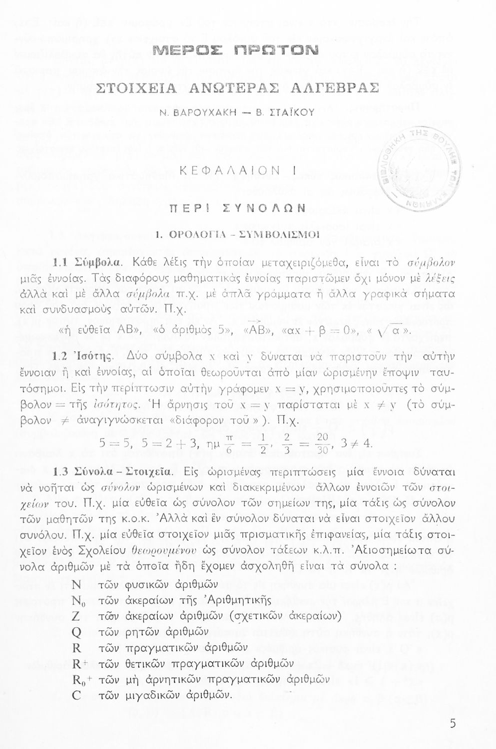 Το σύγγραμμα ήταν σχολικό εγχειρίδιο για το μάθημα των Μαθηματικών στο Γυμνάσιο. Περιέχει βασικές γνώσεις 'Άλγεβρας, σύνολα, συναρτήσεις, ολοκληρώματα, λογάριθμους, παραγώγους συναρτήσεων. Εκτός από τη θεωρία το βιβλίο περιέχει και ασκήσεις.