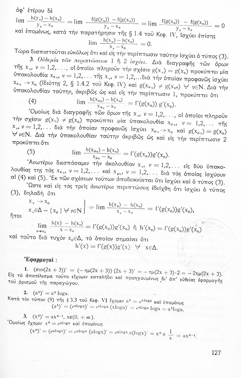 Παρουσίαση περιεχομένου: Το σύγγραμμα ήταν σχολικό εγχειρίδιο για το μάθημα των Μαθηματικών στο Γυμνάσιο. Περιέχει βασικές γνώσεις 'Άλγεβρας, σύνολα, συναρτήσεις, ολοκληρώματα, λογάριθμους, παραγώγους συναρτήσεων. Εκτός από τη θεωρία το βιβλίο περιέχει και ασκήσεις.