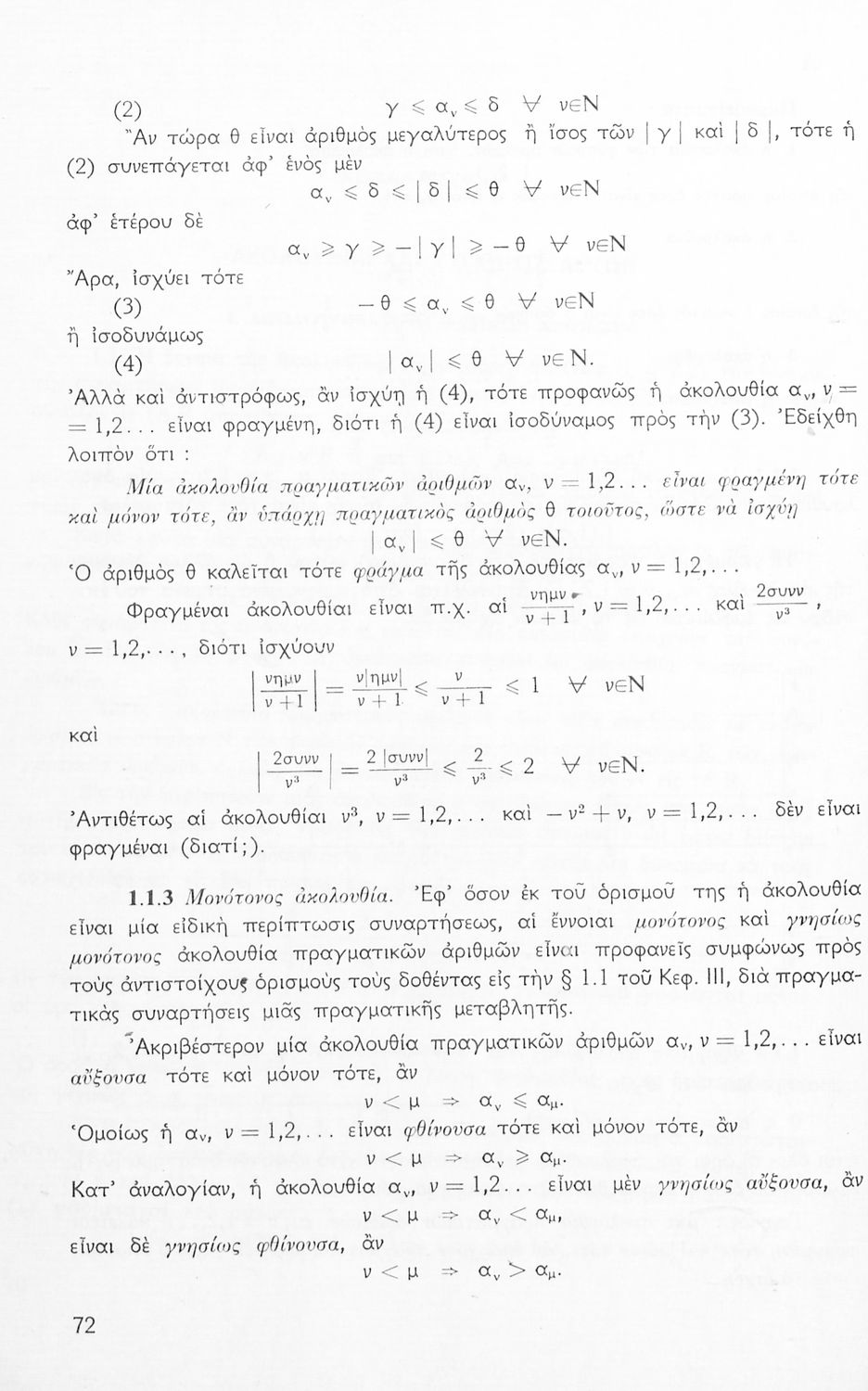 Παρουσίαση περιεχομένου: Το σύγγραμμα ήταν σχολικό εγχειρίδιο για το μάθημα των Μαθηματικών στο Γυμνάσιο. Περιέχει βασικές γνώσεις 'Άλγεβρας, σύνολα, συναρτήσεις, ολοκληρώματα, λογάριθμους, παραγώγους συναρτήσεων. Εκτός από τη θεωρία το βιβλίο περιέχει και ασκήσεις.