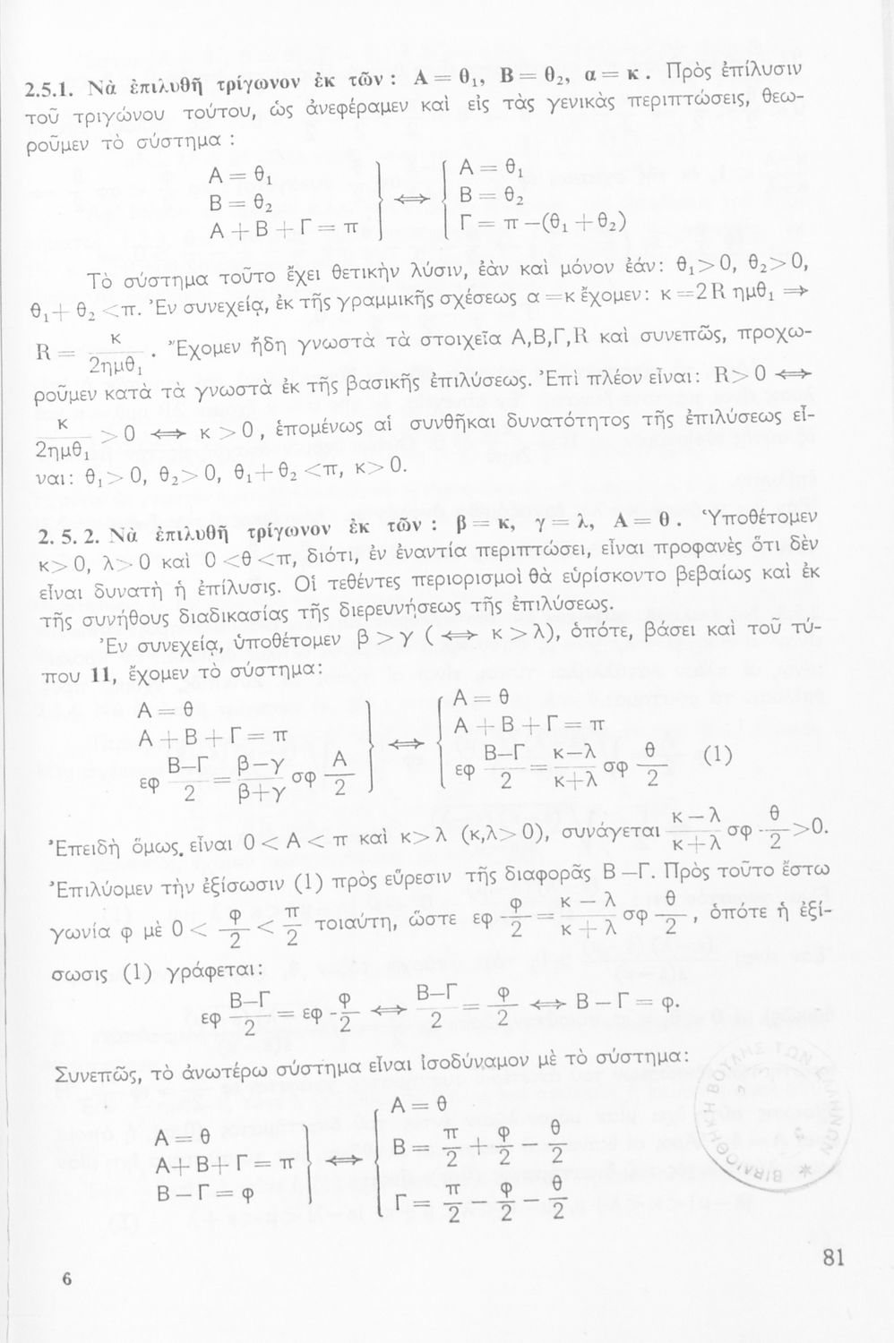 Παρουσίαση περιεχομένου: Σχολικό εγχειρίδιο της ΣΤ΄ Γυμνασίου για το μάθημα των Μαθηματικών. Περιέχει θεωρία, ασκήσεις λυμένες και παραδείγματα της Τριγωνομετρίας. Απευθυνόταν στους μαθητές της θετικής κατεύθυνσης.