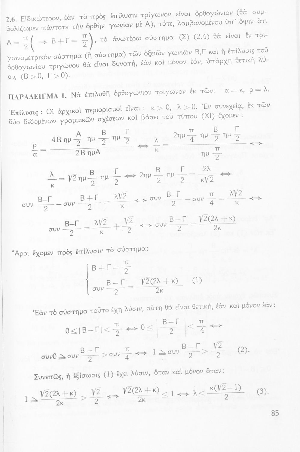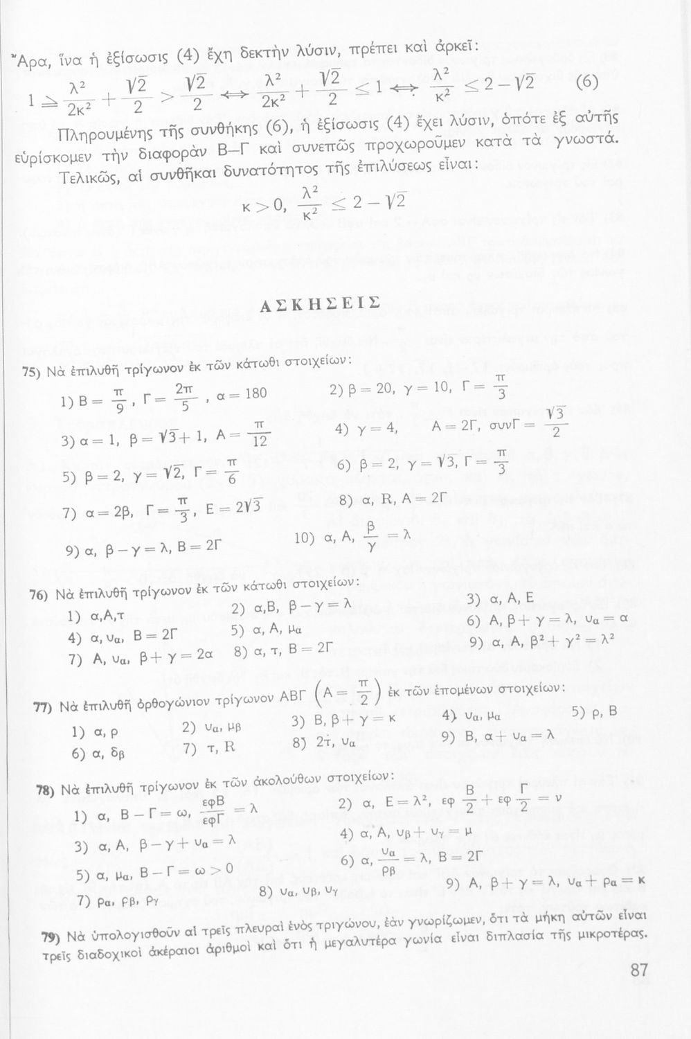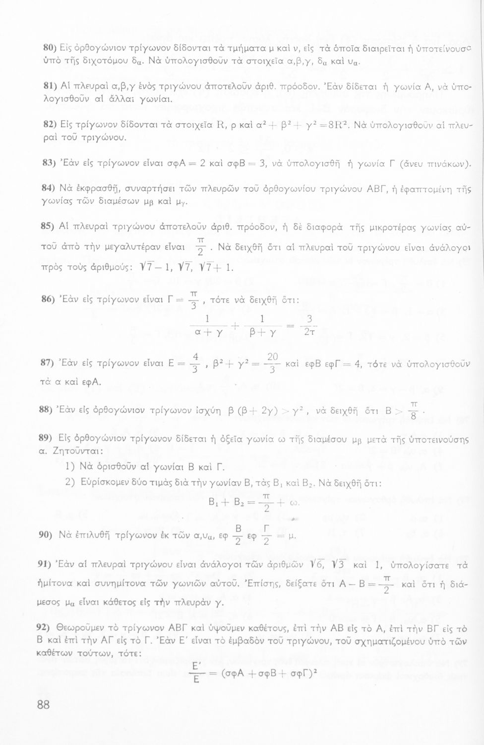 Σχολικό εγχειρίδιο της ΣΤ΄ Γυμνασίου για το μάθημα των Μαθηματικών. Περιέχει θεωρία, ασκήσεις λυμένες και παραδείγματα της Τριγωνομετρίας. Απευθυνόταν στους μαθητές της θετικής κατεύθυνσης.