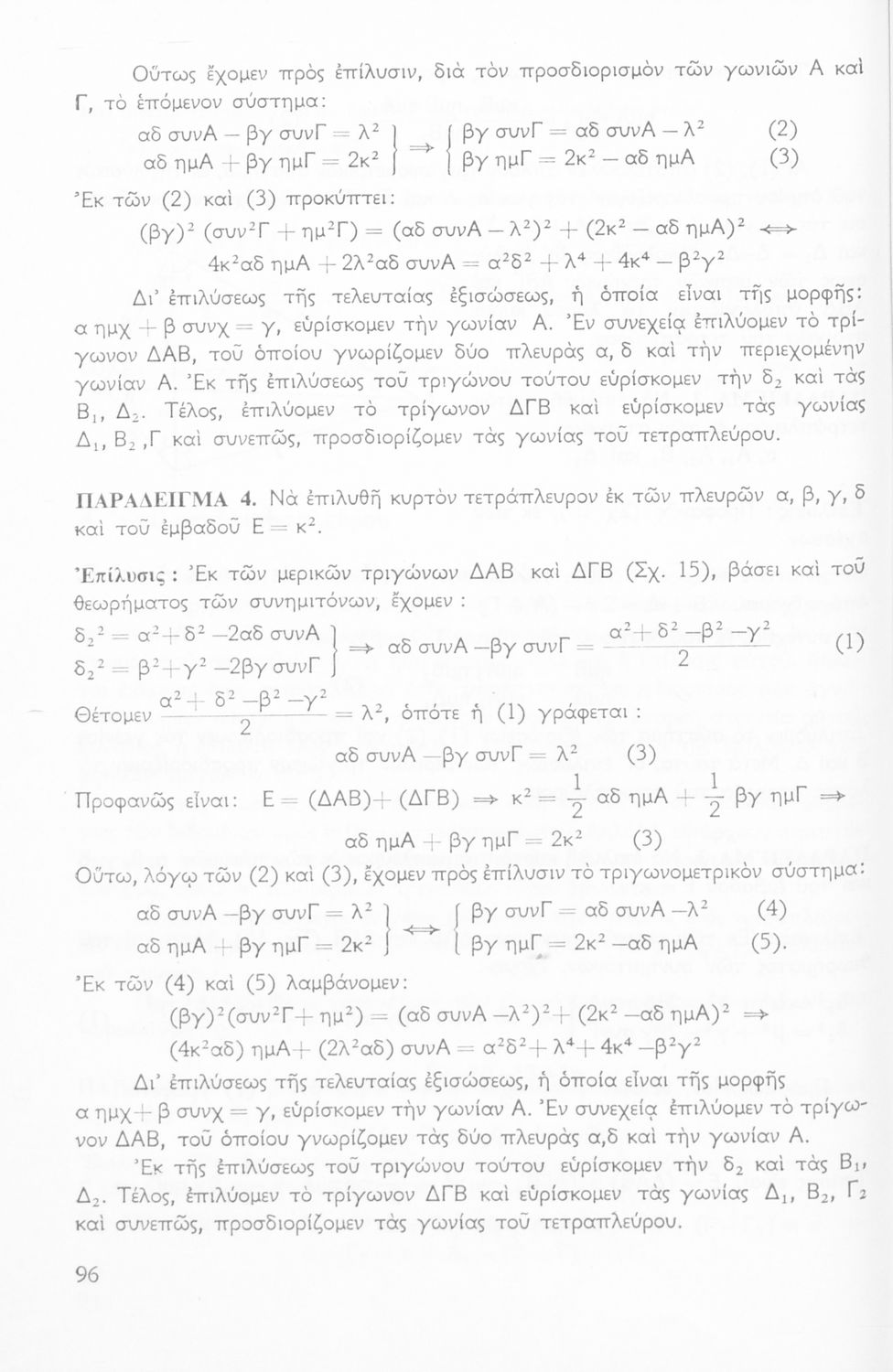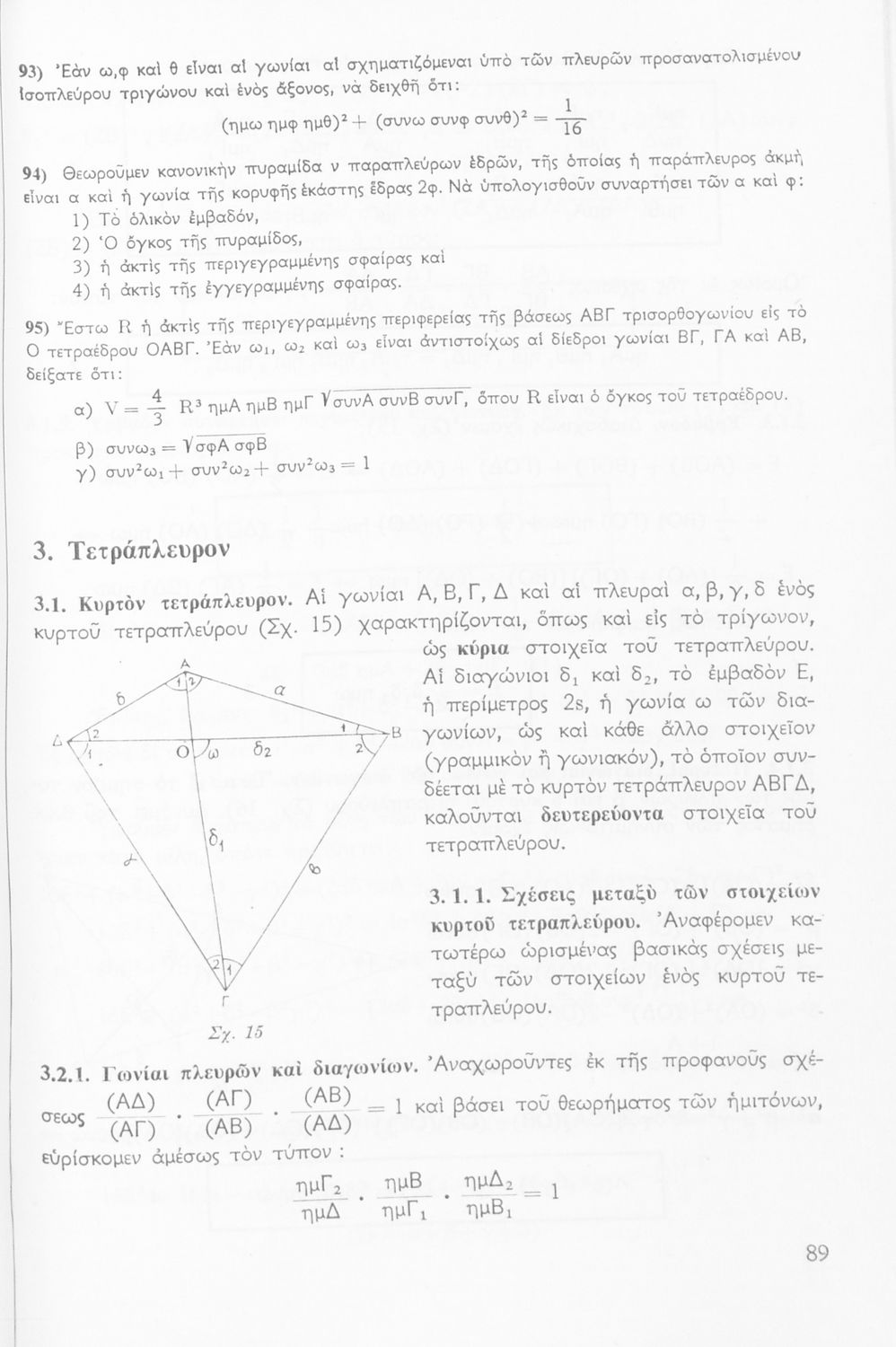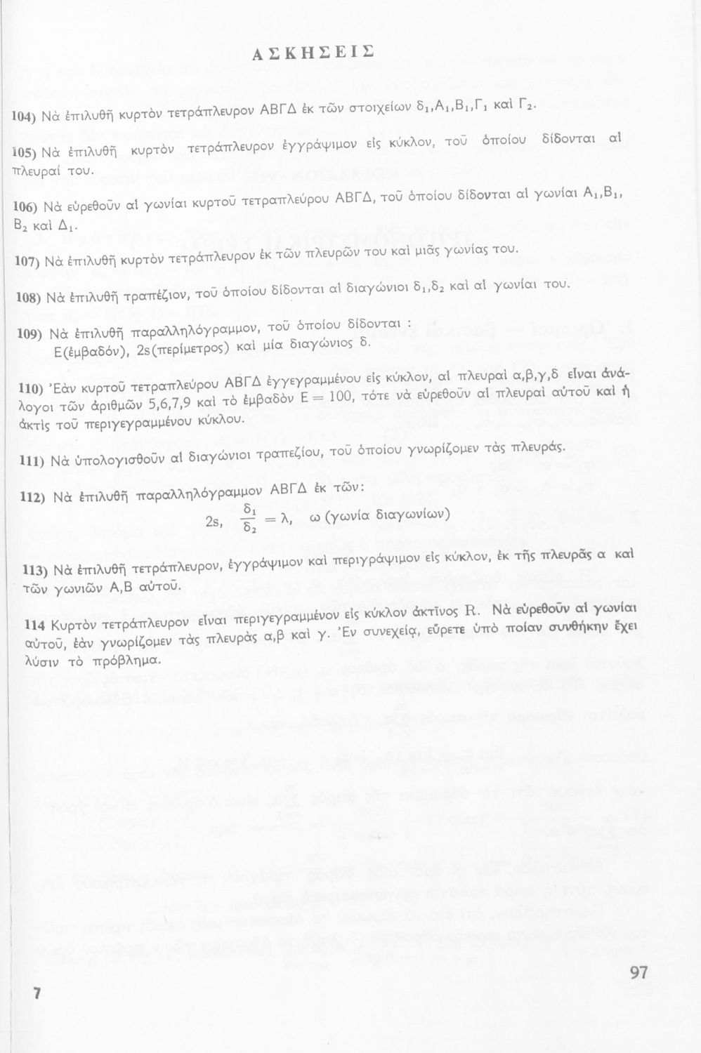 Σχολικό εγχειρίδιο Γεωμετρίας για τις Δ΄, Ε΄ και ΣΤ΄ Γυμνασίου που περιλαμβάνει αξιώματα, θεωρήματα και κατασκευές και είναι χωρισμένο σε γεωμετρία επιπέδου και γεωμετρία χώρου.