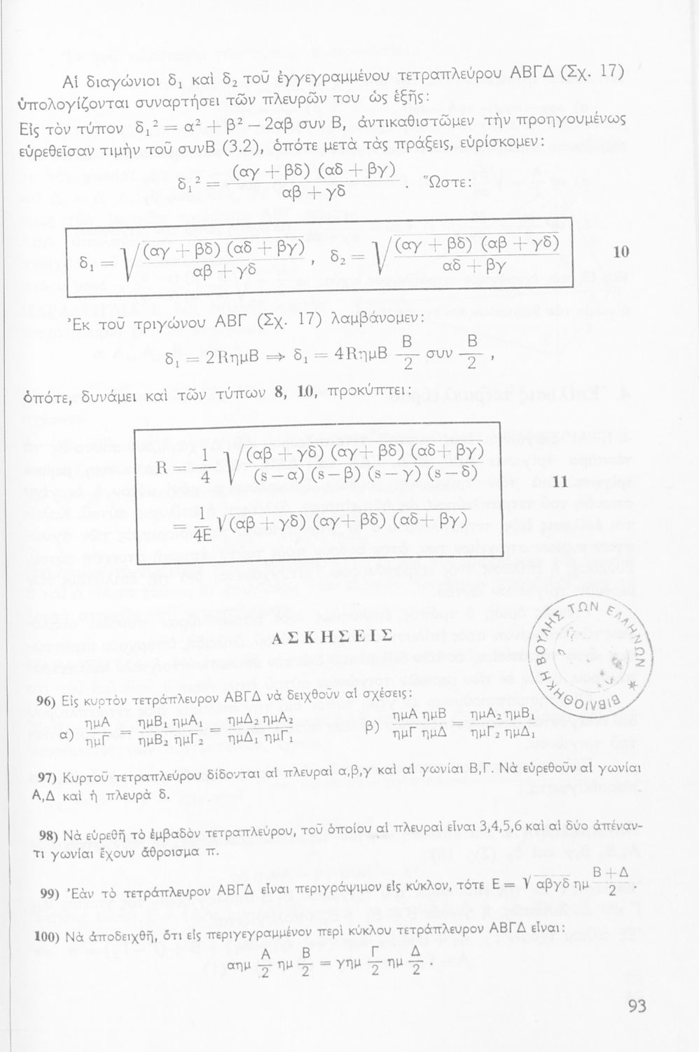 Σχολικό εγχειρίδιο Μαθηματικών Γυμνασίου που είναι χωρισμένο σε θεωρήματα, παραδείγματα και ασκήσεις και περιλαμβάνει στοιχεία Ανώτερης Άλγεβρας και Μαθηματικής Ανάλυσης.