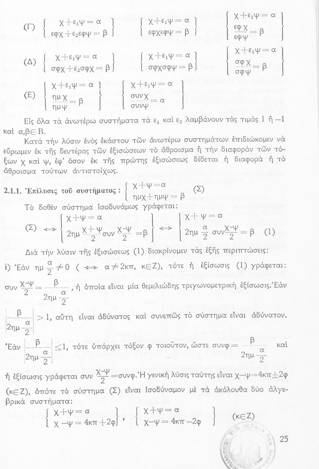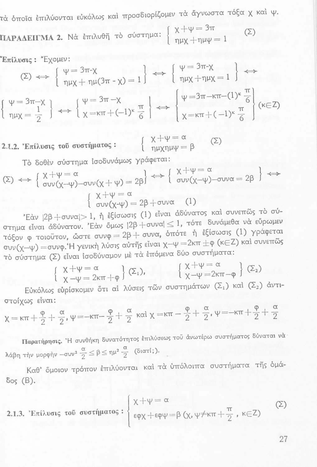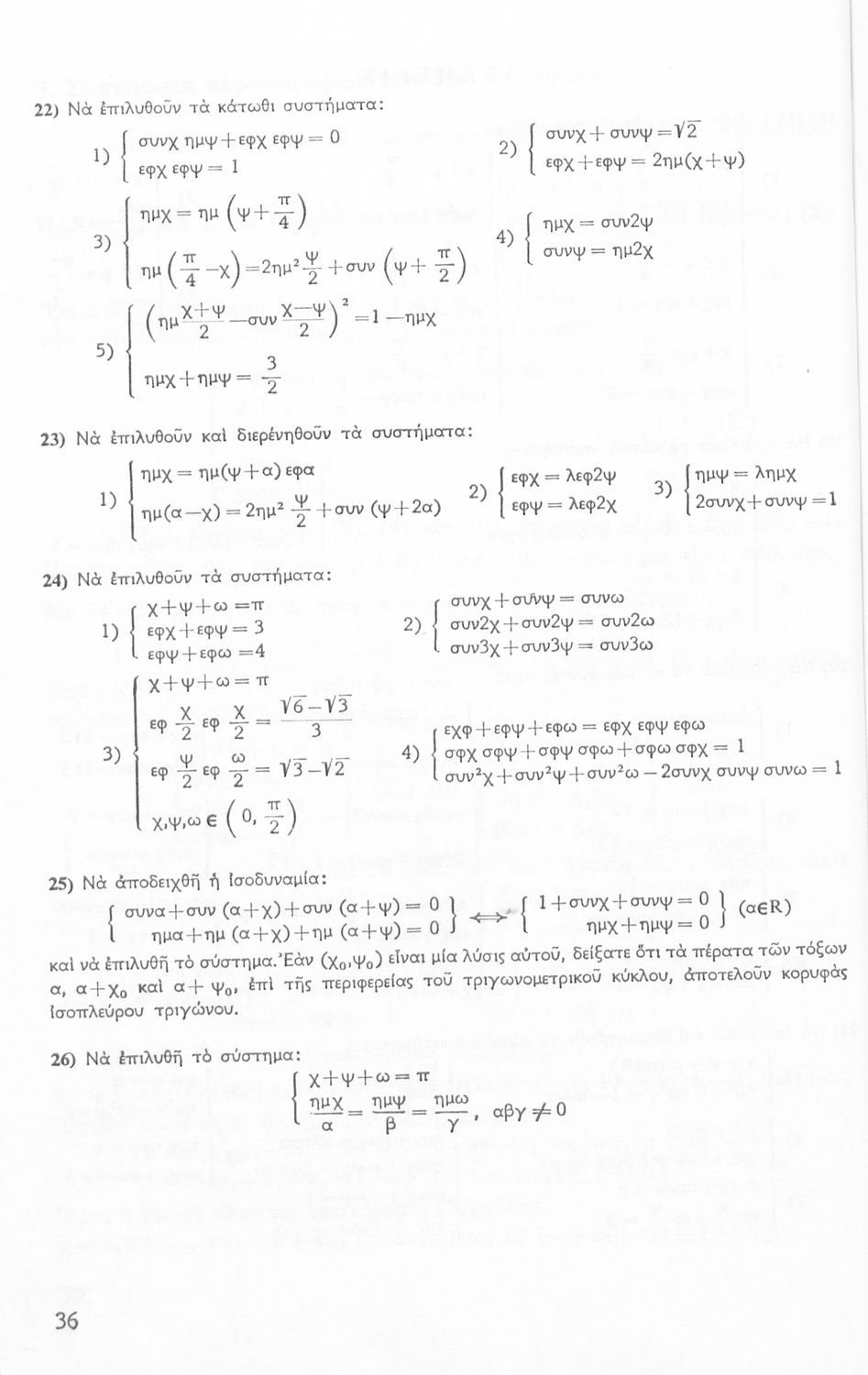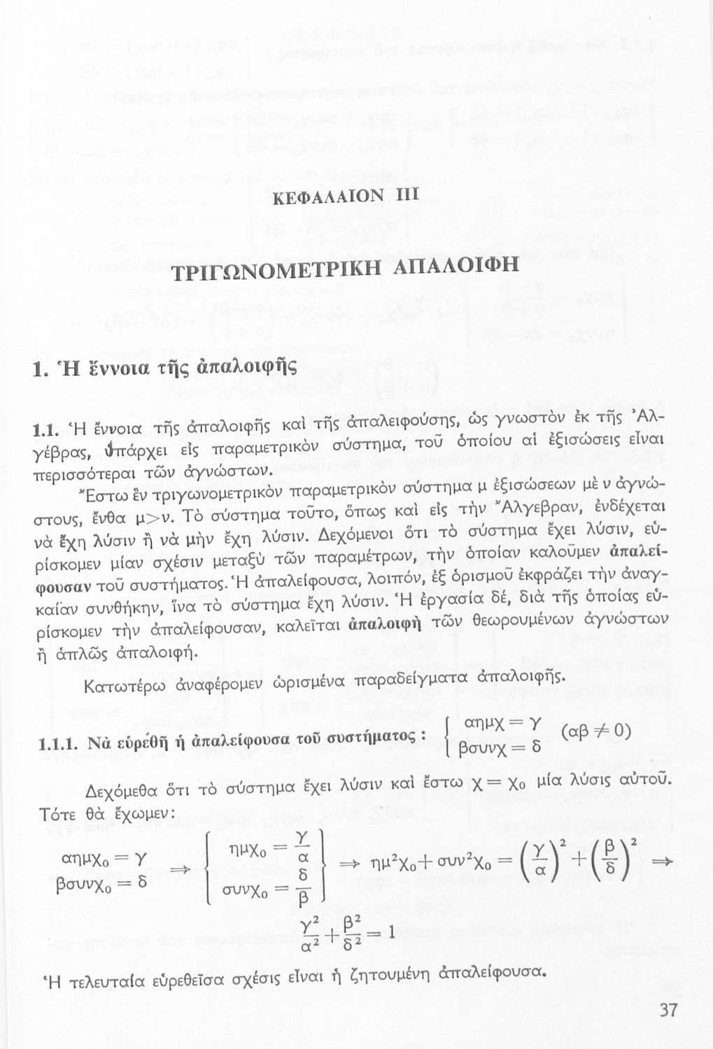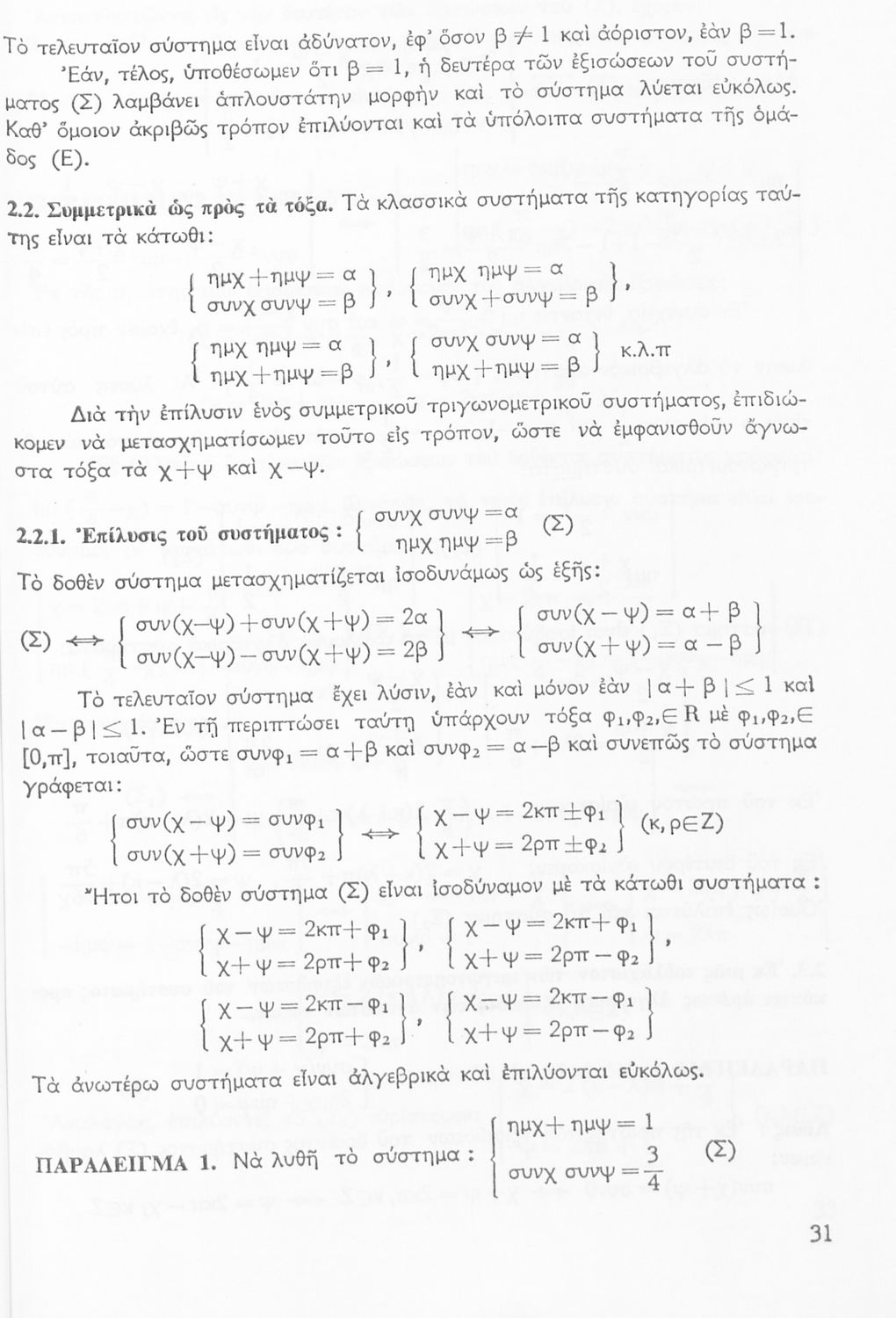 Σχολικό εγχειρίδιο της ΣΤ΄ Γυμνασίου για το μάθημα των Μαθηματικών. Περιέχει θεωρία, ασκήσεις λυμένες και παραδείγματα της Τριγωνομετρίας. Απευθυνόταν στους μαθητές της θετικής κατεύθυνσης.