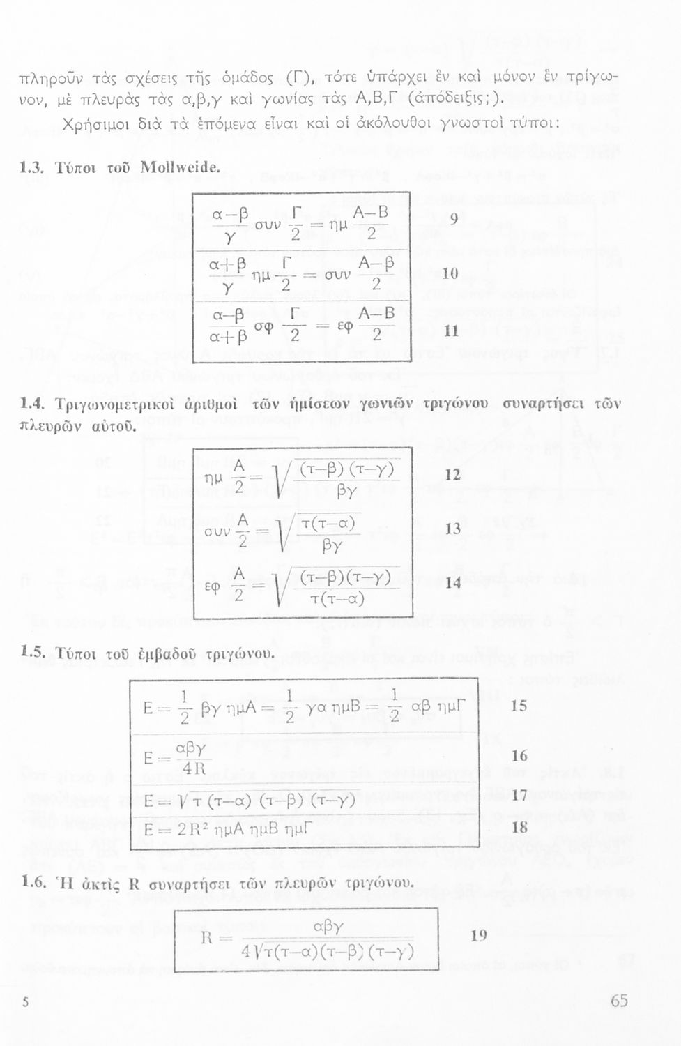 Παρουσίαση περιεχομένου: Σχολικό εγχειρίδιο της ΣΤ΄ Γυμνασίου για το μάθημα των Μαθηματικών. Περιέχει θεωρία, ασκήσεις λυμένες και παραδείγματα της Τριγωνομετρίας. Απευθυνόταν στους μαθητές της θετικής κατεύθυνσης.