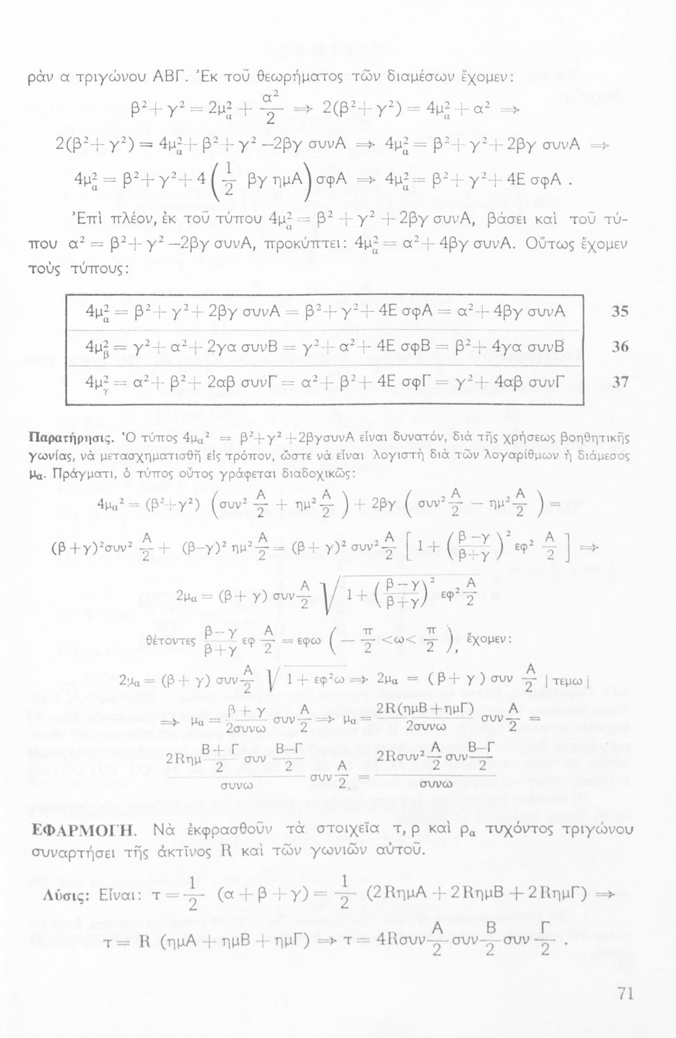 Σχολικό εγχειρίδιο της ΣΤ΄ Γυμνασίου για το μάθημα των Μαθηματικών. Περιέχει θεωρία, ασκήσεις λυμένες και παραδείγματα της Τριγωνομετρίας. Απευθυνόταν στους μαθητές της θετικής κατεύθυνσης.