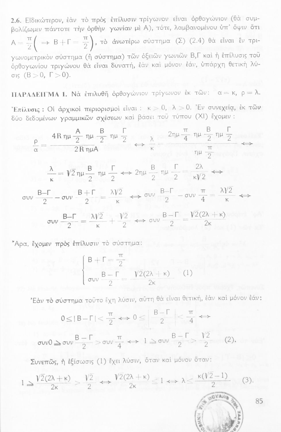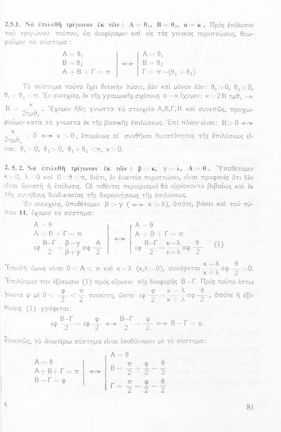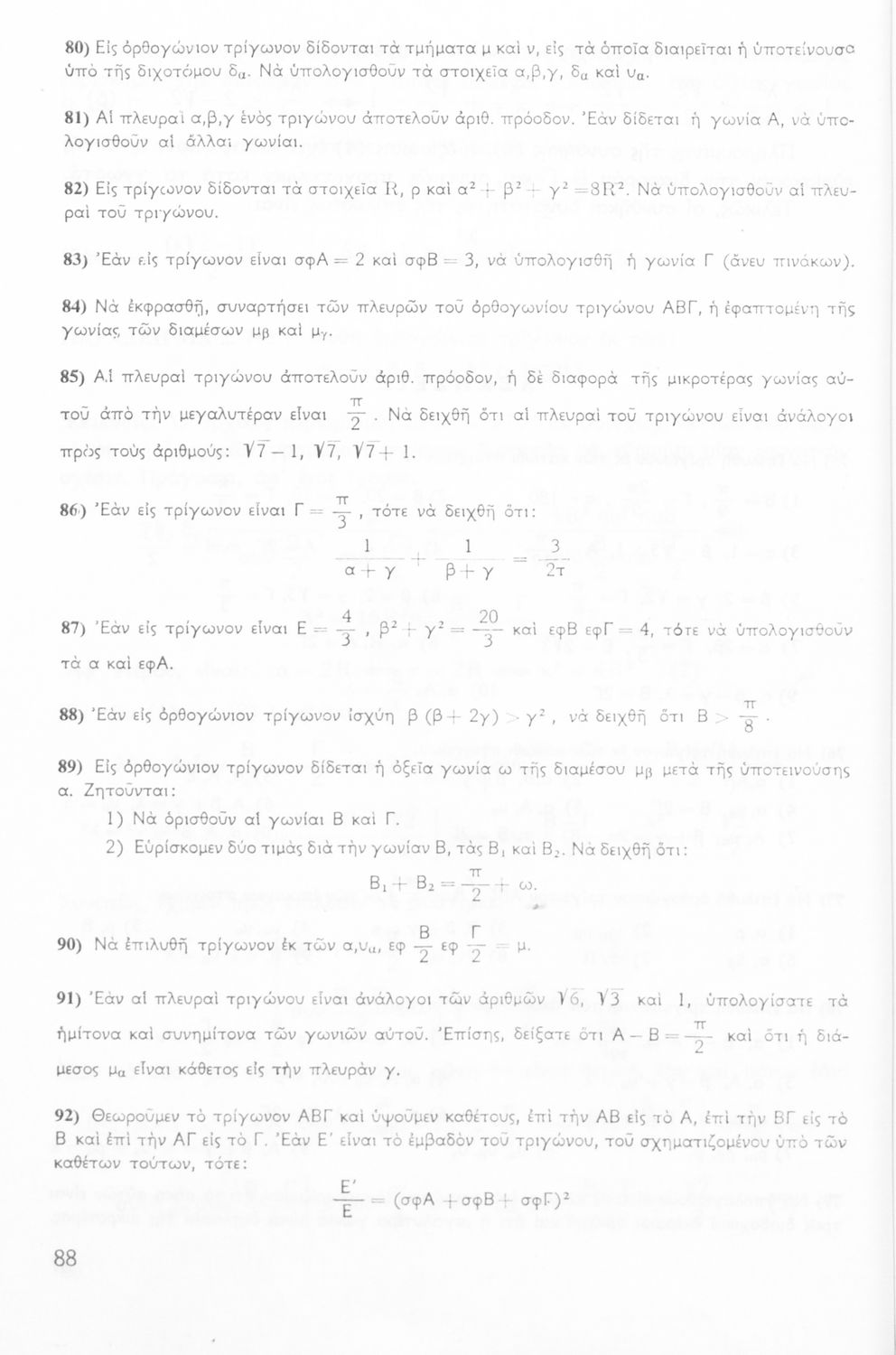 Σχολικό εγχειρίδιο της ΣΤ΄ Γυμνασίου για το μάθημα των Μαθηματικών. Περιέχει θεωρία, ασκήσεις λυμένες και παραδείγματα της Τριγωνομετρίας. Απευθυνόταν στους μαθητές της θετικής κατεύθυνσης.