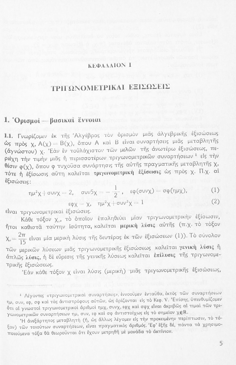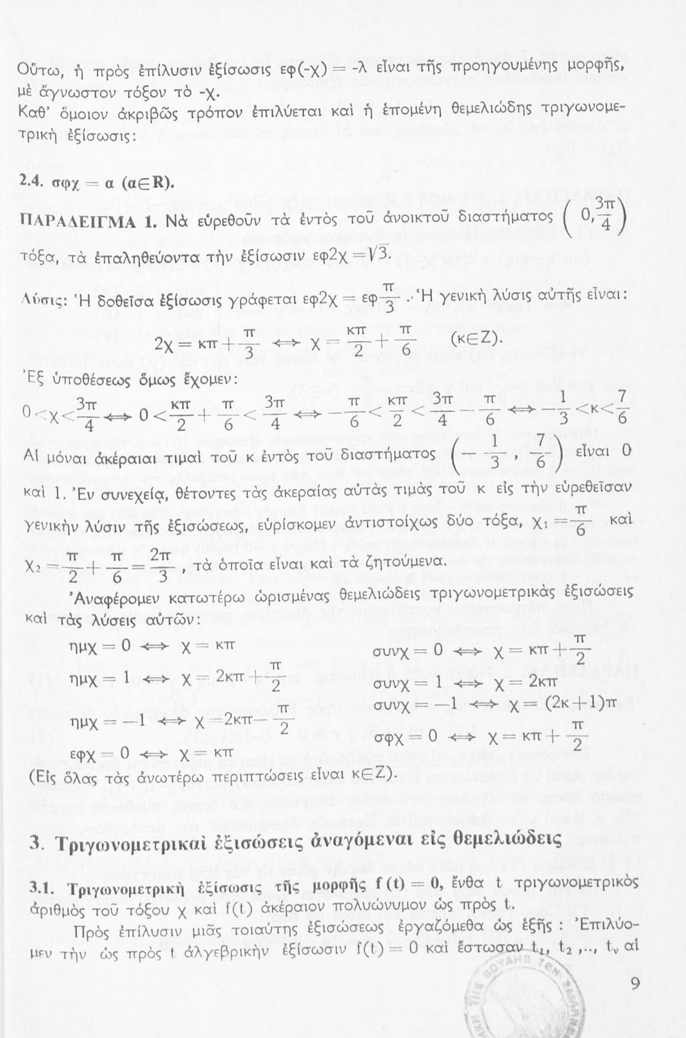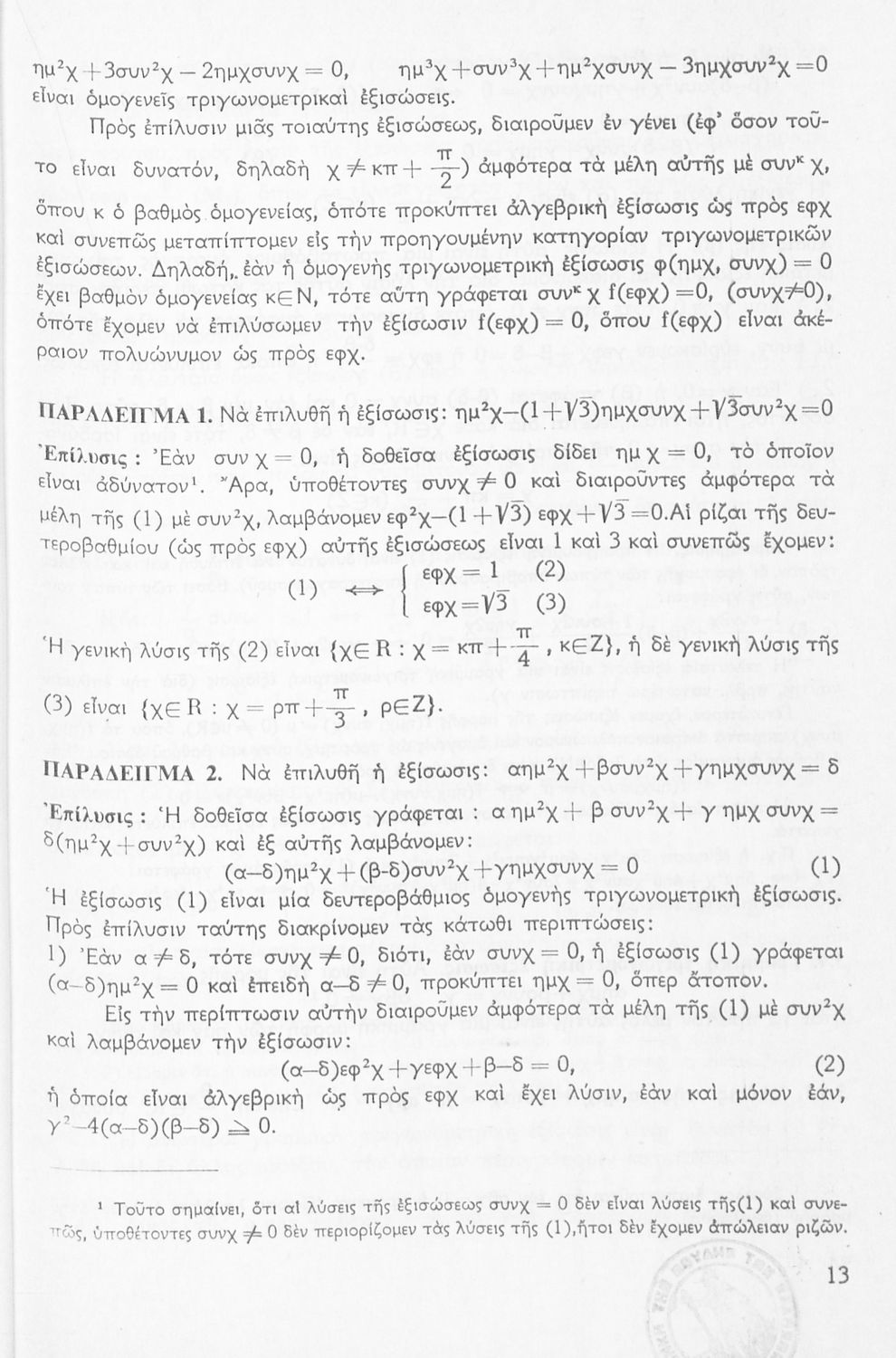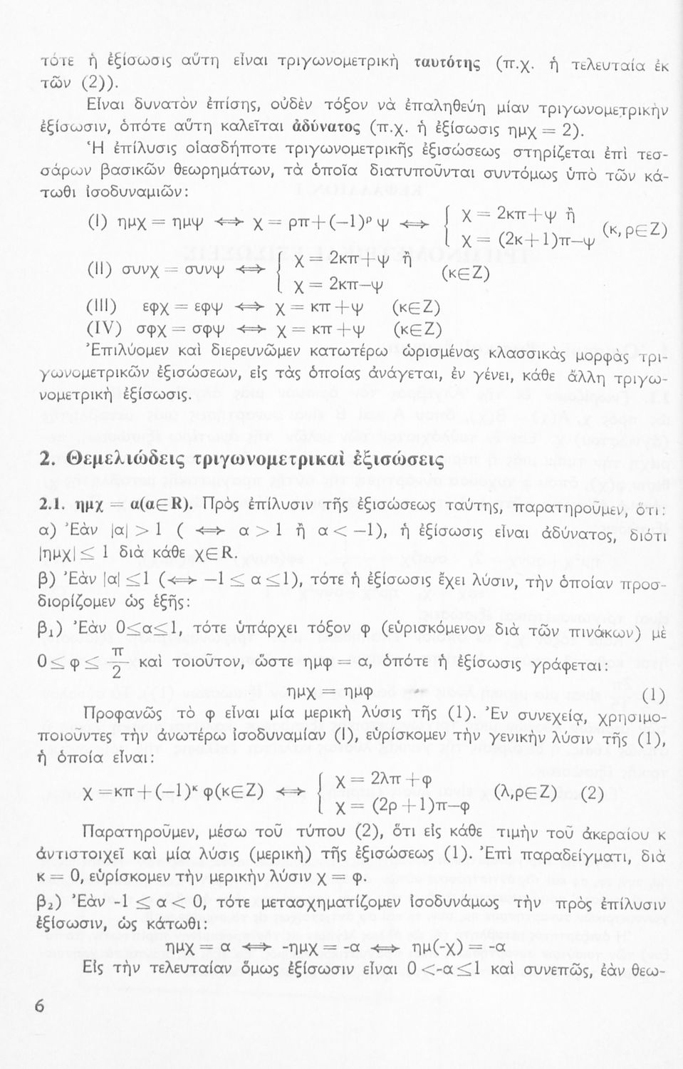 Σχολικό εγχειρίδιο της ΣΤ΄ Γυμνασίου για το μάθημα των Μαθηματικών. Περιέχει θεωρία, ασκήσεις λυμένες και παραδείγματα της Τριγωνομετρίας. Απευθυνόταν στους μαθητές της θετικής κατεύθυνσης.