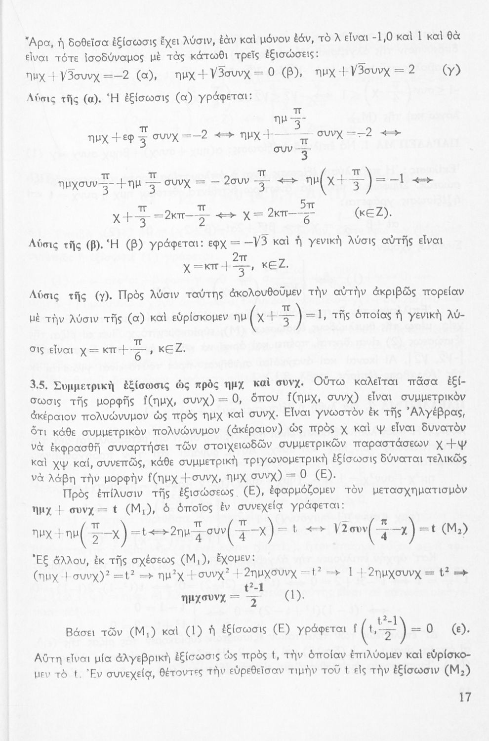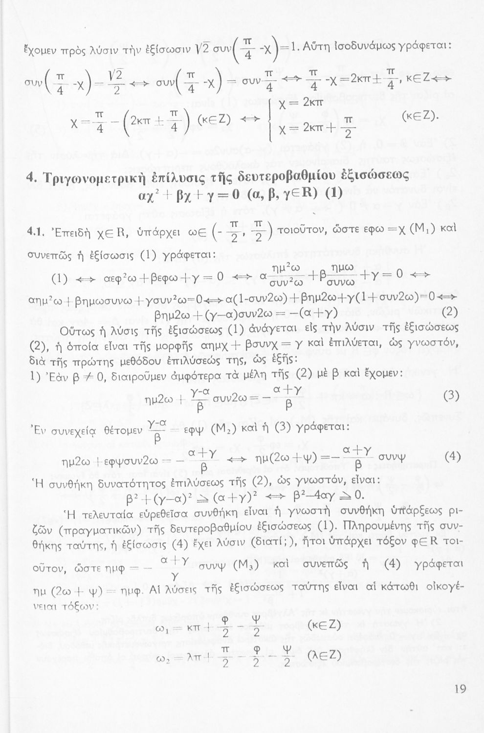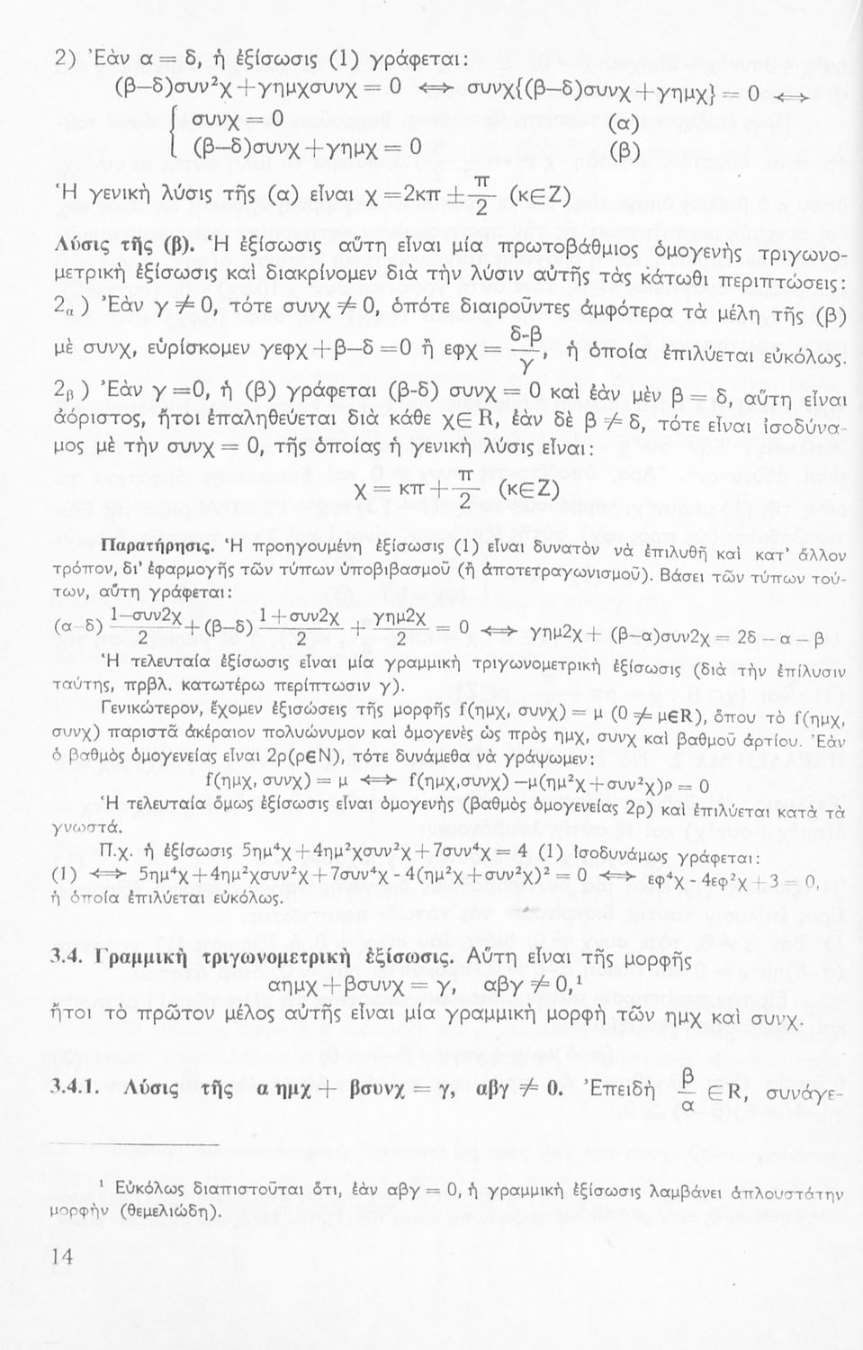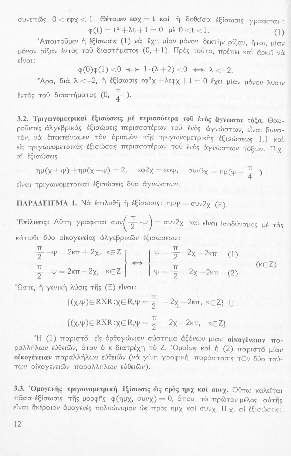 Σχολικό εγχειρίδιο της ΣΤ΄ Γυμνασίου για το μάθημα των Μαθηματικών. Περιέχει θεωρία, ασκήσεις λυμένες και παραδείγματα της Τριγωνομετρίας. Απευθυνόταν στους μαθητές της θετικής κατεύθυνσης.