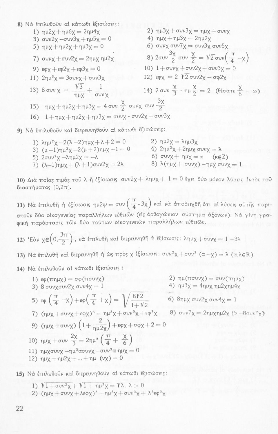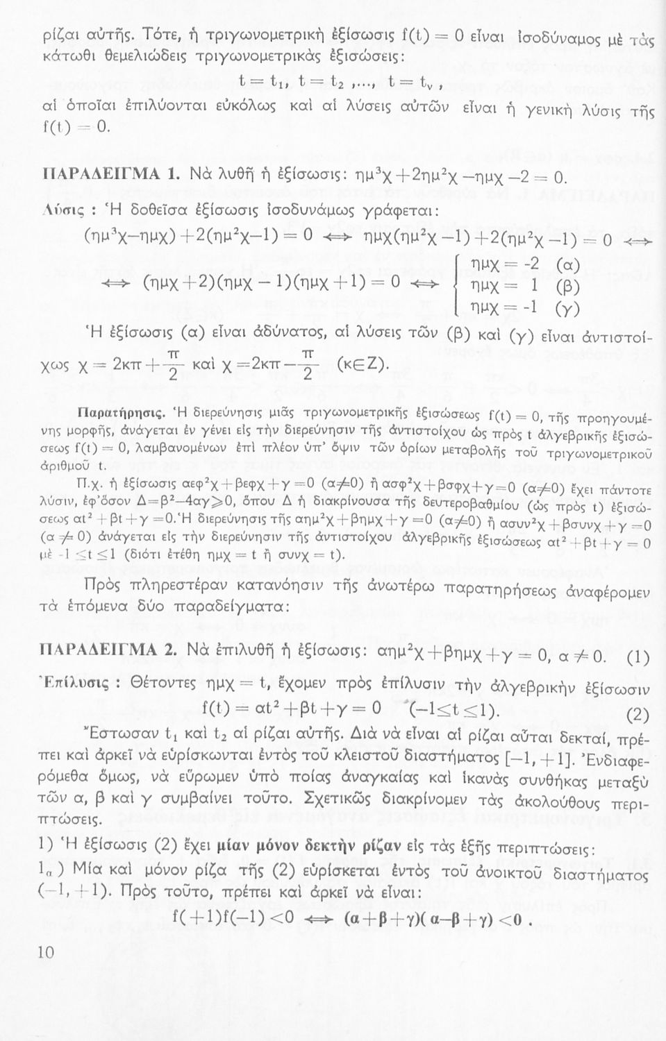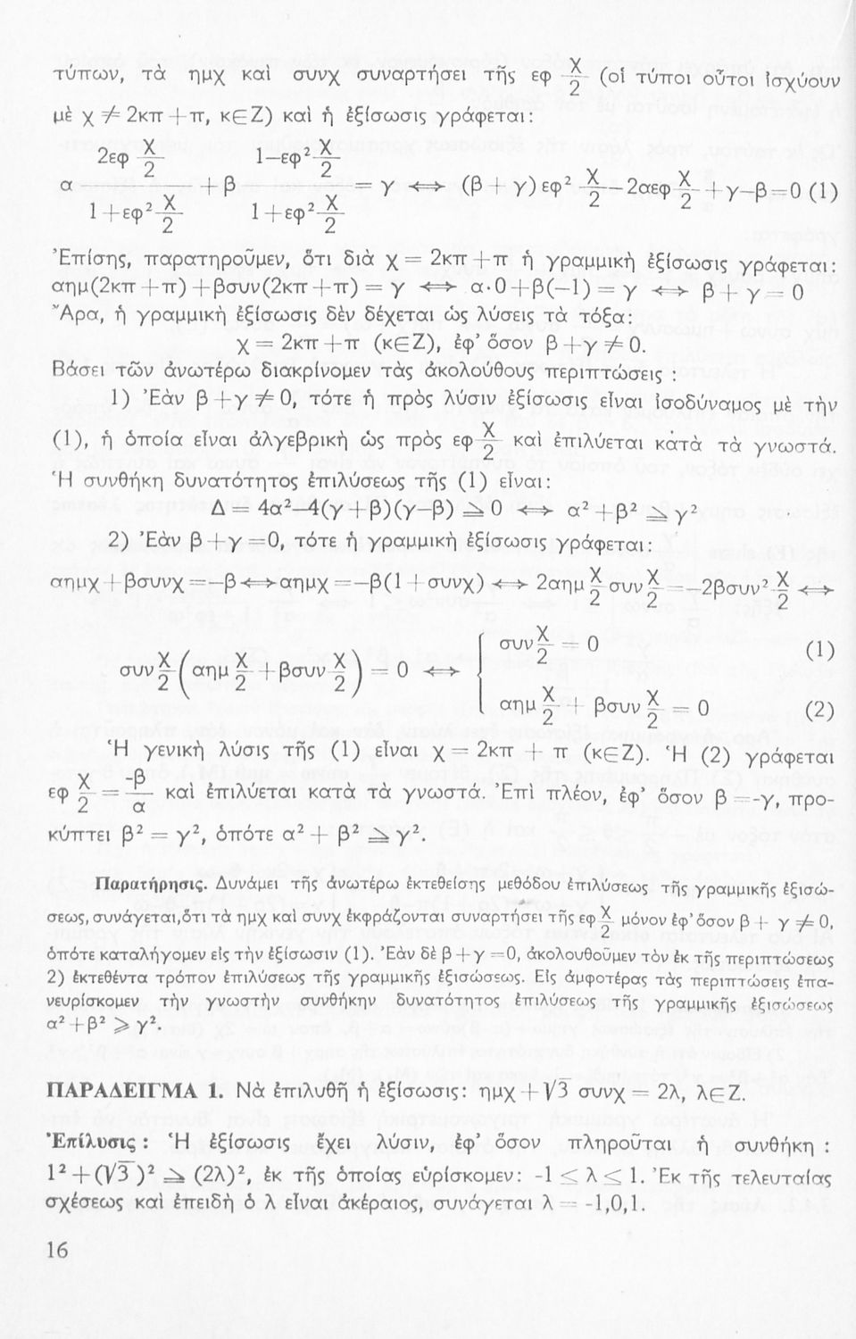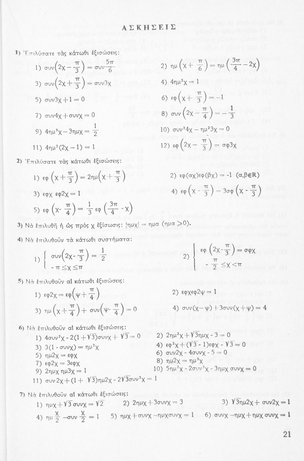 Σχολικό εγχειρίδιο της ΣΤ΄ Γυμνασίου για το μάθημα των Μαθηματικών. Περιέχει θεωρία, ασκήσεις λυμένες και παραδείγματα της Τριγωνομετρίας. Απευθυνόταν στους μαθητές της θετικής κατεύθυνσης.