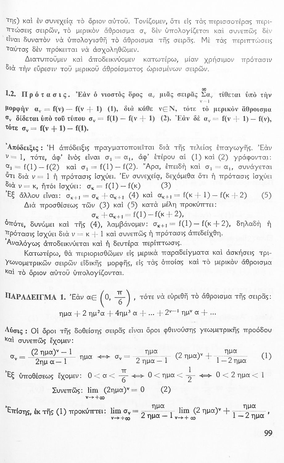 Σχολικό εγχειρίδιο Μαθηματικών ΣΤ΄ Γυμνασίου που είναι χωρισμένο σε θεωρήματα, παραδείγματα και ασκήσεις και περιλαμβάνει στοιχεία Ανώτερης Άλγεβρας και Μαθηματικής Ανάλυσης.