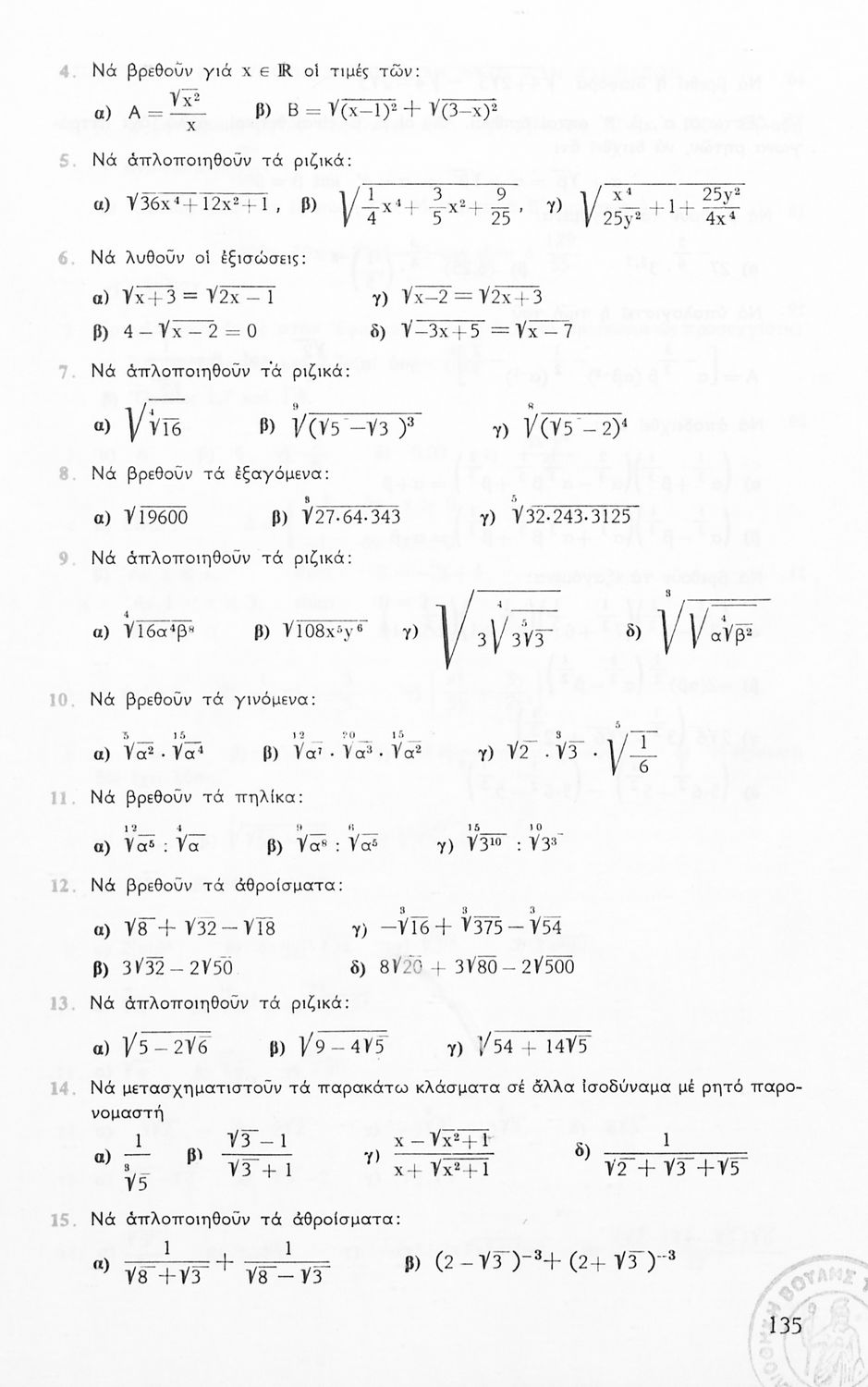 Κωδικός αναγνώρισης: 03-20557358 Τίτλος: Μαθηματικά A' Λυκείου, άλγεβρα Συγγραφέας: Ν. Βαρουχάκης, Λ. Αδαμόπουλος, Ν. Αλεξανδρής, Δ.Α. Παπακωνσταντίνου, Α. Παπαμικρούλης Μέγεθος και υπόστρωμα: Σχολικό εγχειρίδιο, μαλακό εξώφυλλο, 318 σελίδες. |