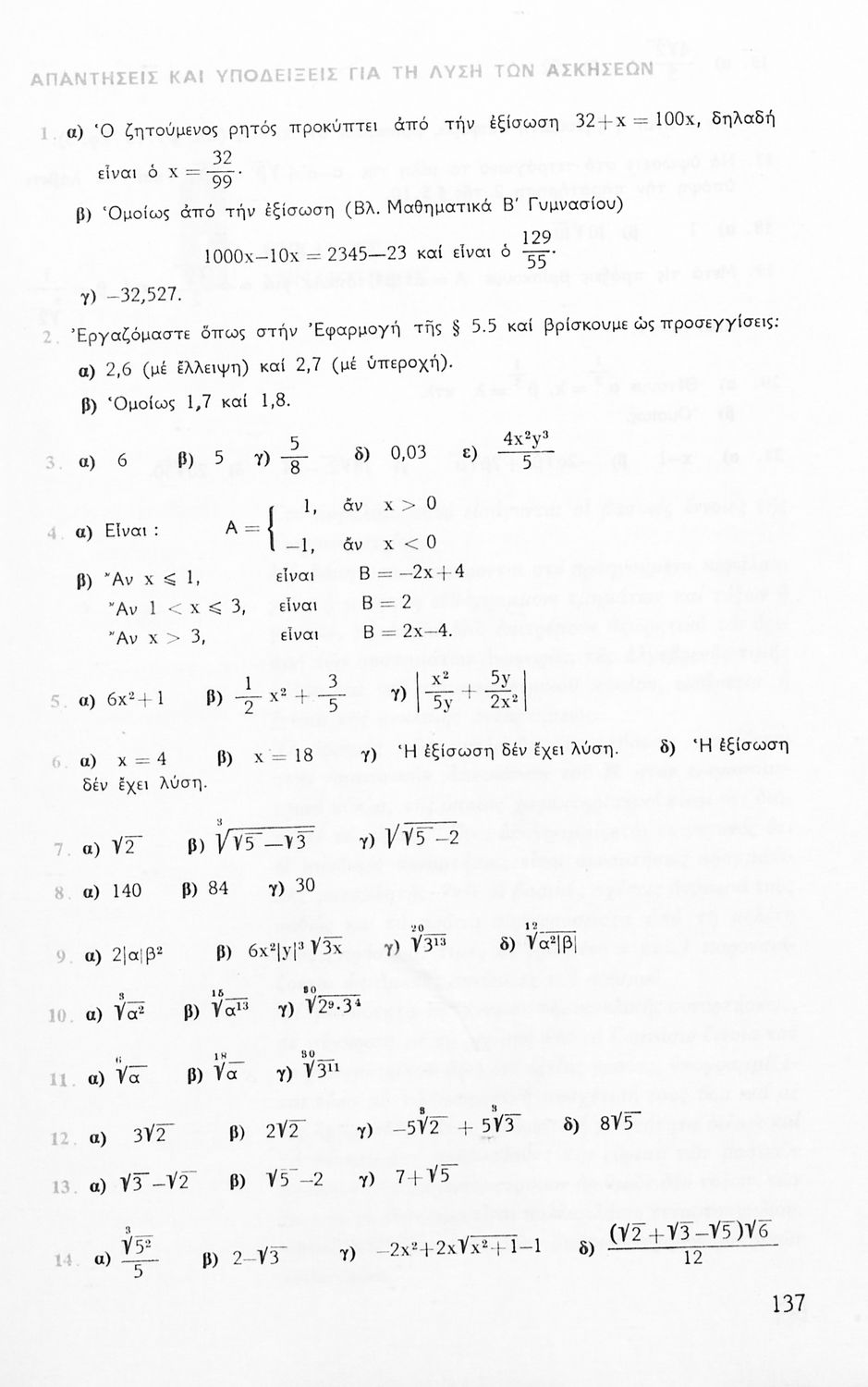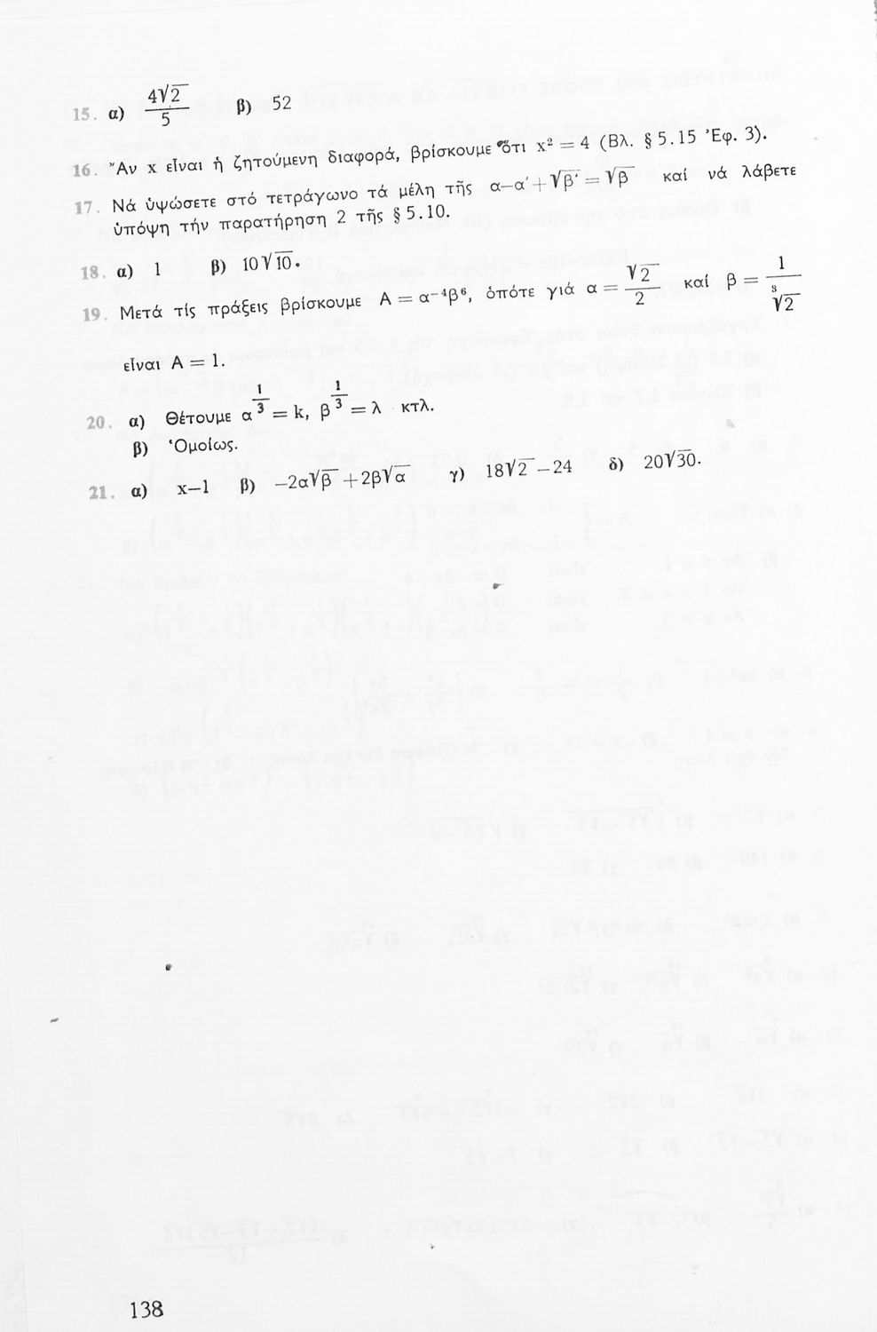 Σχολικό εγχειρίδιο Άλγεβρας Α΄ Λυκείου που είναι χωρισμένο σε αξιώματα, πορίσματα, παραδείγματα και ασκήσεις και εστιάζει στις συναρτήσεις, τις εξισώσεις και τις αριθμητικές πράξεις.. Περιέχει παράρτημα με τις λύσεις των ασκήσεων.