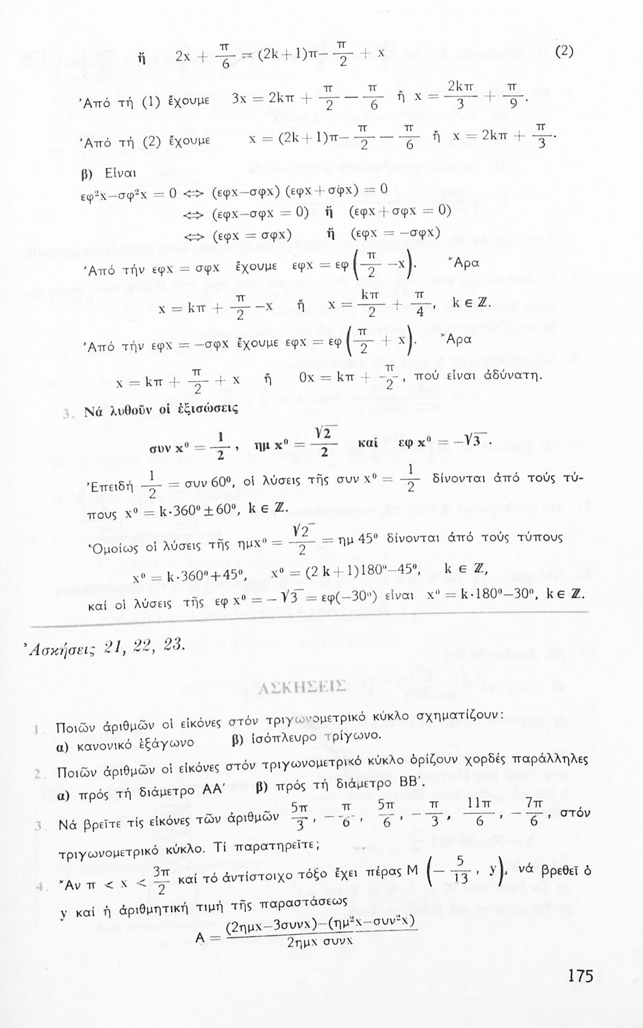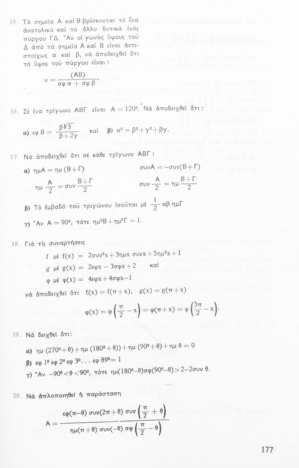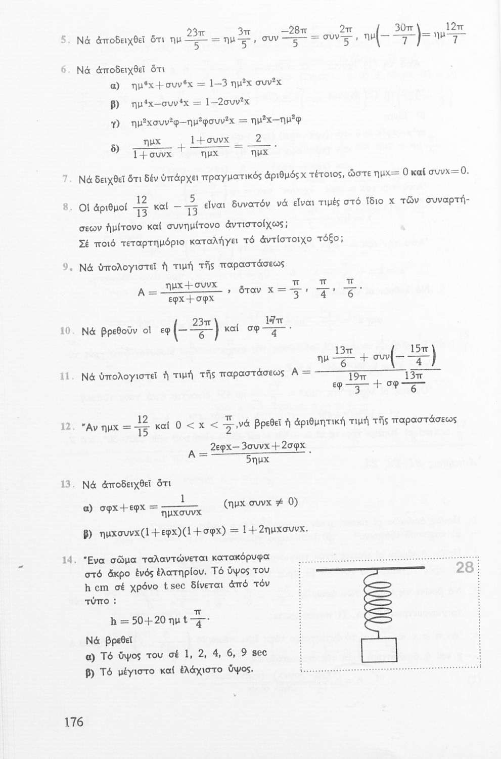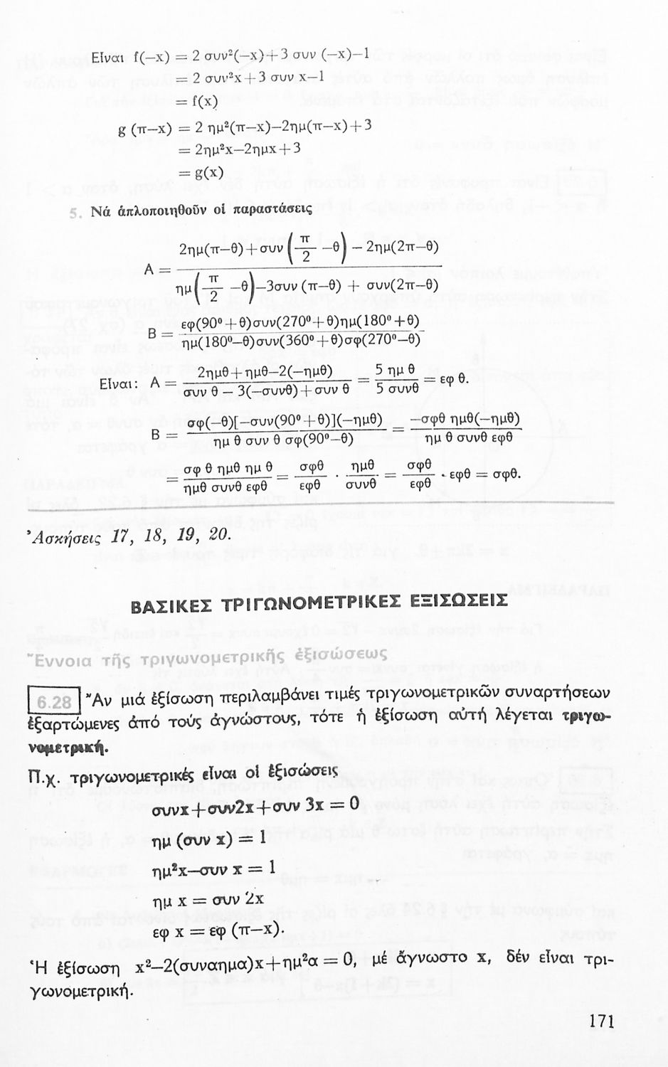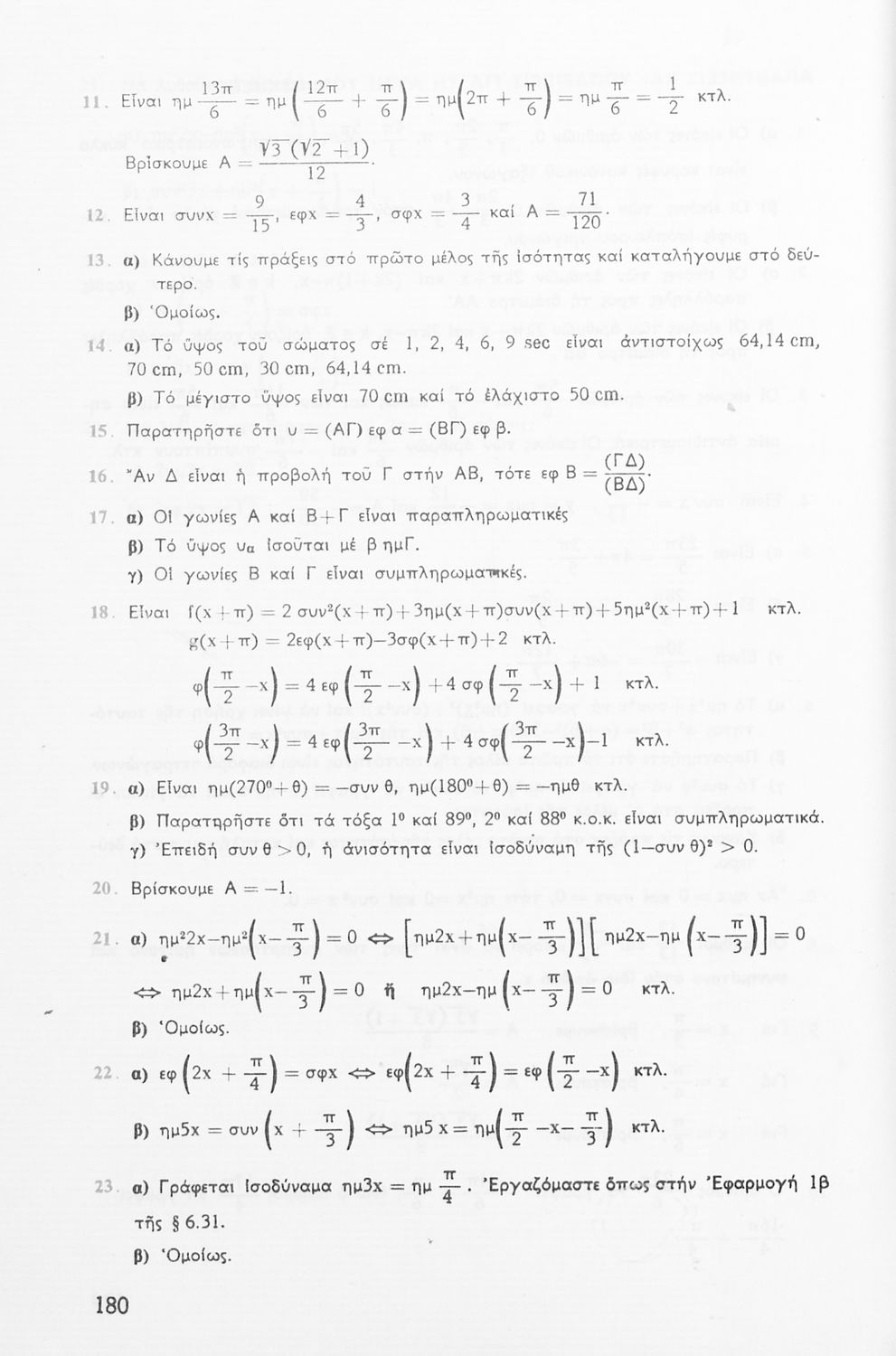 Σχολικό εγχειρίδιο Μαθηματικών Β΄ Λυκείου που περιλαμβάνει Άλγεβρα και Τριγωνομετρία και είναι χωρισμένο σε θεωρήματα, παρατηρήσεις, παραδείγματα και ασκήσεις.