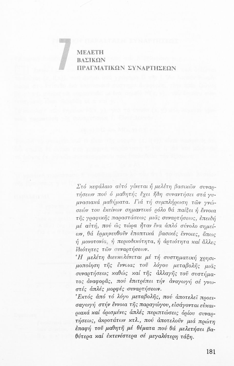Σχολικό εγχειρίδιο Άλγεβρας Α΄ Λυκείου που είναι χωρισμένο σε αξιώματα, πορίσματα, παραδείγματα και ασκήσεις και εστιάζει στις συναρτήσεις, τις εξισώσεις και τις αριθμητικές πράξεις.. Περιέχει παράρτημα με τις λύσεις των ασκήσεων.