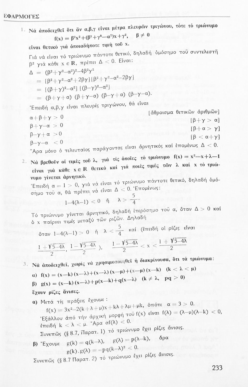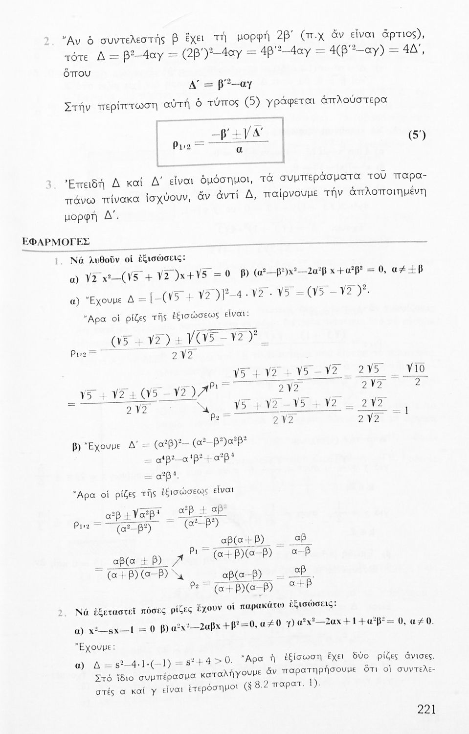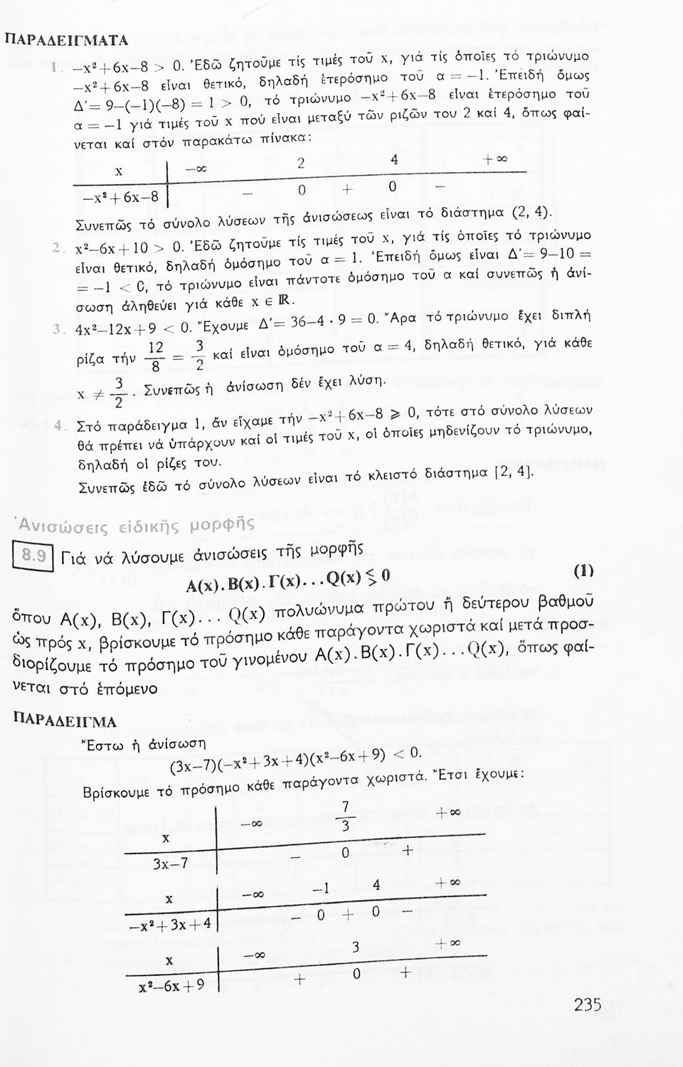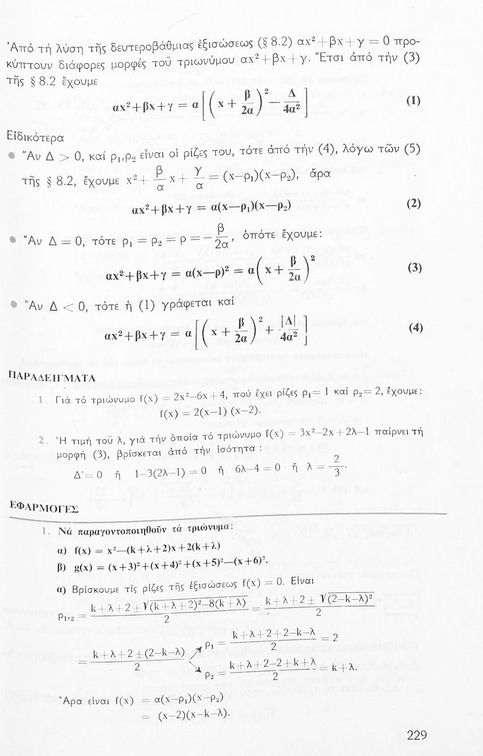 Σχολικό εγχειρίδιο Άλγεβρας Α΄ Λυκείου που είναι χωρισμένο σε αξιώματα, πορίσματα, παραδείγματα και ασκήσεις και εστιάζει στις συναρτήσεις, τις εξισώσεις και τις αριθμητικές πράξεις.. Περιέχει παράρτημα με τις λύσεις των ασκήσεων.