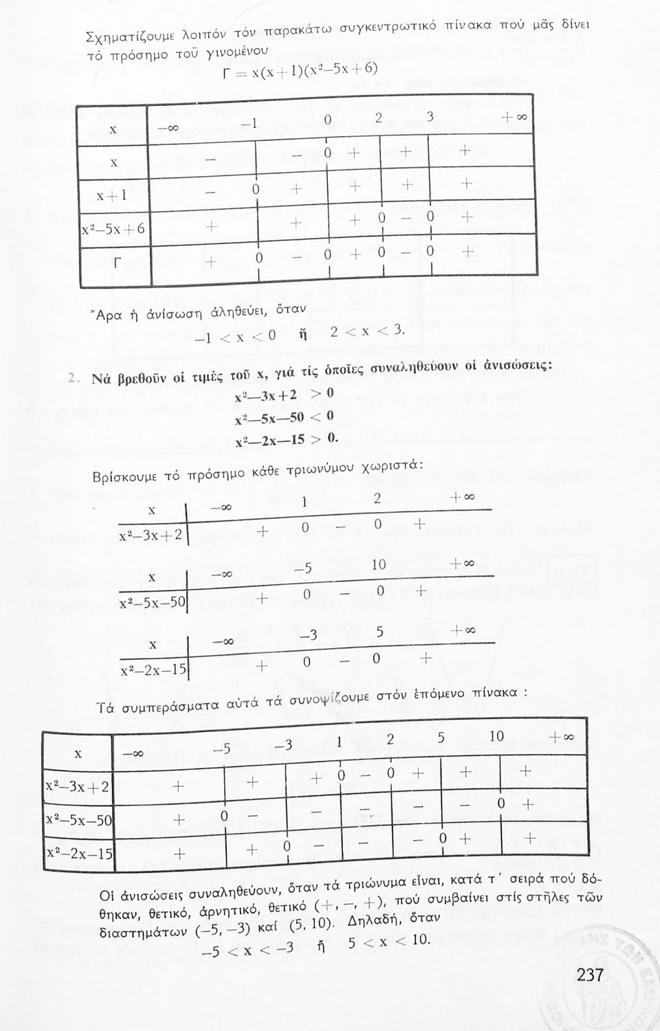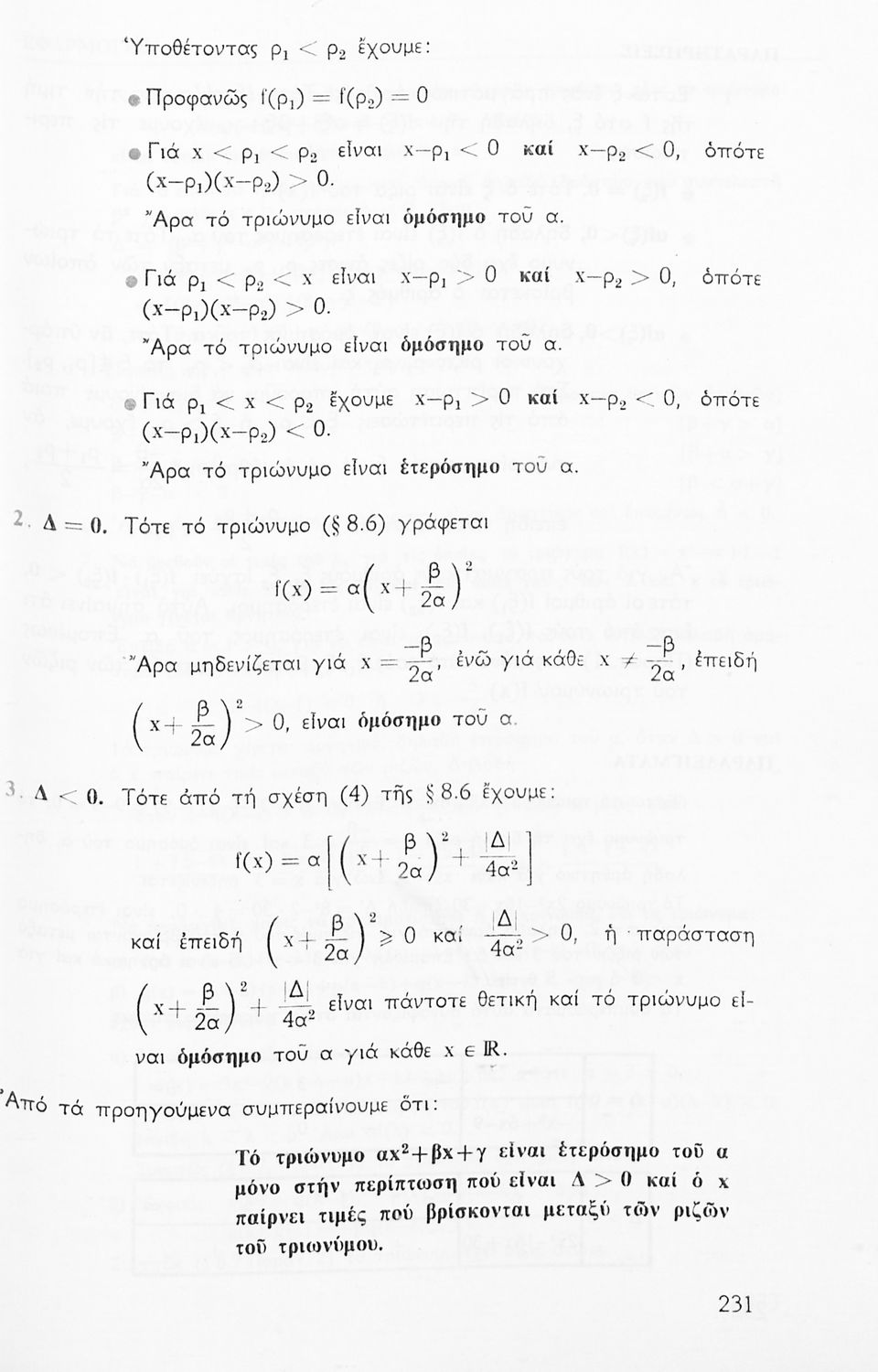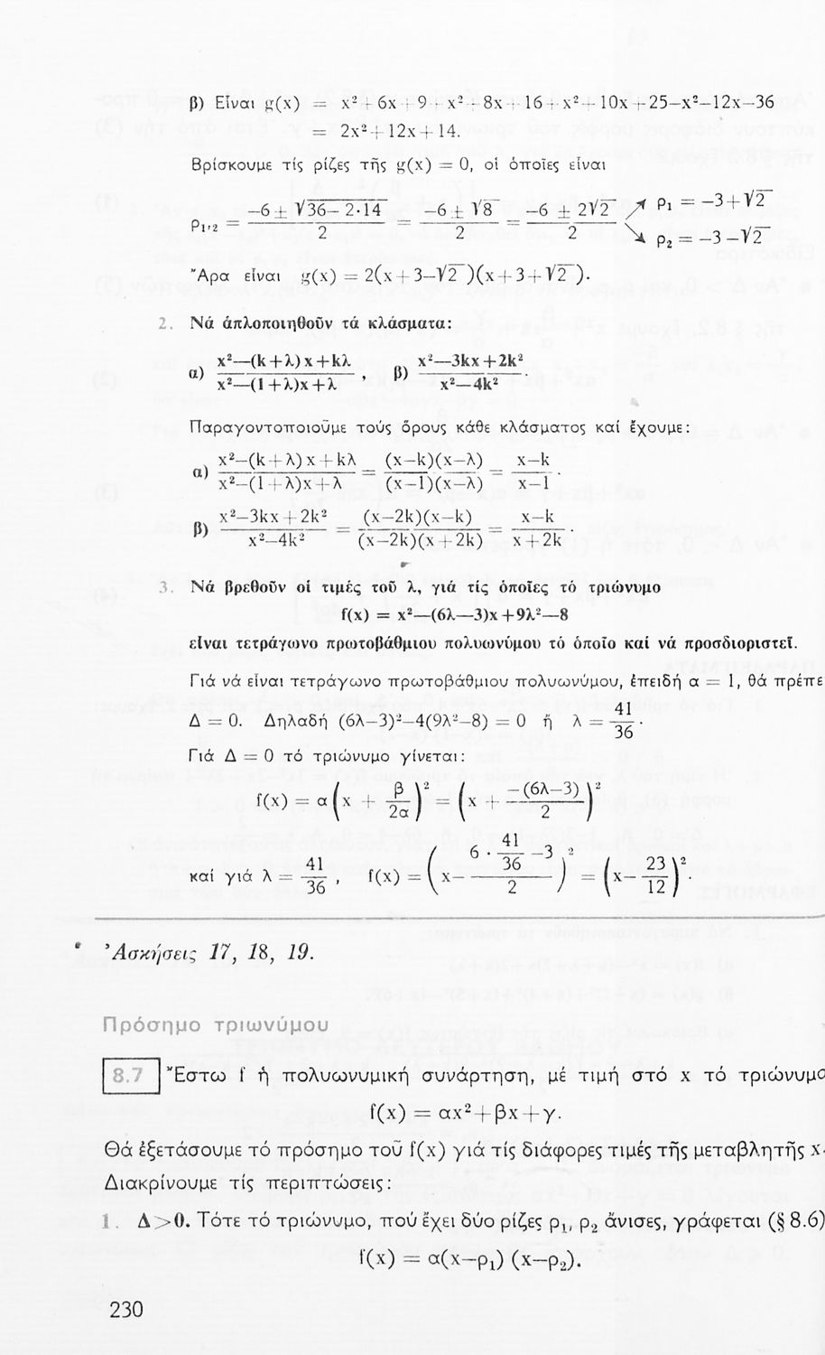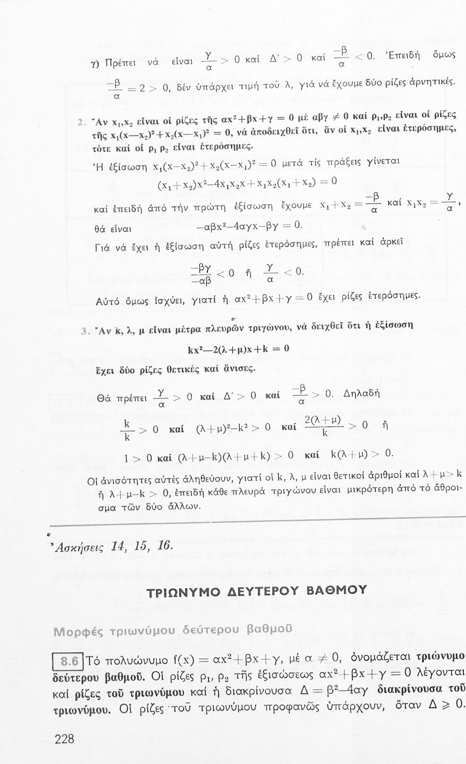 Σχολικό εγχειρίδιο Άλγεβρας Α΄ Λυκείου που είναι χωρισμένο σε αξιώματα, πορίσματα, παραδείγματα και ασκήσεις και εστιάζει στις συναρτήσεις, τις εξισώσεις και τις αριθμητικές πράξεις.. Περιέχει παράρτημα με τις λύσεις των ασκήσεων.