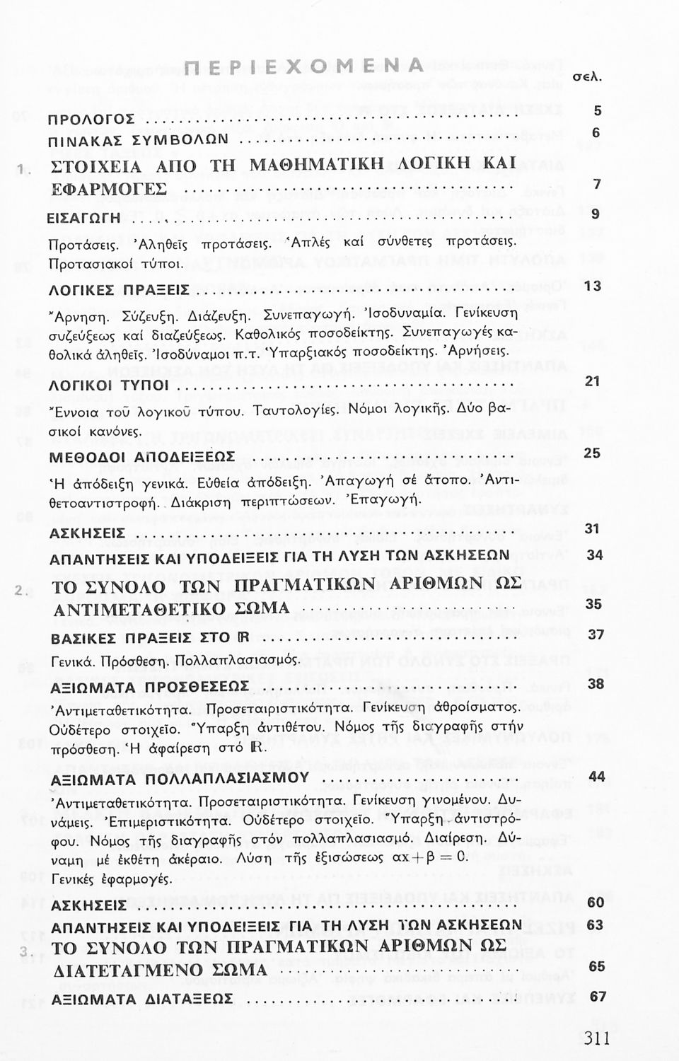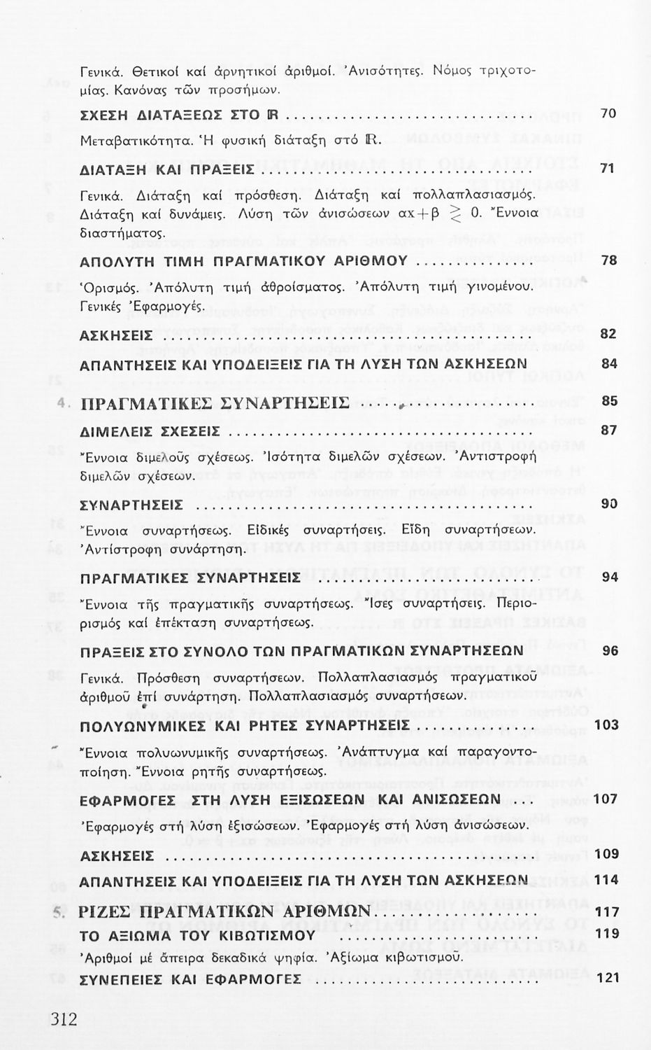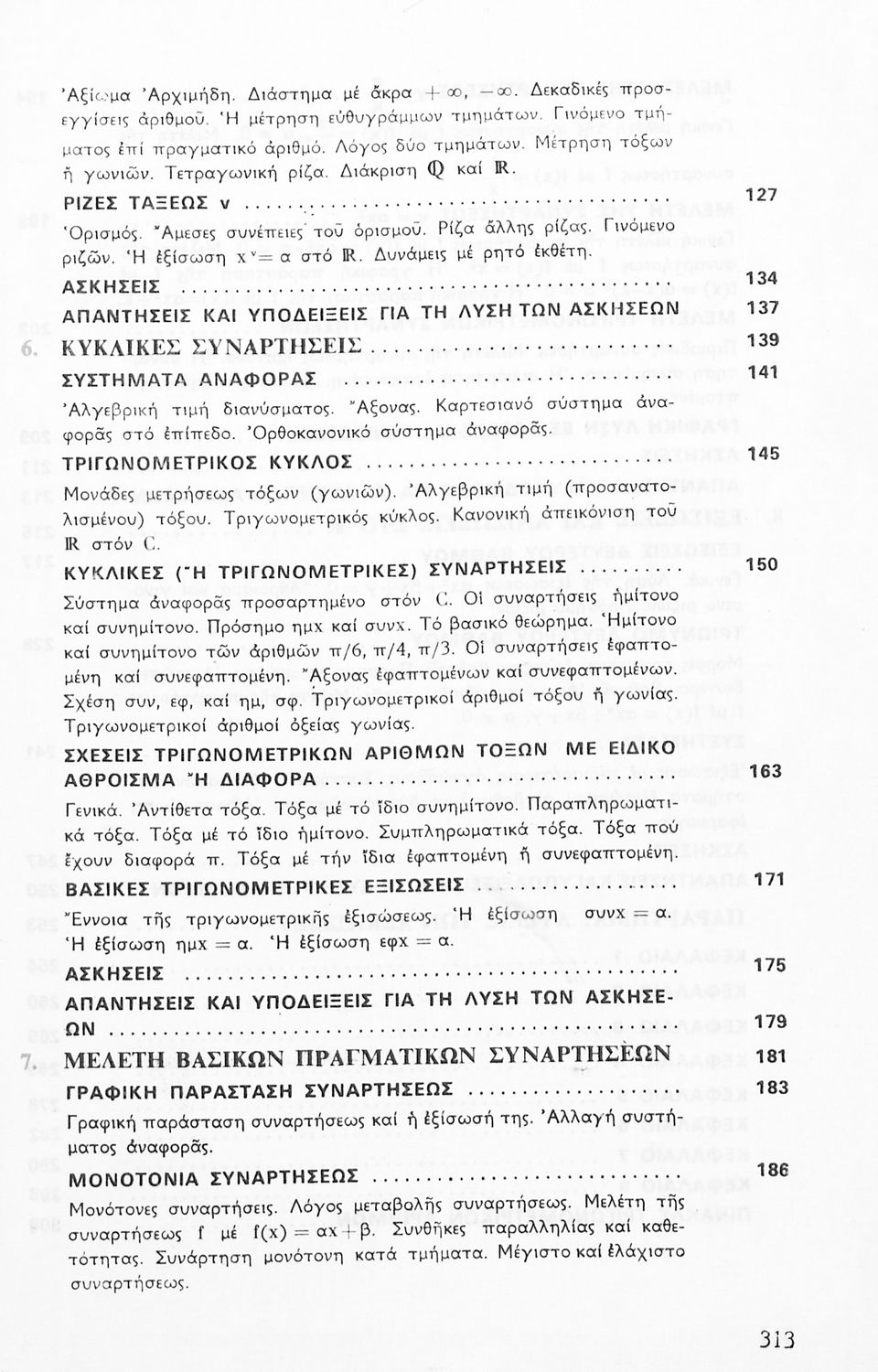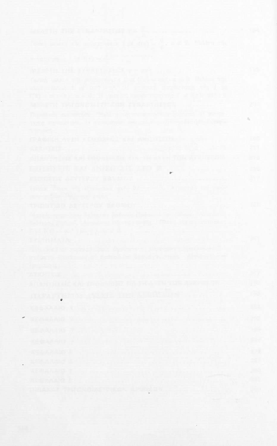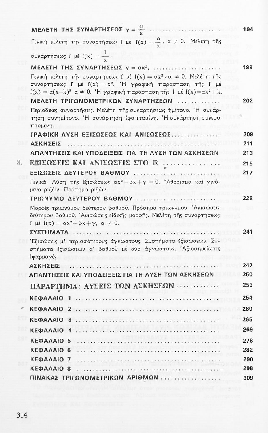 Σχολικό εγχειρίδιο Άλγεβρας Α΄ Λυκείου που είναι χωρισμένο σε αξιώματα, πορίσματα, παραδείγματα και ασκήσεις και εστιάζει στις συναρτήσεις, τις εξισώσεις και τις αριθμητικές πράξεις.. Περιέχει παράρτημα με τις λύσεις των ασκήσεων.