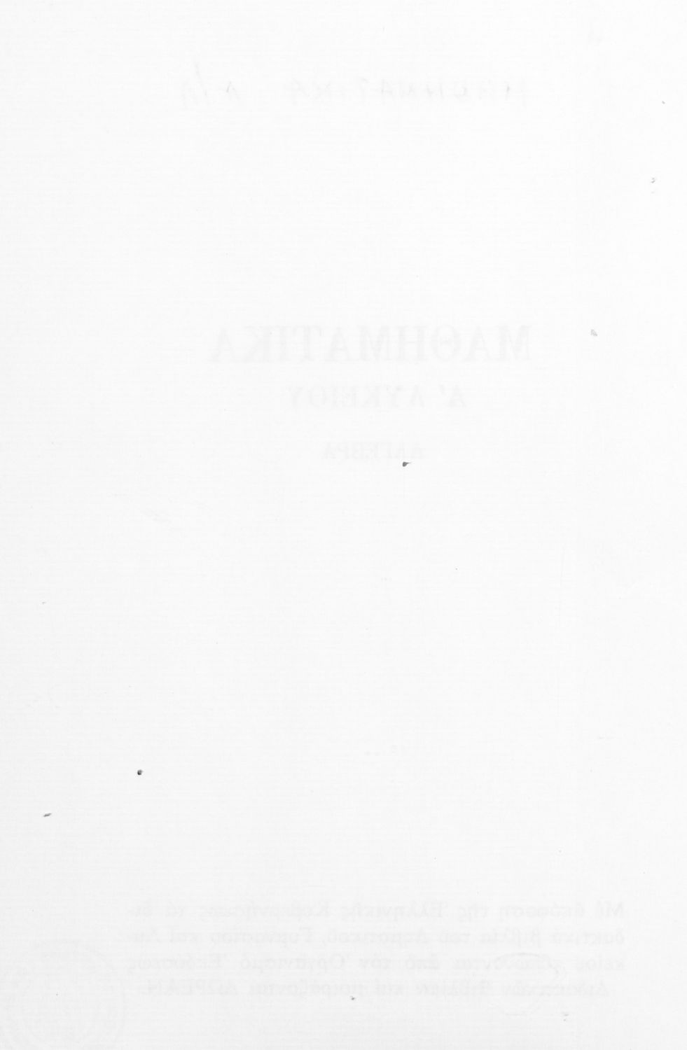 Κωδικός αναγνώρισης: 03-20557358 Τίτλος: Μαθηματικά A' Λυκείου, άλγεβρα Συγγραφέας: Ν. Βαρουχάκης, Λ. Αδαμόπουλος, Ν. Αλεξανδρής, Δ.Α. Παπακωνσταντίνου, Α. Παπαμικρούλης Μέγεθος και υπόστρωμα: Σχολικό εγχειρίδιο, μαλακό εξώφυλλο, 318 σελίδες. |