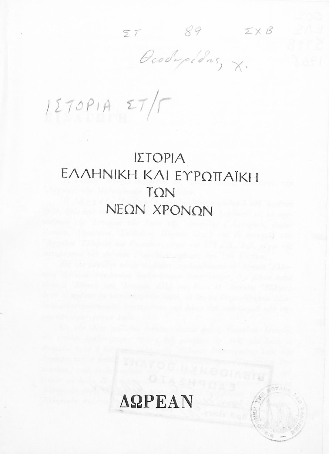 245 0# _aΙστορία Ελληνική και Ευρωπαϊκή των Νέων Χρόνων