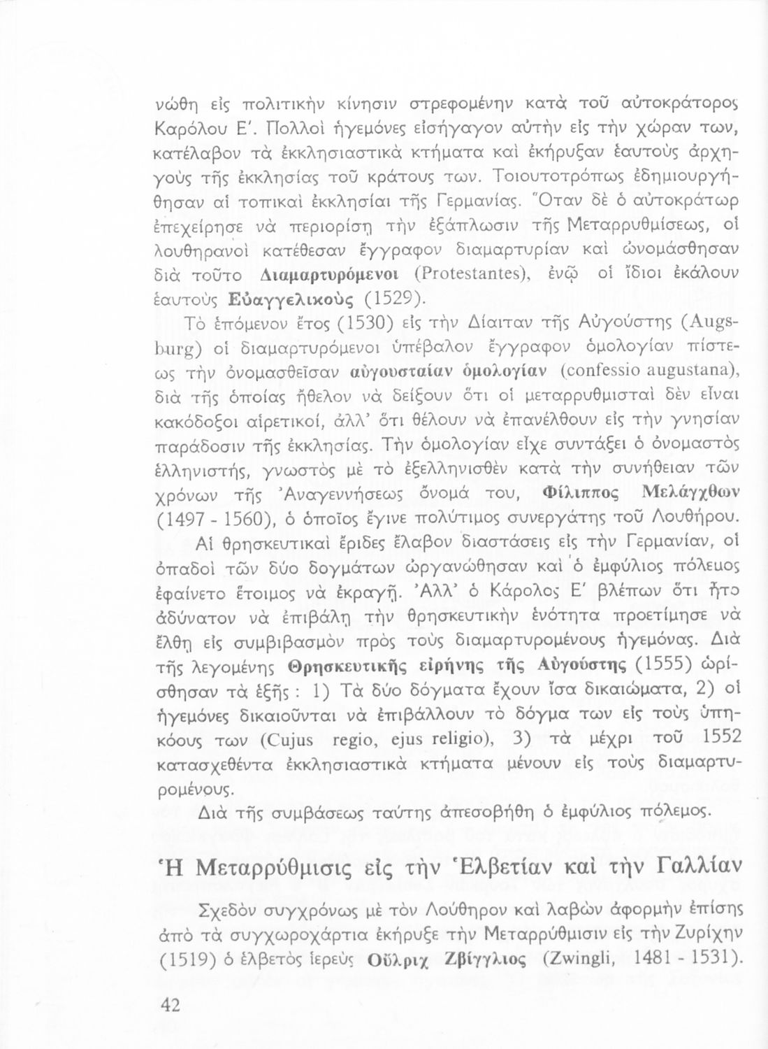 Σχολικό εγχειρίδιο Ιστορίας ΣΤ΄ Γυμνασίου που αποτελεί μια συνοπτική επισκόπηση της ιστορία της Ευρώπης και καλύπτει το διάστημα από την Συνθήκη της Βεστφαλίας ως τον Α΄ Παγκόσμιο Πόλεμο. Φέρει το σύμβολο της δικτατορίας.
