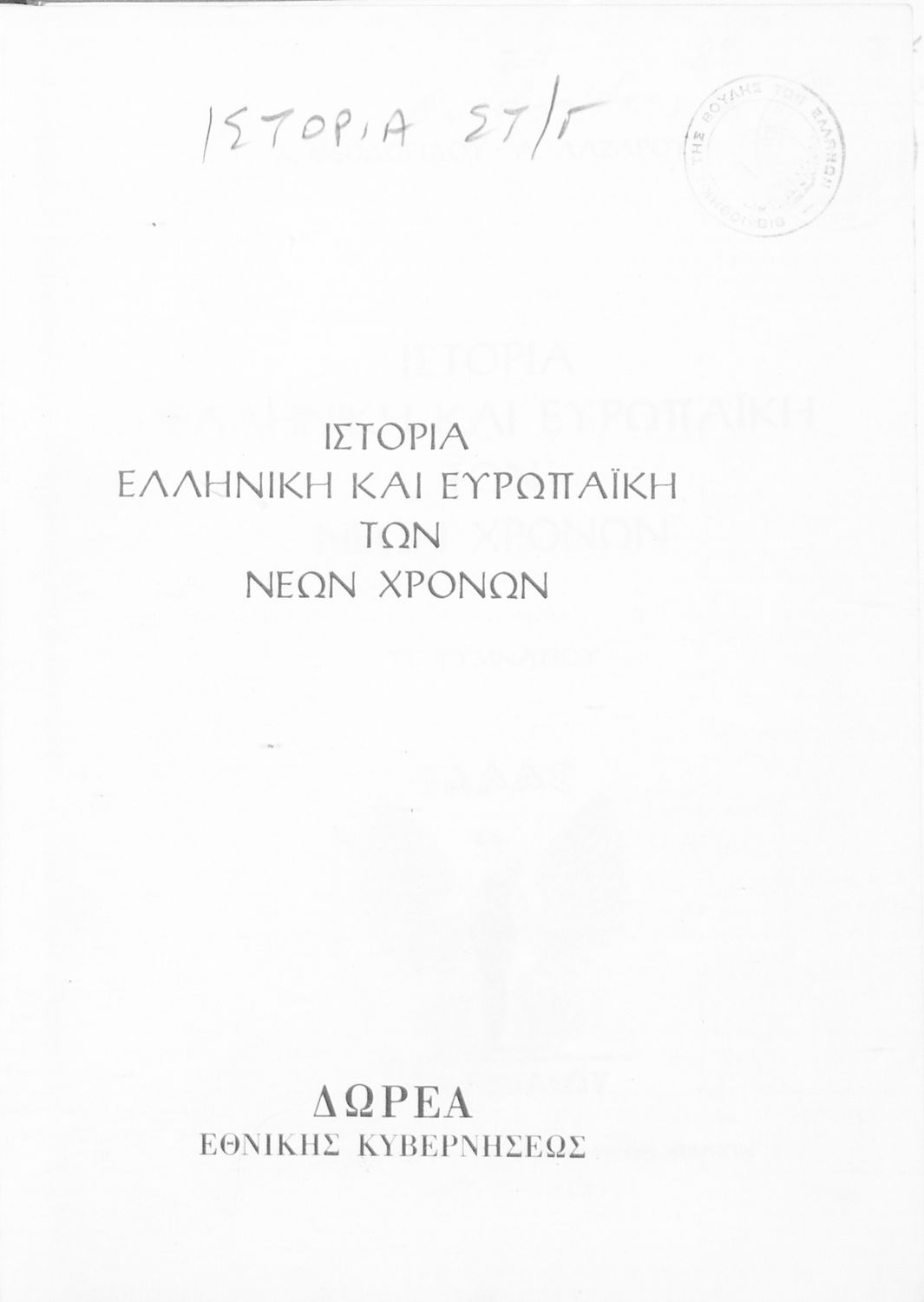 Τίτλος: Ιστορία Ελληνική και Ευρωπαϊκή των Νέων Χρόνων, ΣΤ΄ Γυμνασίου