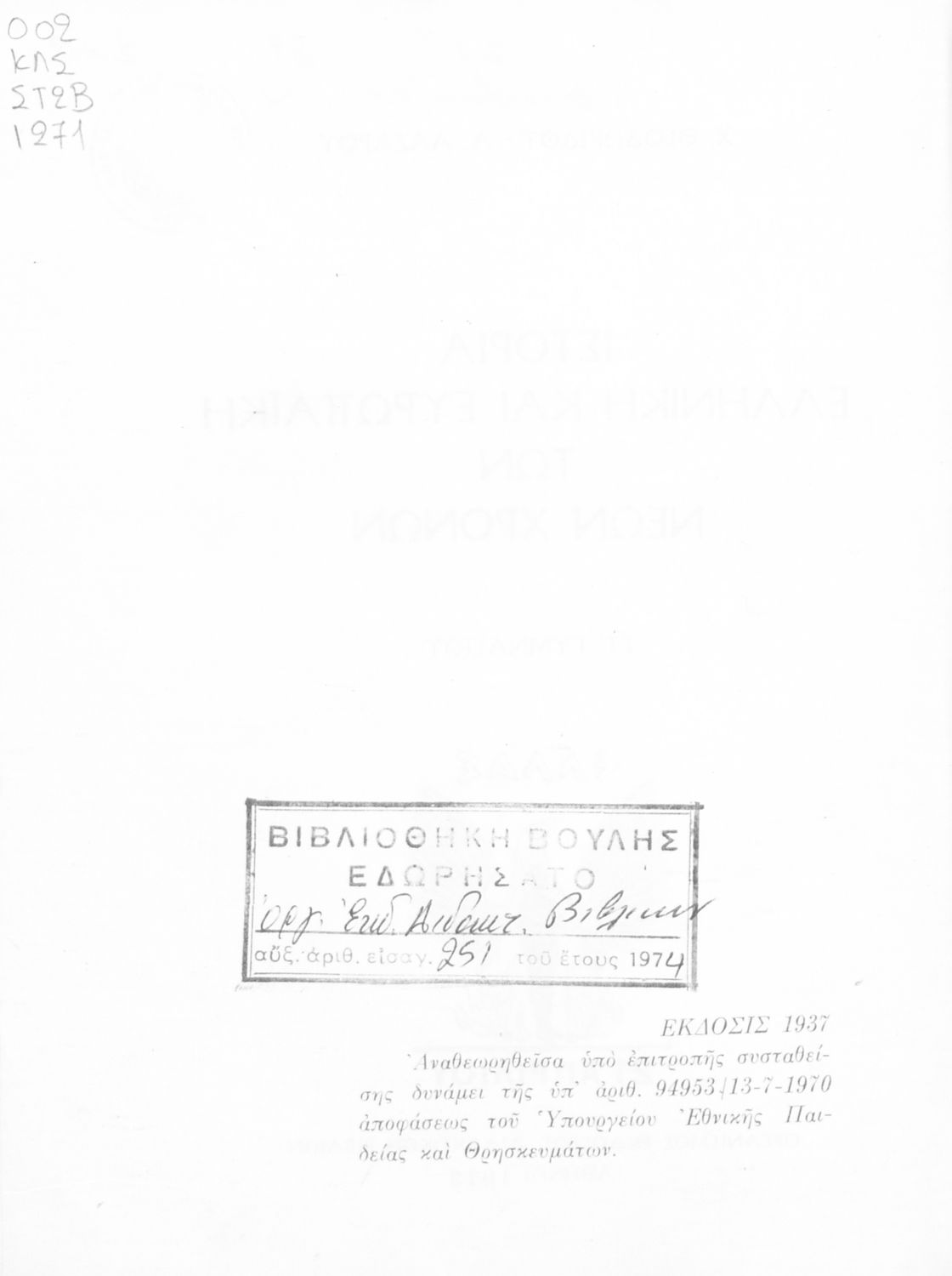 Εντοπισμός πρωτοτύπου: Βιβλιοθήκη της Βουλής των Ελλήνων