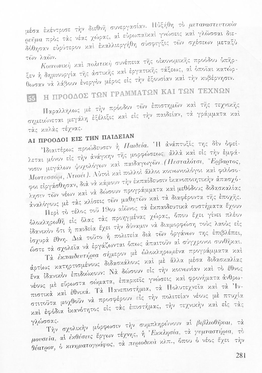 Βαθμίδα εκπαίδευσης: Δευτεροβάθμια Τάξη: Γ' Γυμνασίου Μάθημα: Ιστορία Γλώσσα: Απλή καθαρεύουσα Παρουσίαση περιεχομένου: Σχολικό εγχειρίδιο Ιστορίας Γ΄ Γυμνασίου που καλύπτει την περίοδο της Αναγέννησης και του Διαφωτισμού στην Ευρώπη και την προετοιμασία της Ελληνικής Επανάστασης. Συνοπτικά αναφέρεται στο διάστημα από τη βασίλεια του Όθωνα ως τους δύο Παγκόσμιους Πολέμους και τον Ψυχρό Πόλεμο. Παρουσιάζει και την πνευματική κίνηση κατά τον 19ο και 20ο αιώνα. |