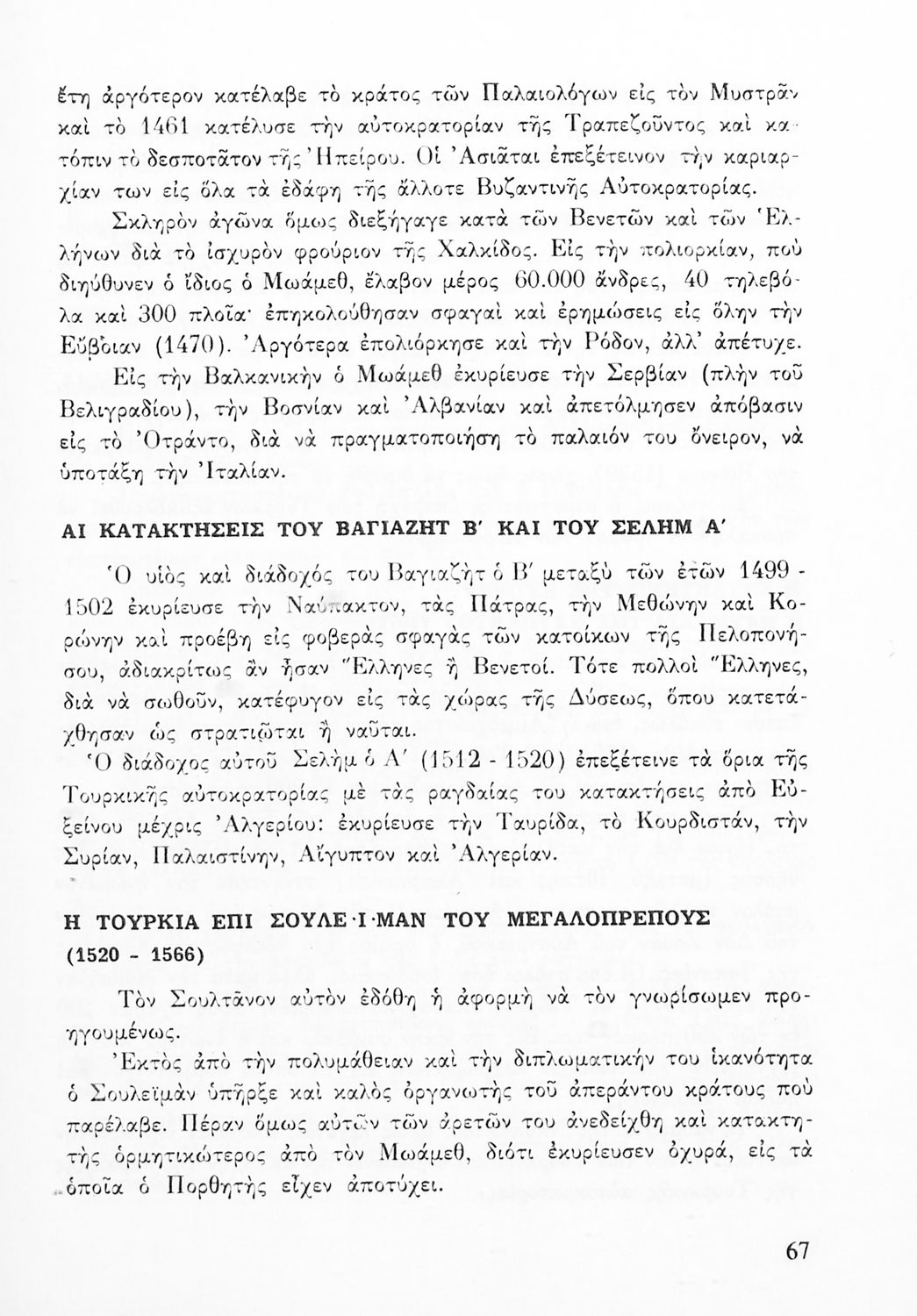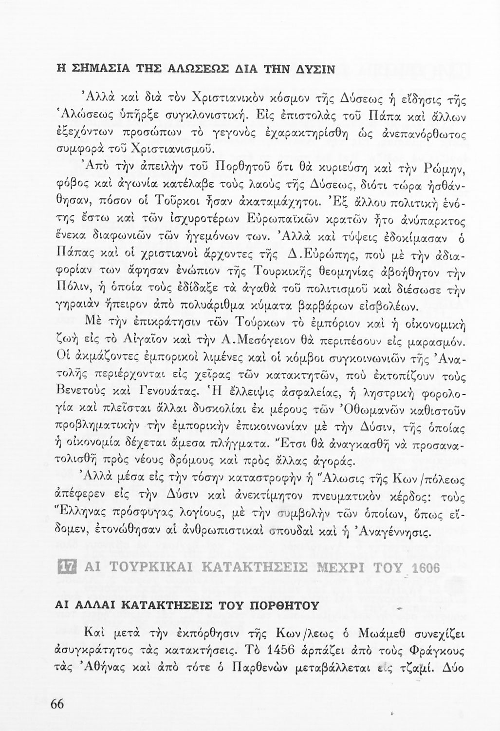 Βαθμίδα εκπαίδευσης: Δευτεροβάθμια Τάξη: Γ' Γυμνασίου Μάθημα: Ιστορία Γλώσσα: Απλή καθαρεύουσα Παρουσίαση περιεχομένου: Σχολικό εγχειρίδιο Ιστορίας Γ΄ Γυμνασίου που καλύπτει την περίοδο της Αναγέννησης και του Διαφωτισμού στην Ευρώπη και την προετοιμασία της Ελληνικής Επανάστασης. Συνοπτικά αναφέρεται στο διάστημα από τη βασίλεια του Όθωνα ως τους δύο Παγκόσμιους Πολέμους και τον Ψυχρό Πόλεμο. Παρουσιάζει και την πνευματική κίνηση κατά τον 19ο και 20ο αιώνα. |