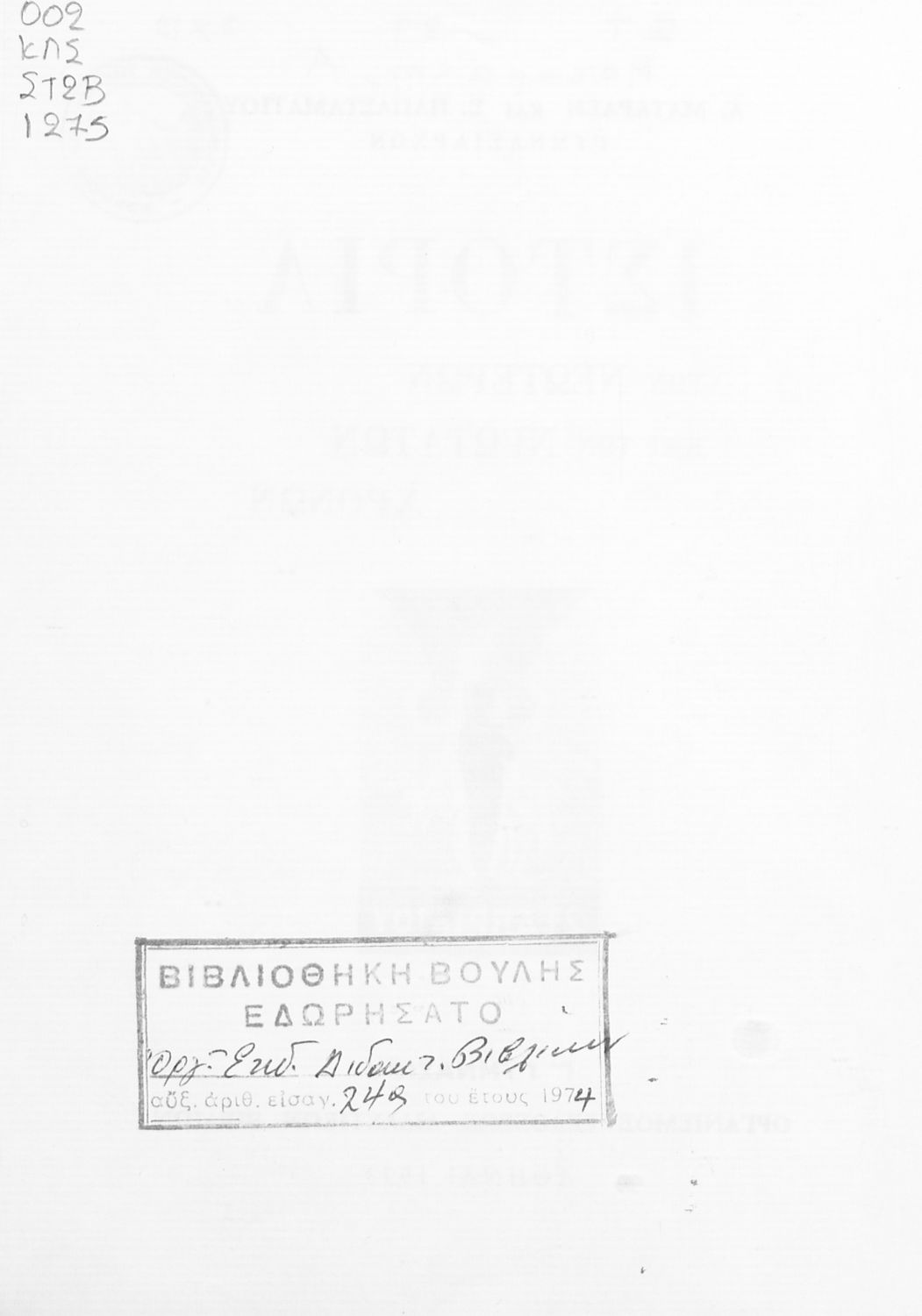Εντοπισμός πρωτοτύπου: Βιβλιοθήκη της Βουλής των Ελλήνων