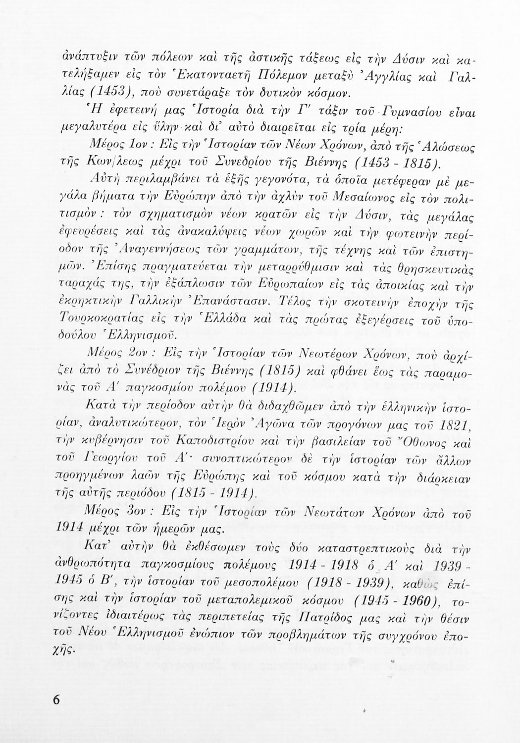 Σχολικό εγχειρίδιο Ιστορίας Γ΄ Γυμνασίου που καλύπτει την περίοδο της Αναγέννησης και του Διαφωτισμού στην Ευρώπη και την προετοιμασία της Ελληνικής Επανάστασης. Συνοπτικά αναφέρεται στο διάστημα από τη βασίλεια του Όθωνα ως τους δύο Παγκόσμιους Πολέμους και τον Ψυχρό Πόλεμο. Παρουσιάζει και την πνευματική κίνηση κατά τον 19ο και 20ο αιώνα.